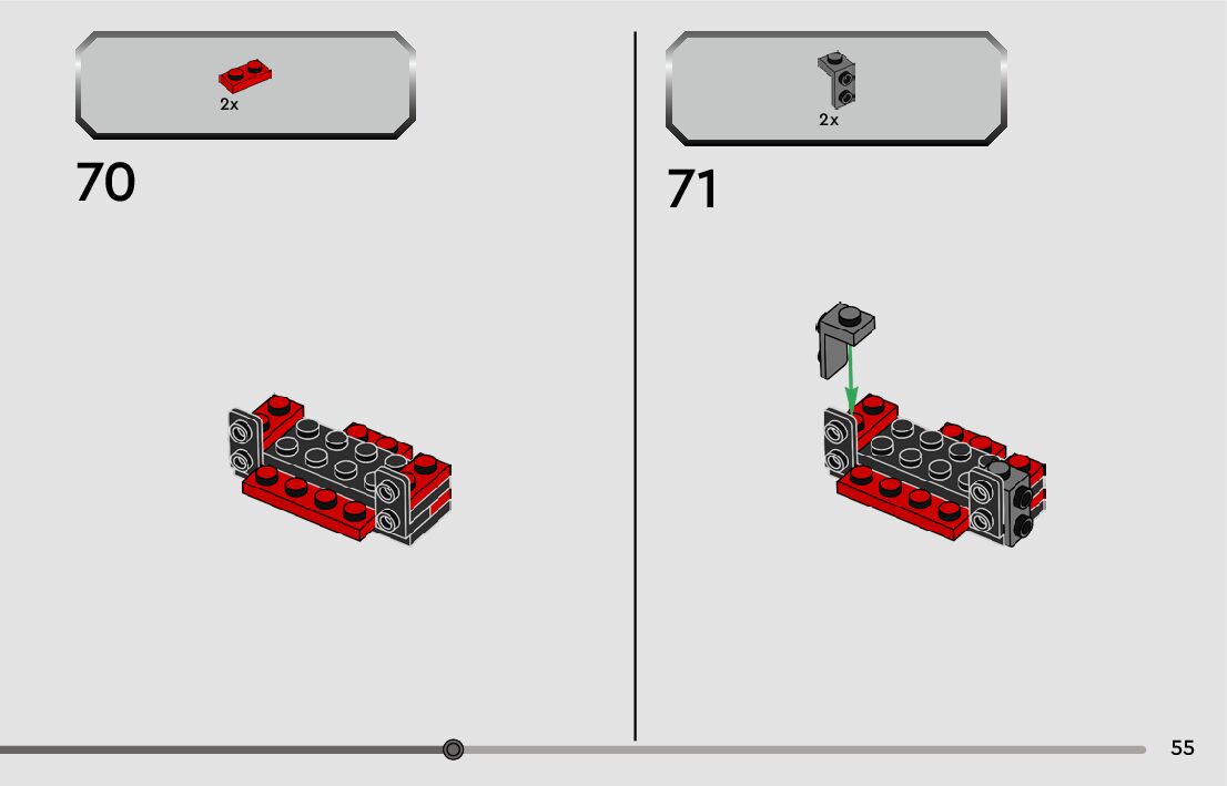 The assembly guide is prepared in a very understandable way for children and adult LEGO enthusiasts. A total of 84 picture galleries are shown, explaining the step-by-step construction stages for 1 different structures.