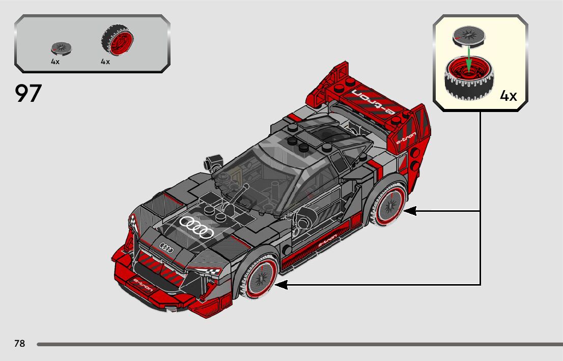 This page shares information about LEGO 76921 Audi S1 e-tron quattro Race Car manual, LEGO 76921 PDF instructions, LEGO 76921 Audi S1 e-tron quattro Race Car building guide online, How to build 76921 Audi S1 e-tron quattro Race Car LEGO.