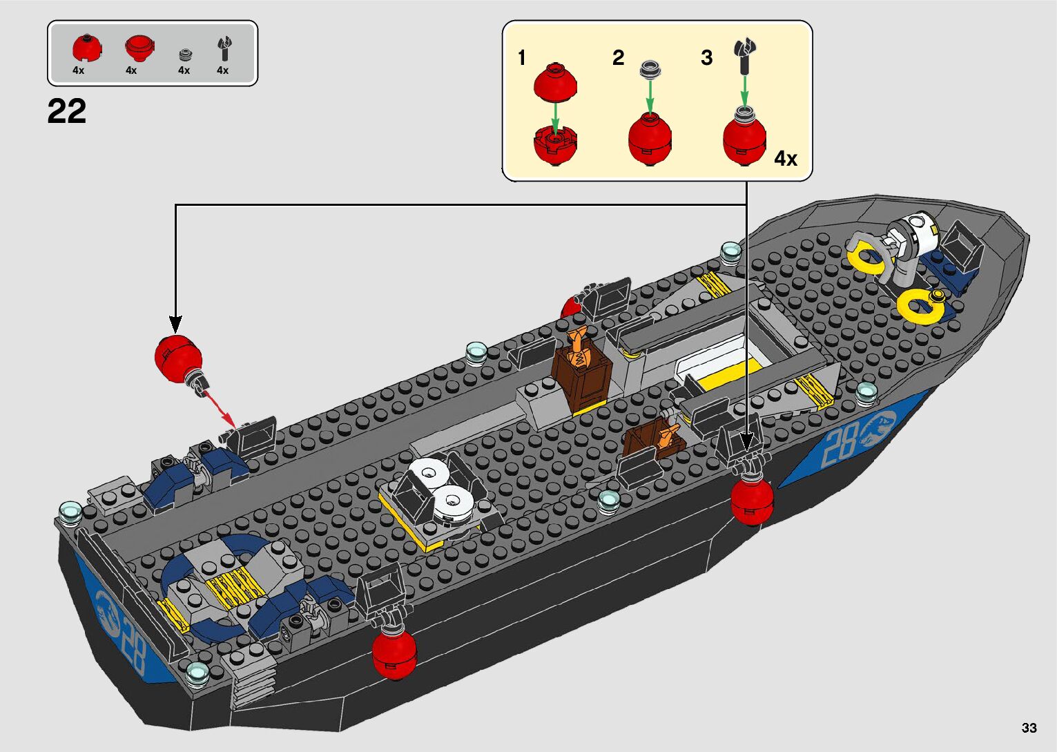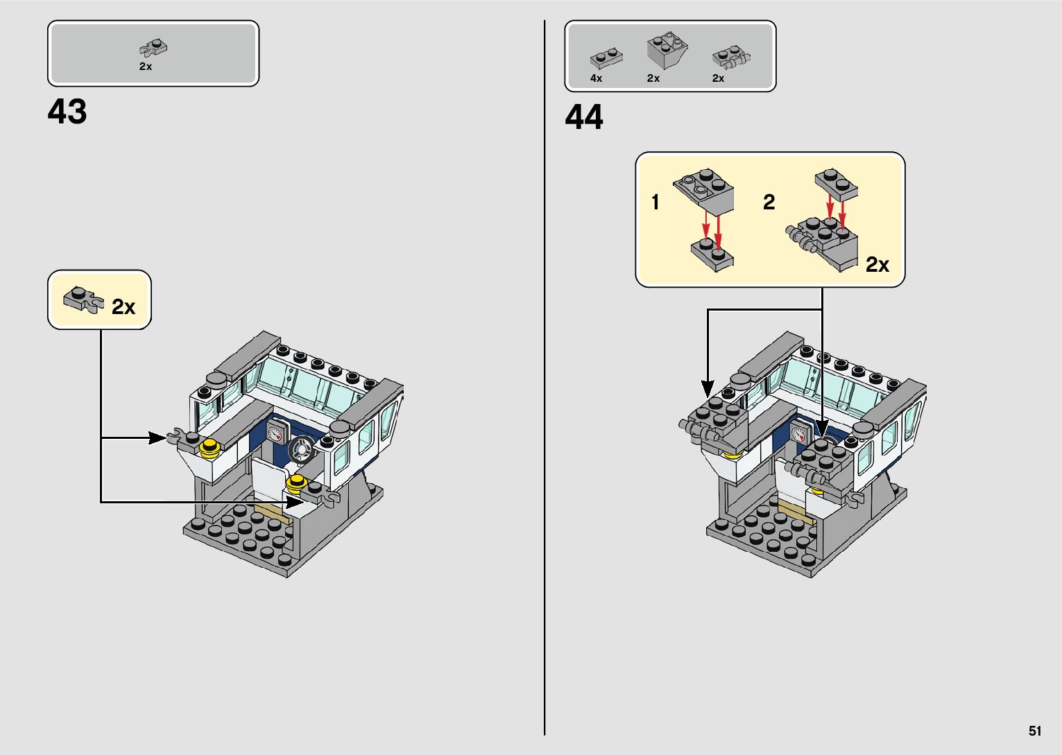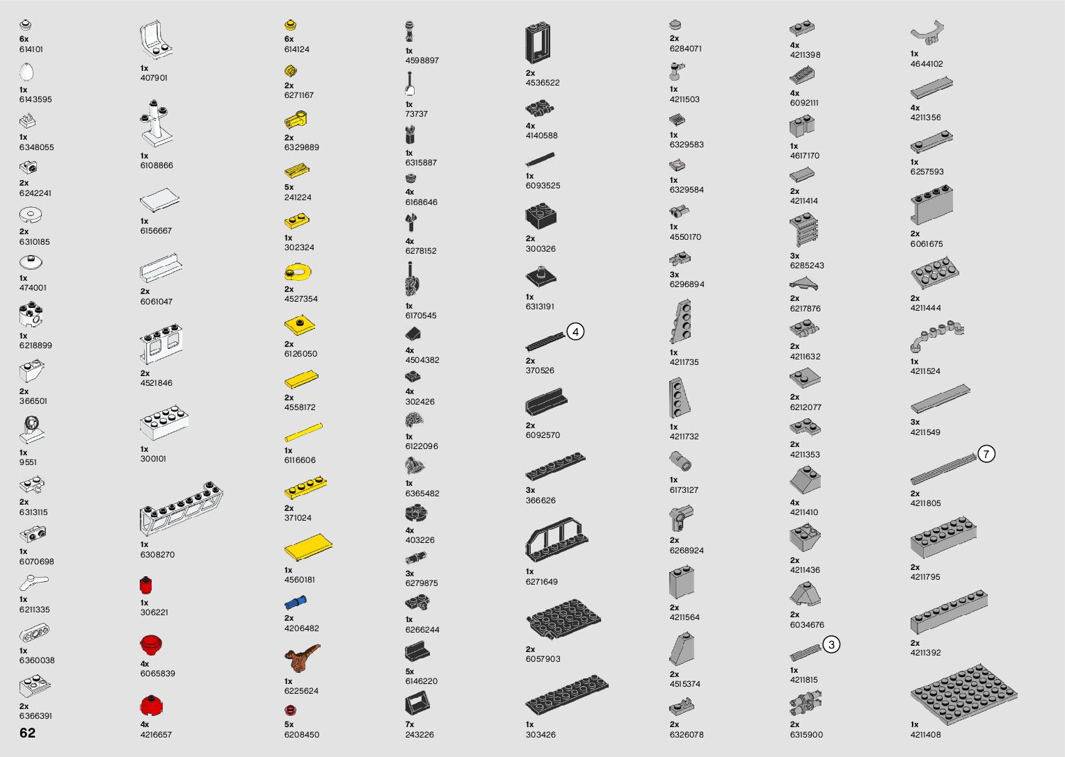 The assembly guide is prepared in a very understandable way for children and adult LEGO enthusiasts. A total of 64 picture galleries are shown, explaining the step-by-step construction stages for 1 different structures.
