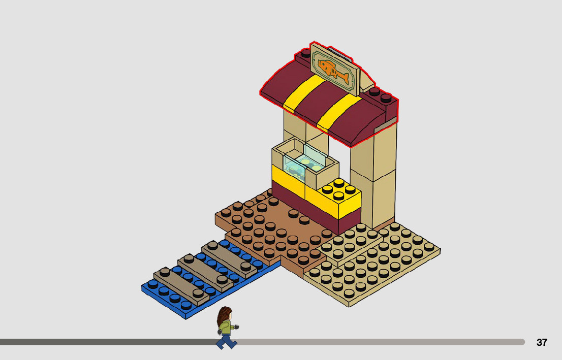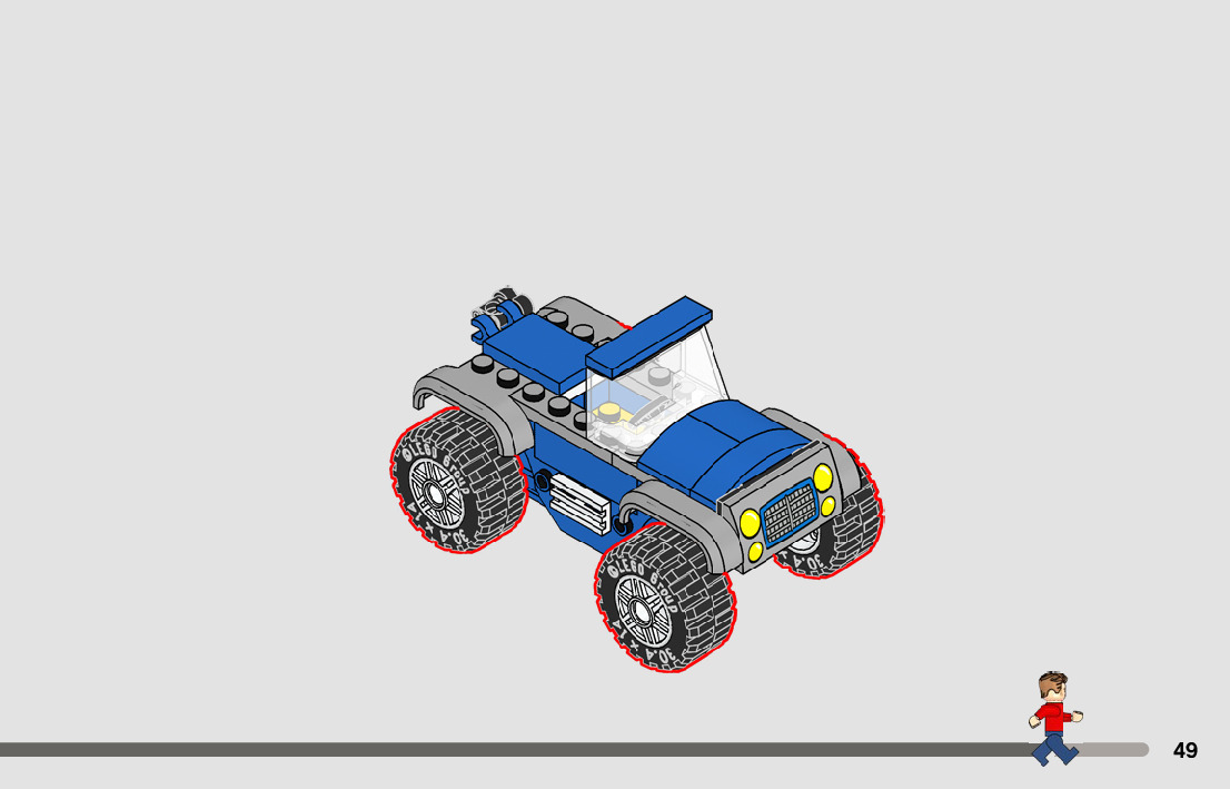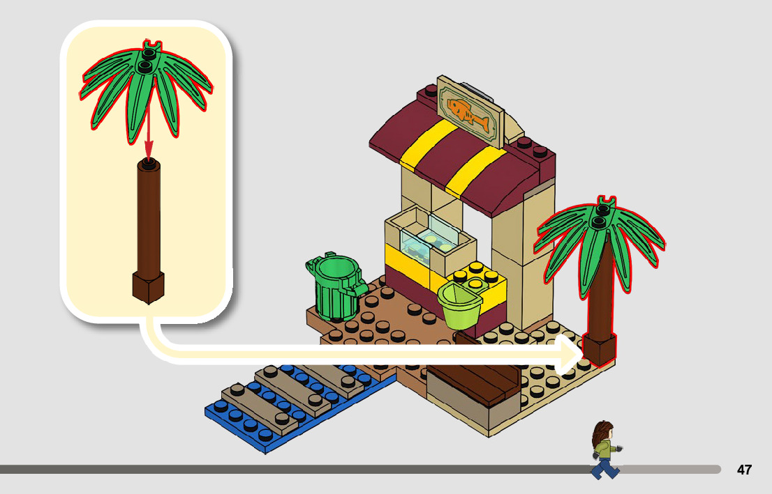 The assembly guide is prepared in a very understandable way for children and adult LEGO enthusiasts. A total of 108 picture galleries are shown, explaining the step-by-step construction stages for 2 different structures.
