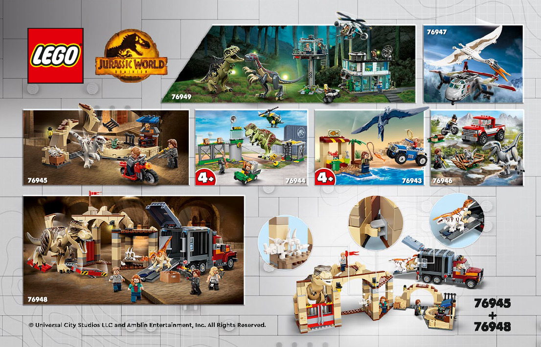 On this page you can find the original construction manual for the LEGO 76950 set. With the assembly manual you can easily learn how to build the 76950 Triceratops Pick-up Truck Ambush step by step. The set was released in 2022.