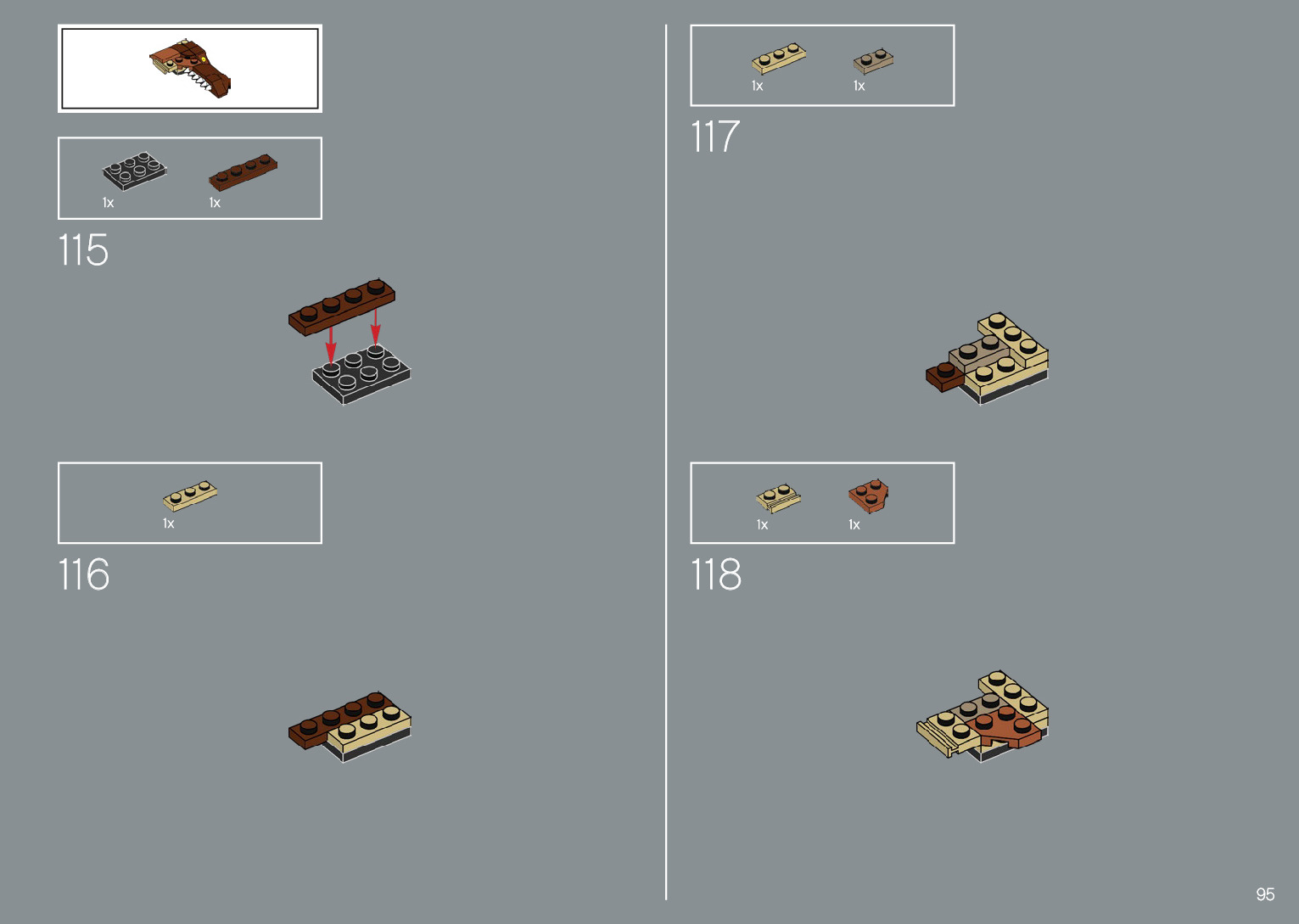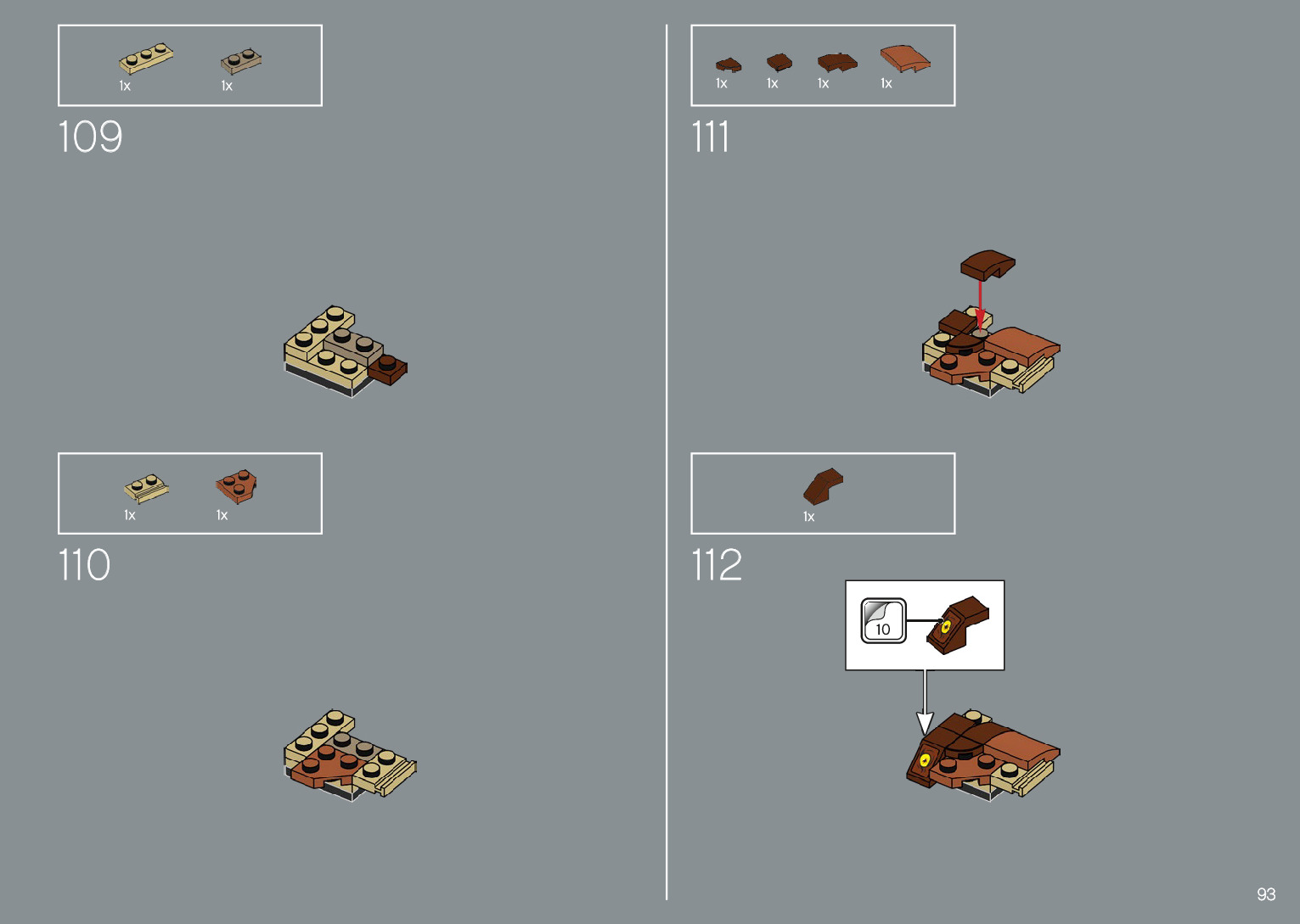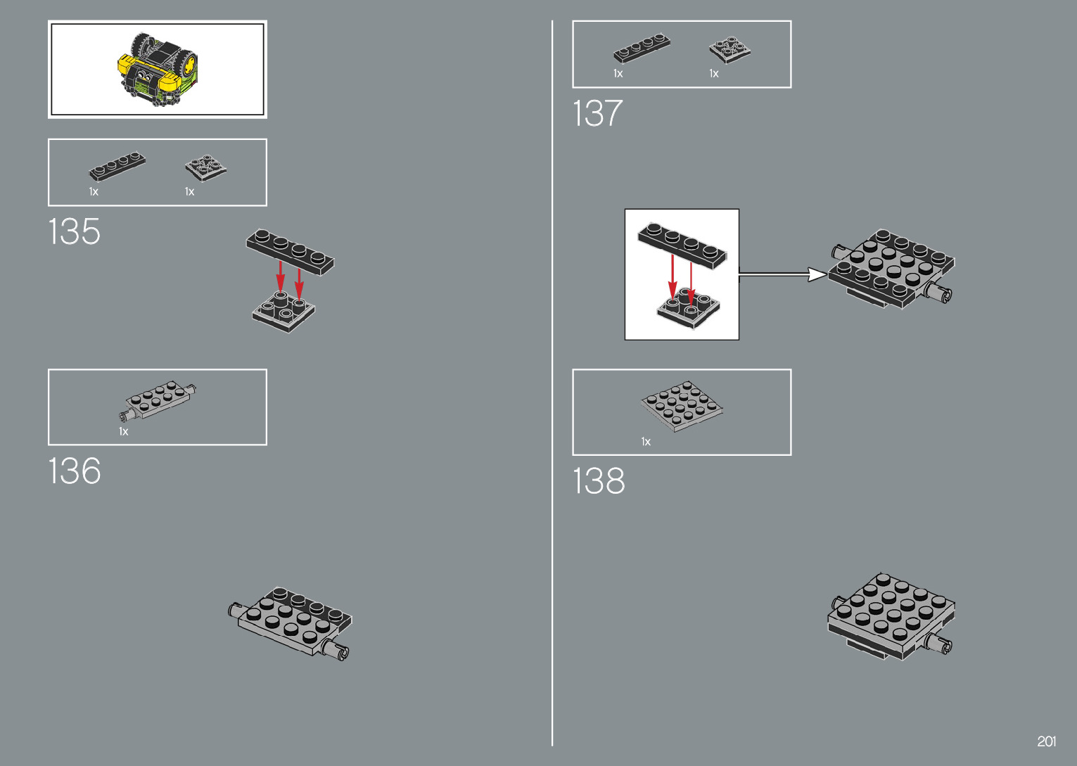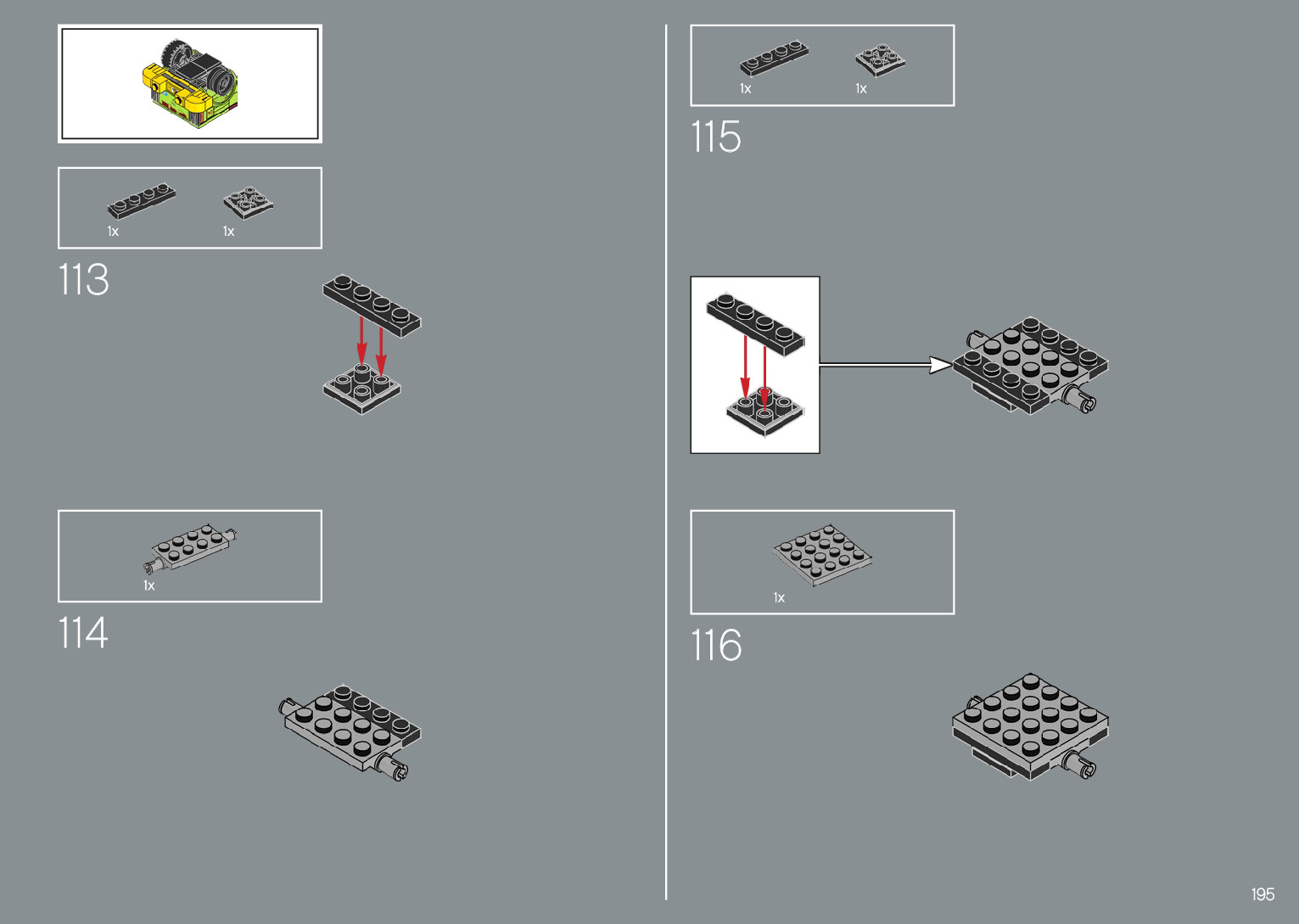 The assembly guide is prepared in a very understandable way for children and adult LEGO enthusiasts. A total of 220 picture galleries are shown, explaining the step-by-step construction stages for 1 different structures.