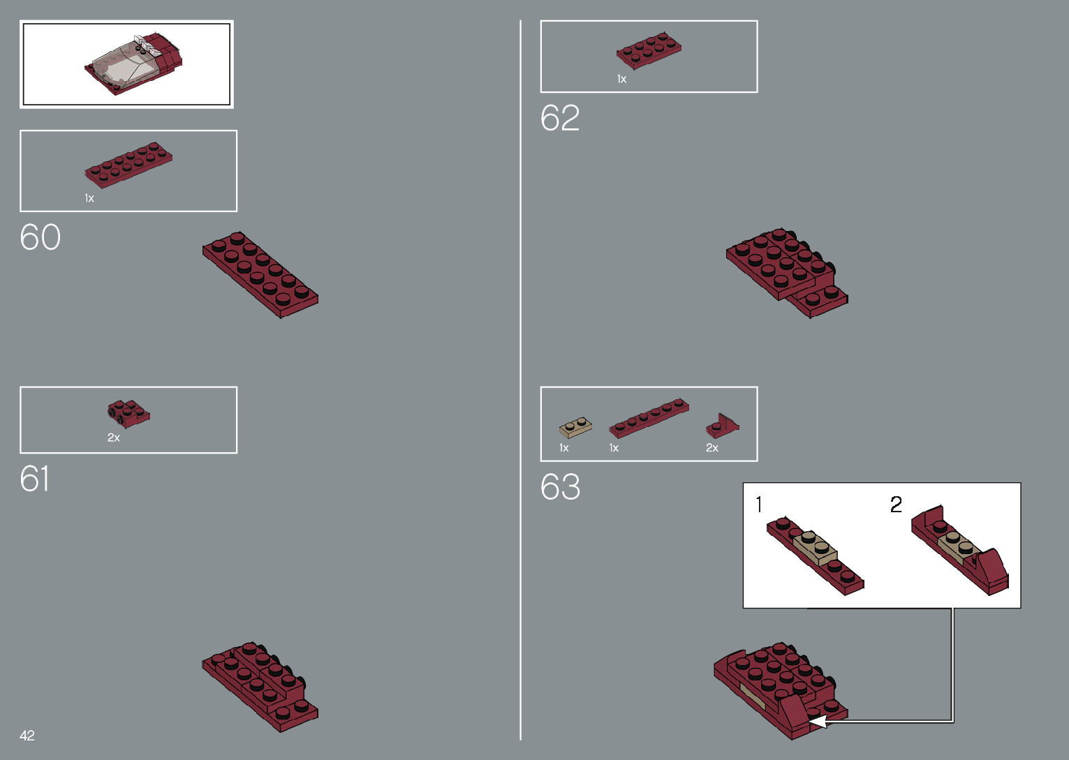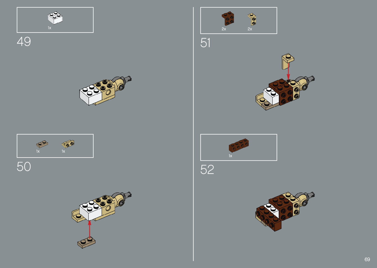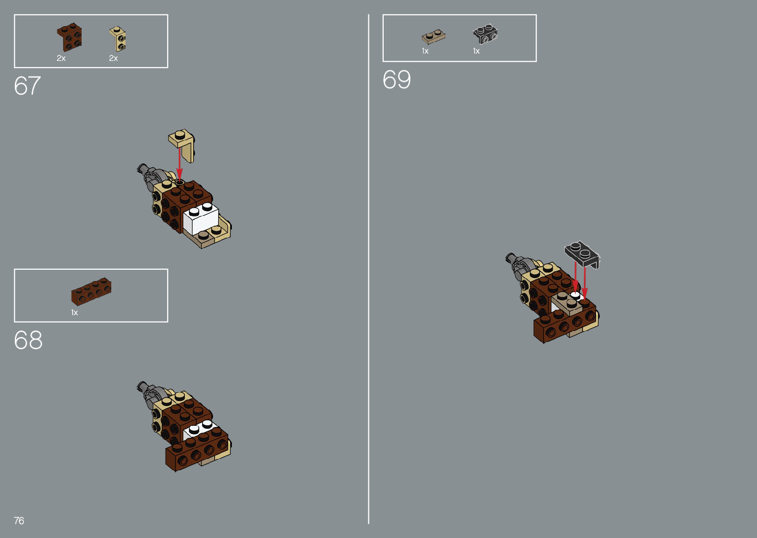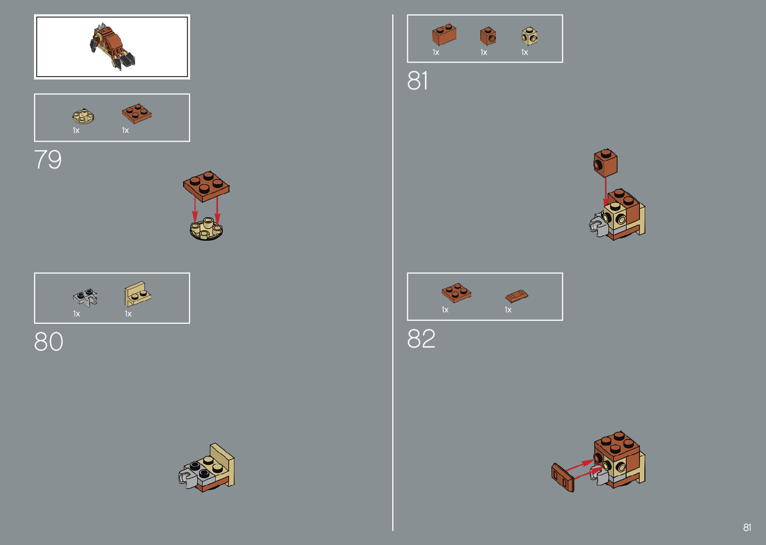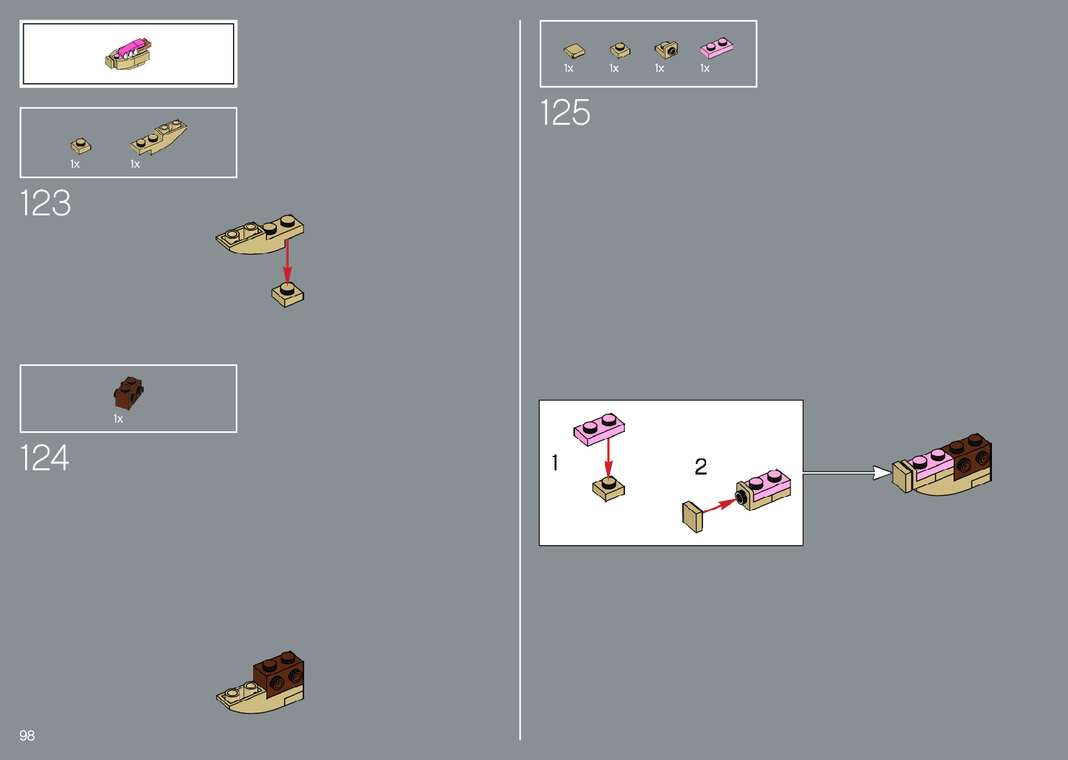 The assembly guide is prepared in a very understandable way for children and adult LEGO enthusiasts. A total of 220 picture galleries are shown, explaining the step-by-step construction stages for 1 different structures.