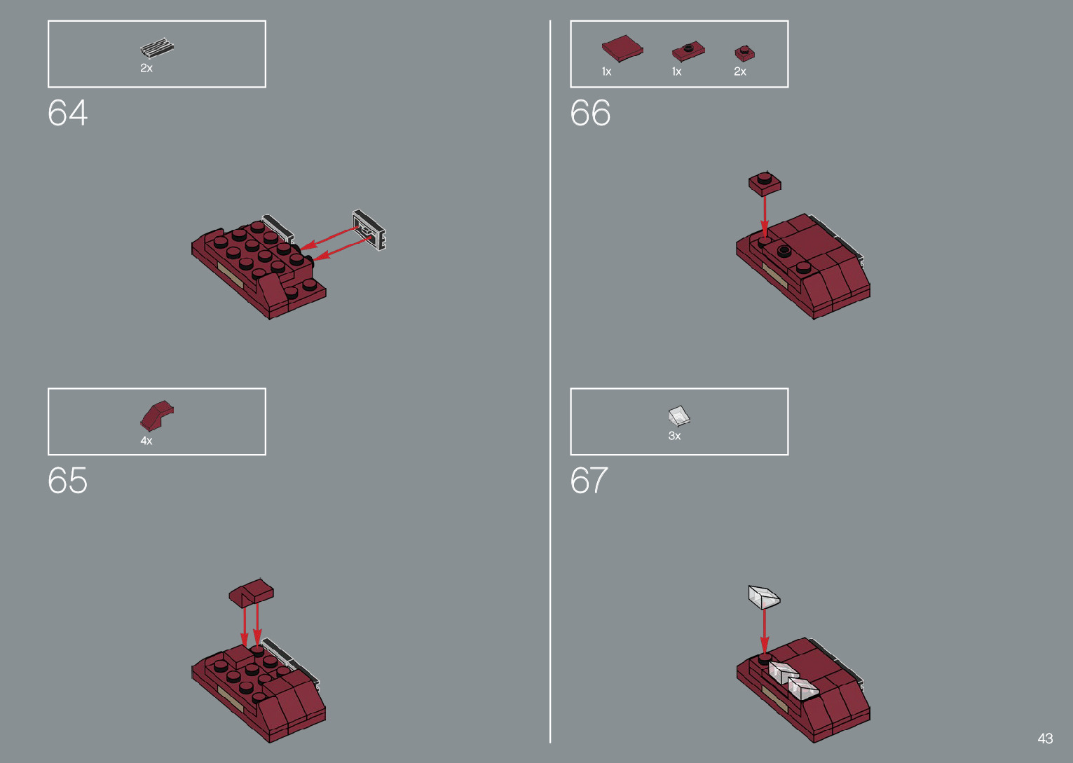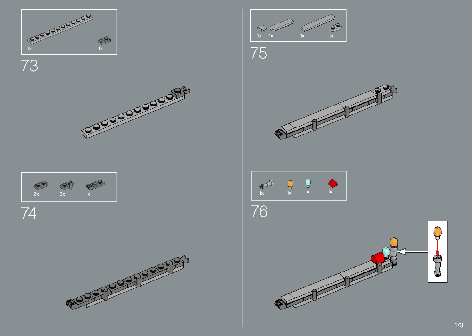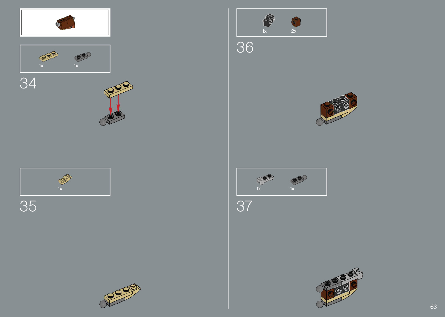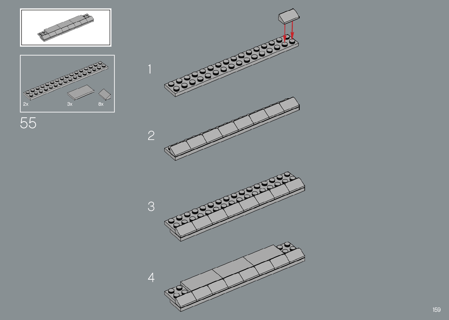 The assembly guide is prepared in a very understandable way for children and adult LEGO enthusiasts. A total of 220 picture galleries are shown, explaining the step-by-step construction stages for 1 different structures.