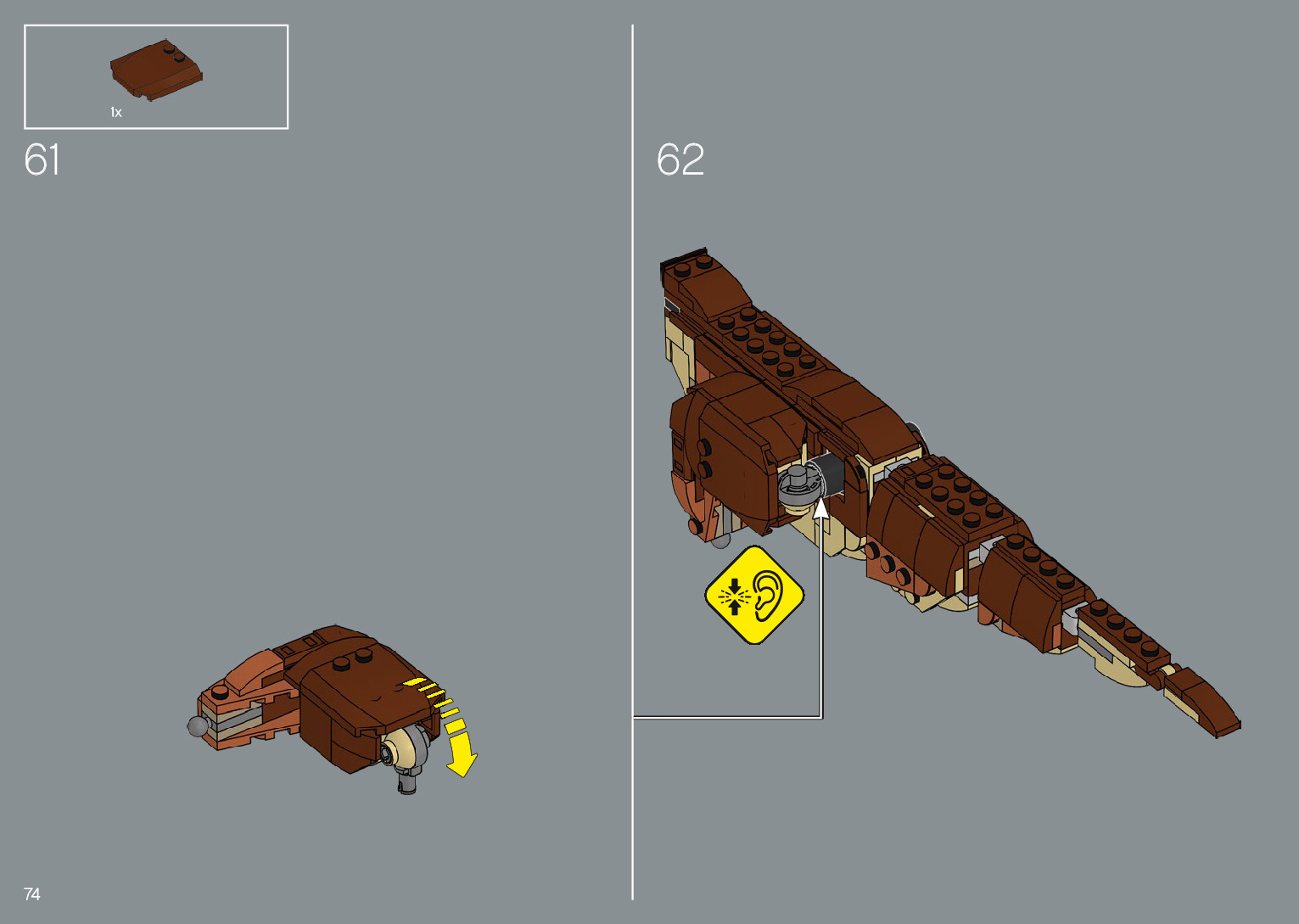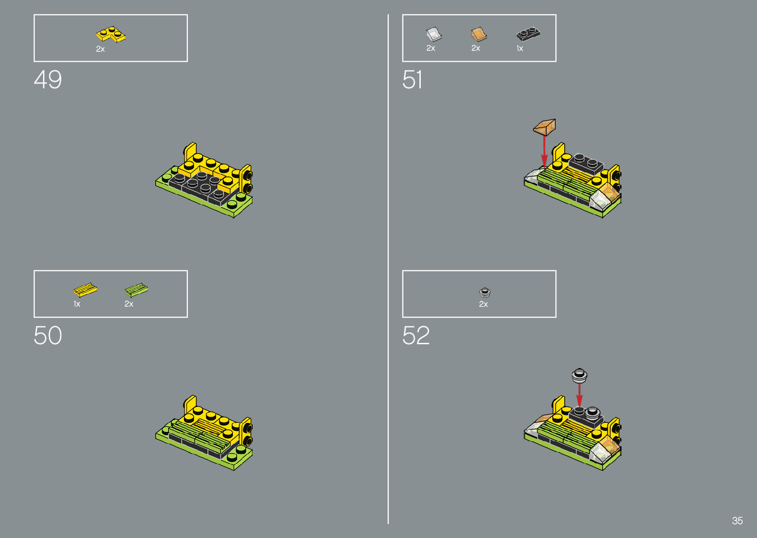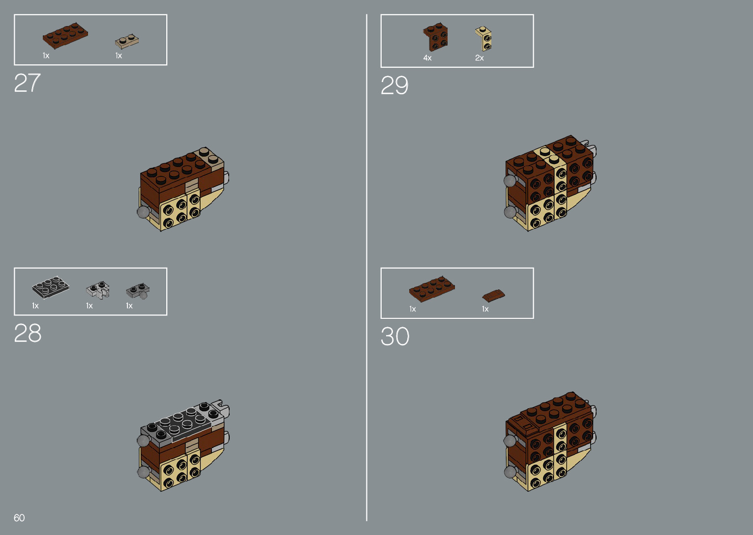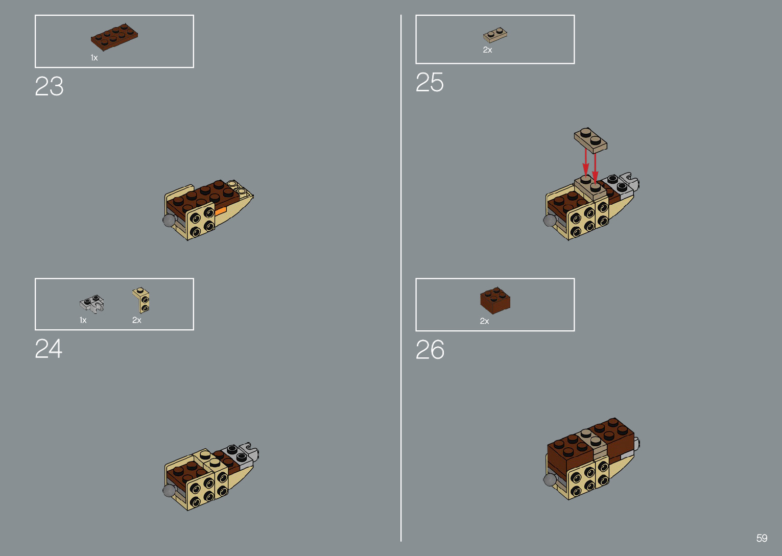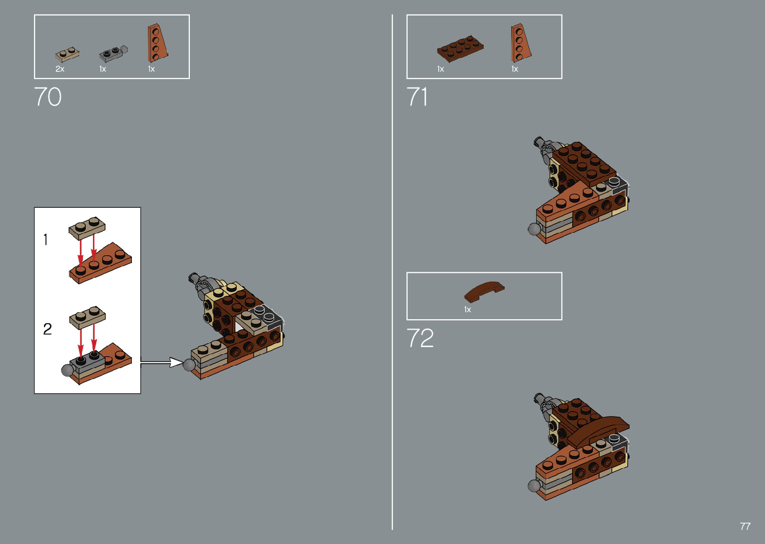 The assembly guide is prepared in a very understandable way for children and adult LEGO enthusiasts. A total of 220 picture galleries are shown, explaining the step-by-step construction stages for 1 different structures.