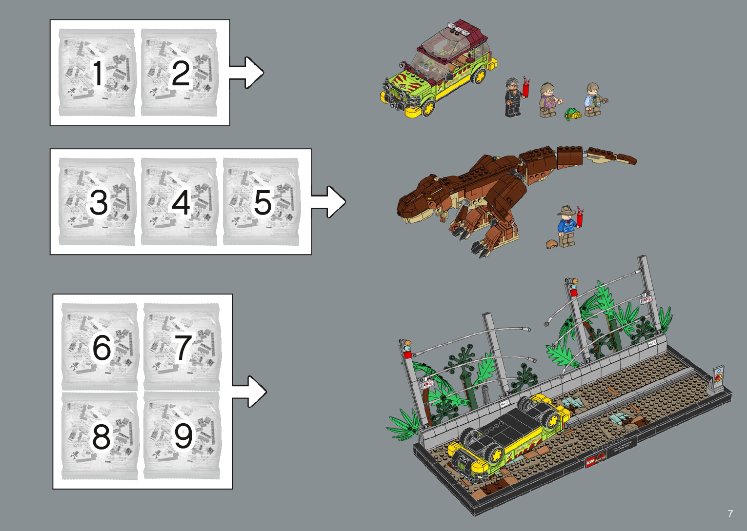 On this page you can find the original construction manual for the LEGO 76956 set. With the assembly manual you can easily learn how to build the 76956 T. rex Breakout step by step. The set was released in 2022.