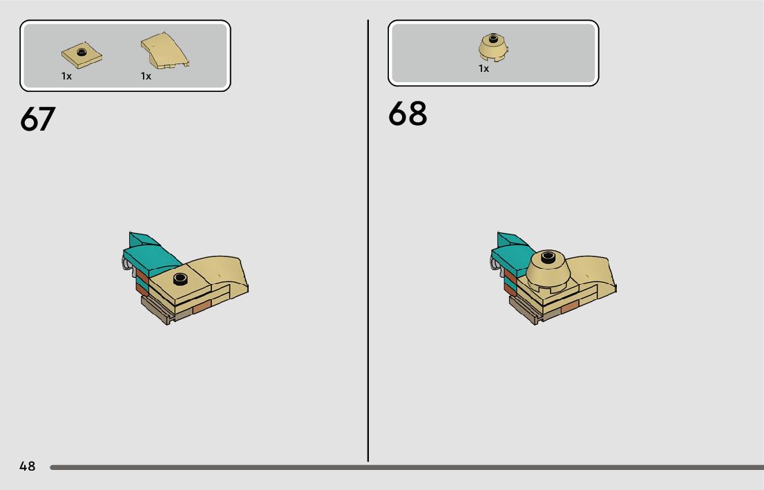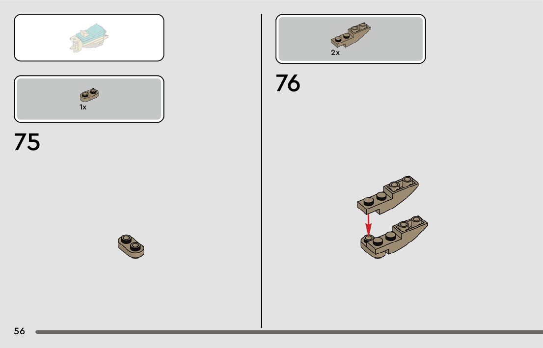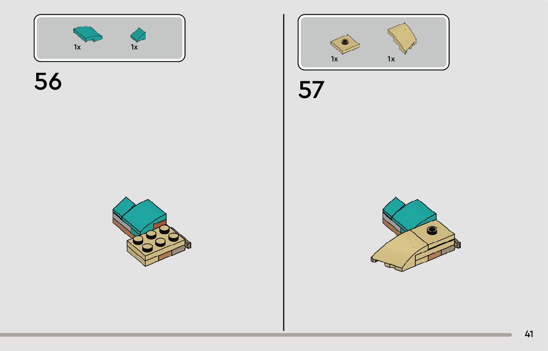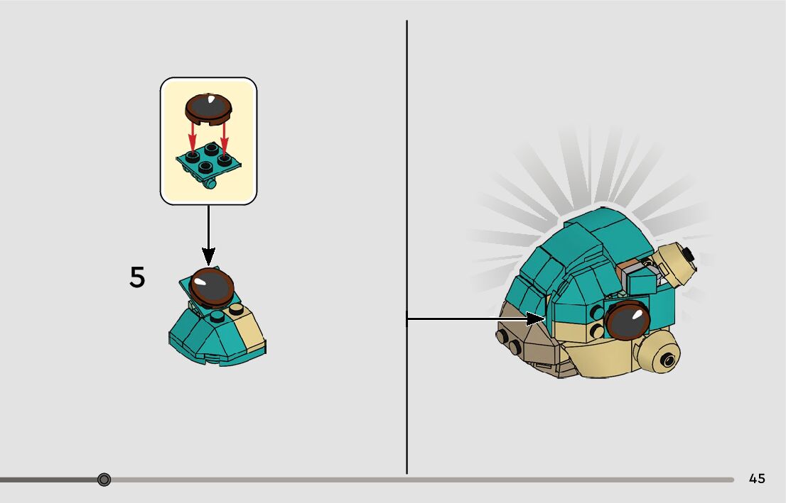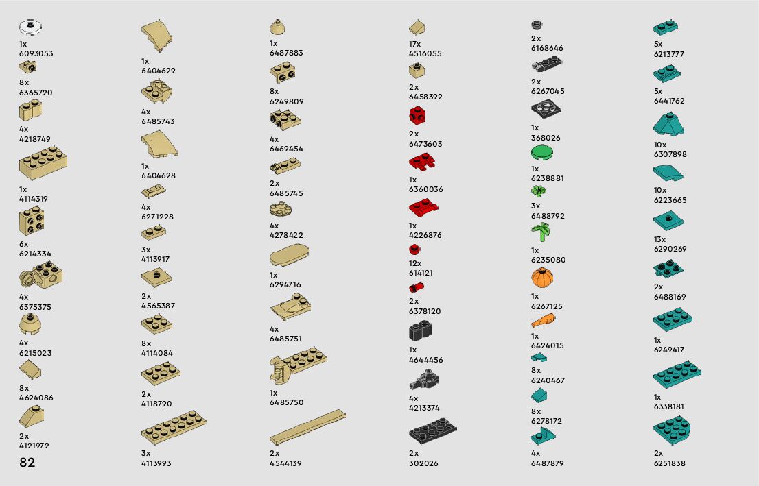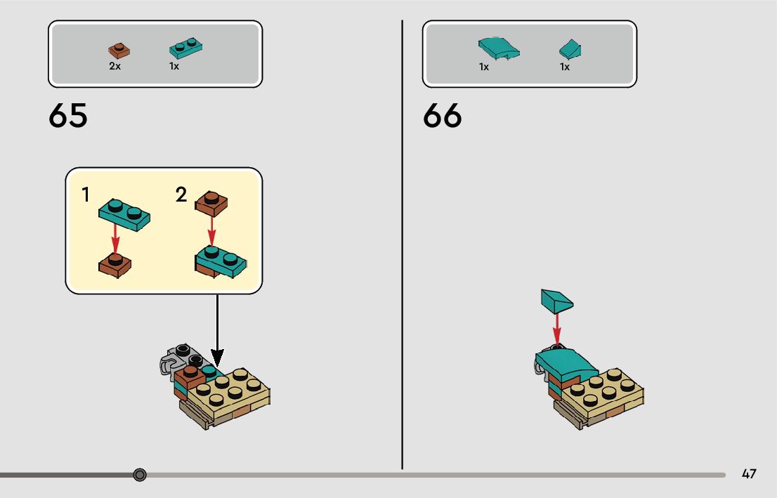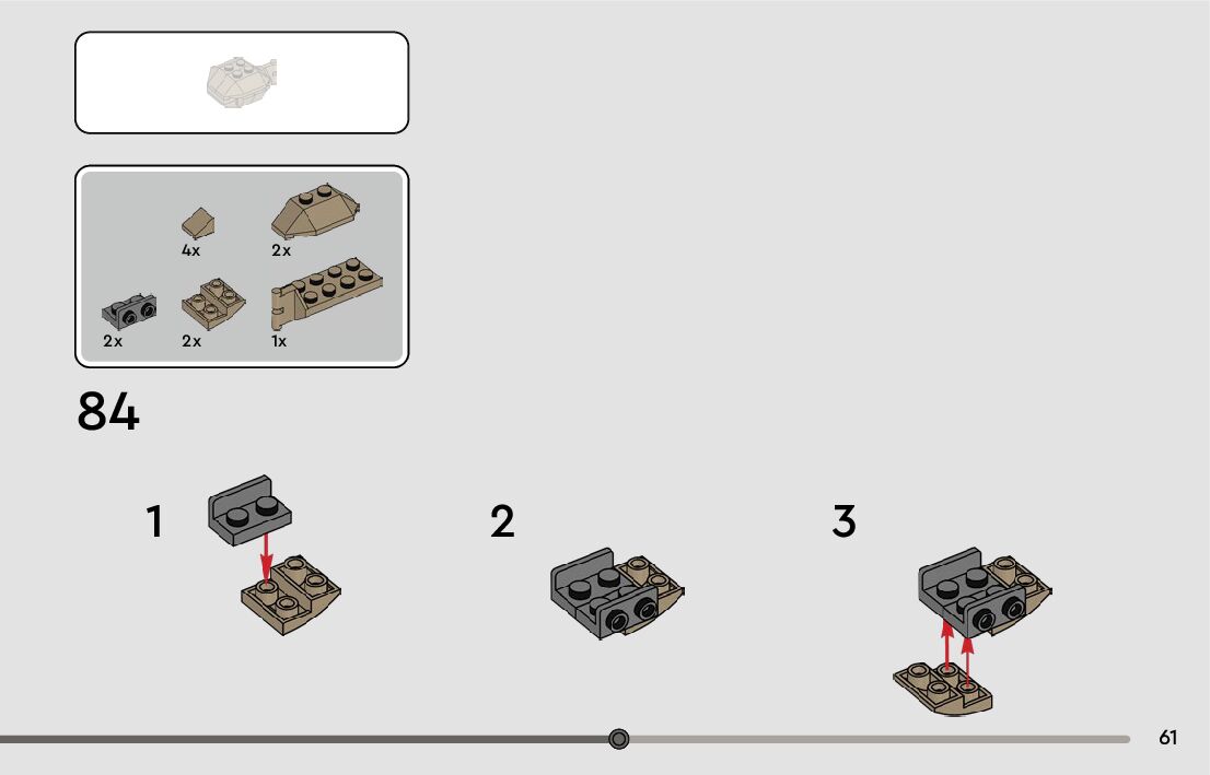 The assembly guide is prepared in a very understandable way for children and adult LEGO enthusiasts. A total of 84 picture galleries are shown, explaining the step-by-step construction stages for 1 different structures.