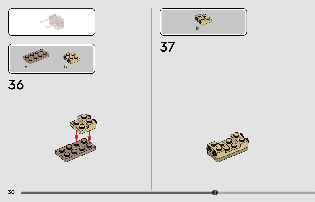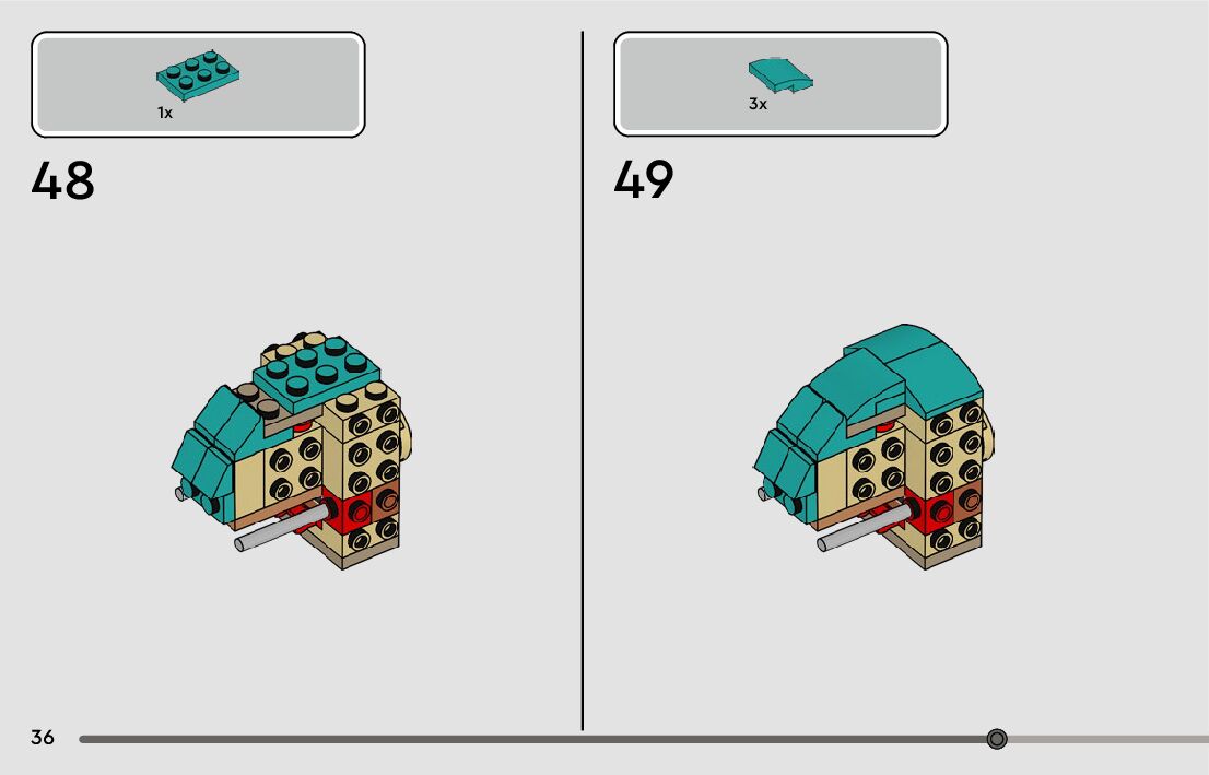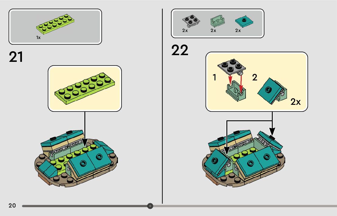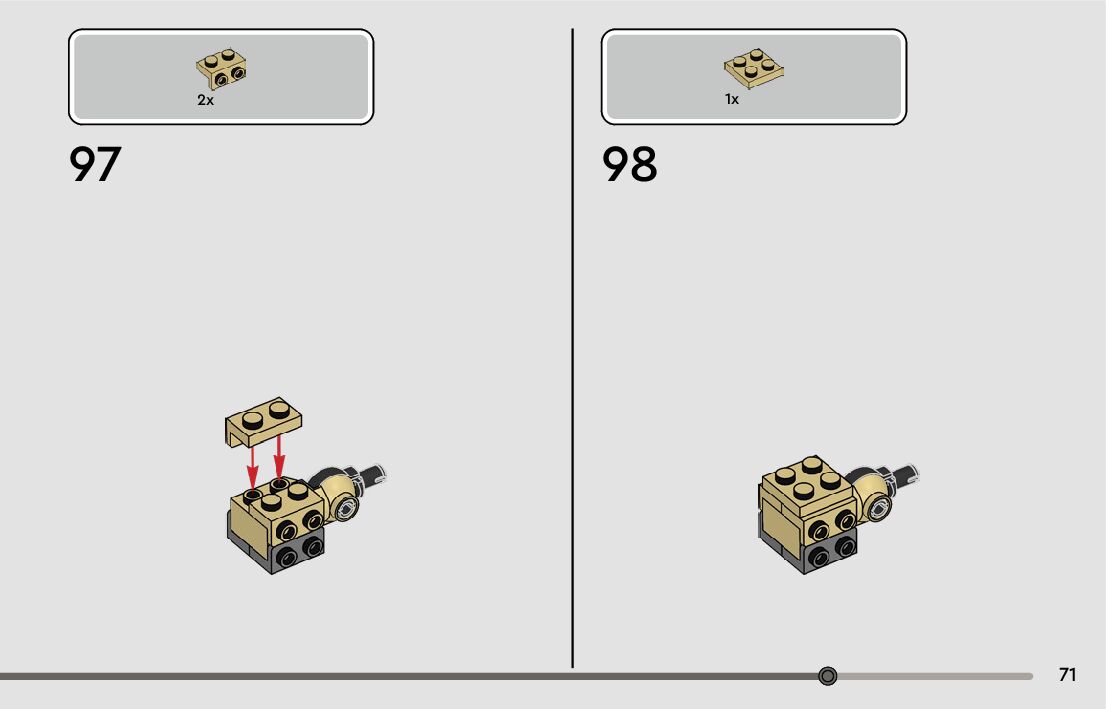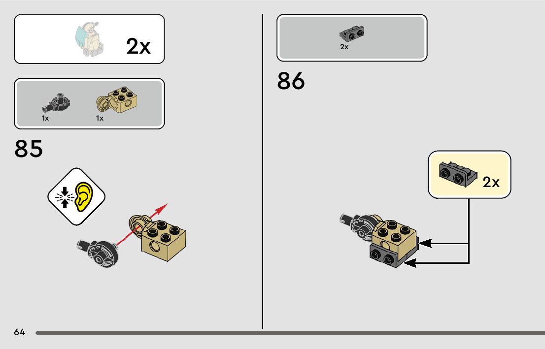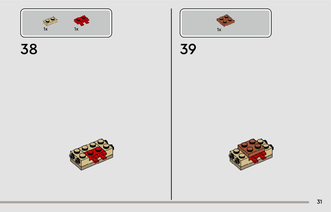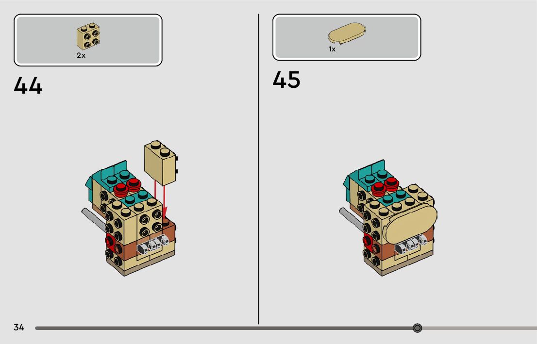 The assembly guide is prepared in a very understandable way for children and adult LEGO enthusiasts. A total of 84 picture galleries are shown, explaining the step-by-step construction stages for 1 different structures.