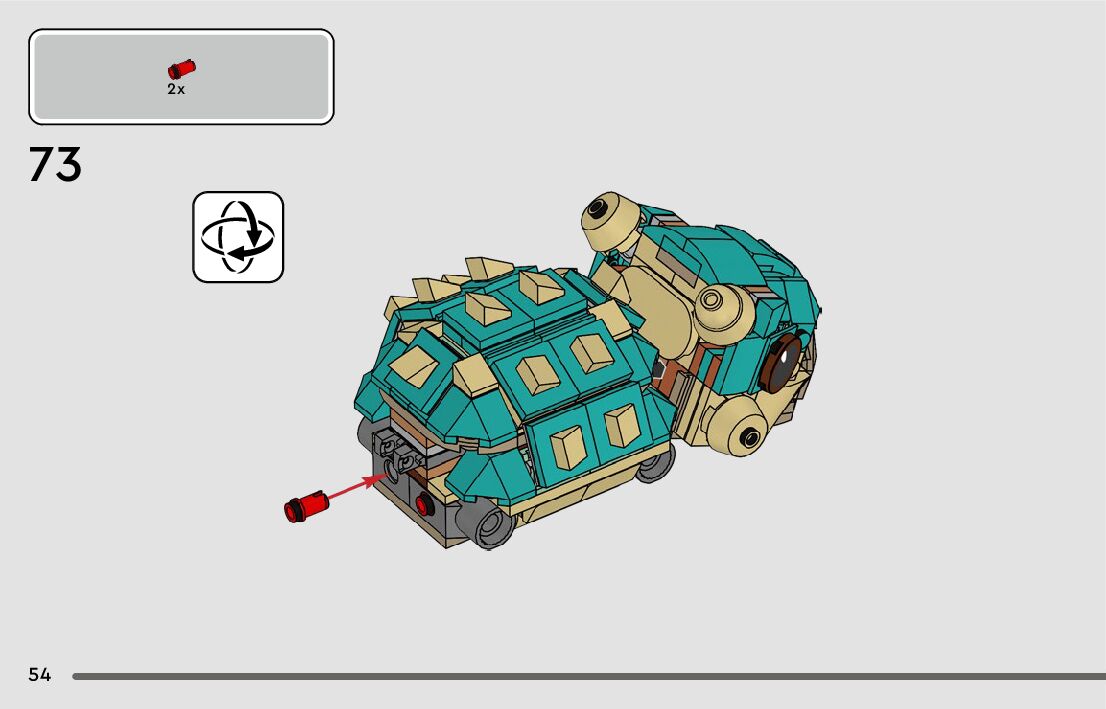 On this page you can find the original construction manual for the LEGO 76962 set. With the assembly manual you can easily learn how to build the 76962 Baby Bumpy: Ankylosaurus step by step. The set was released in 2024.