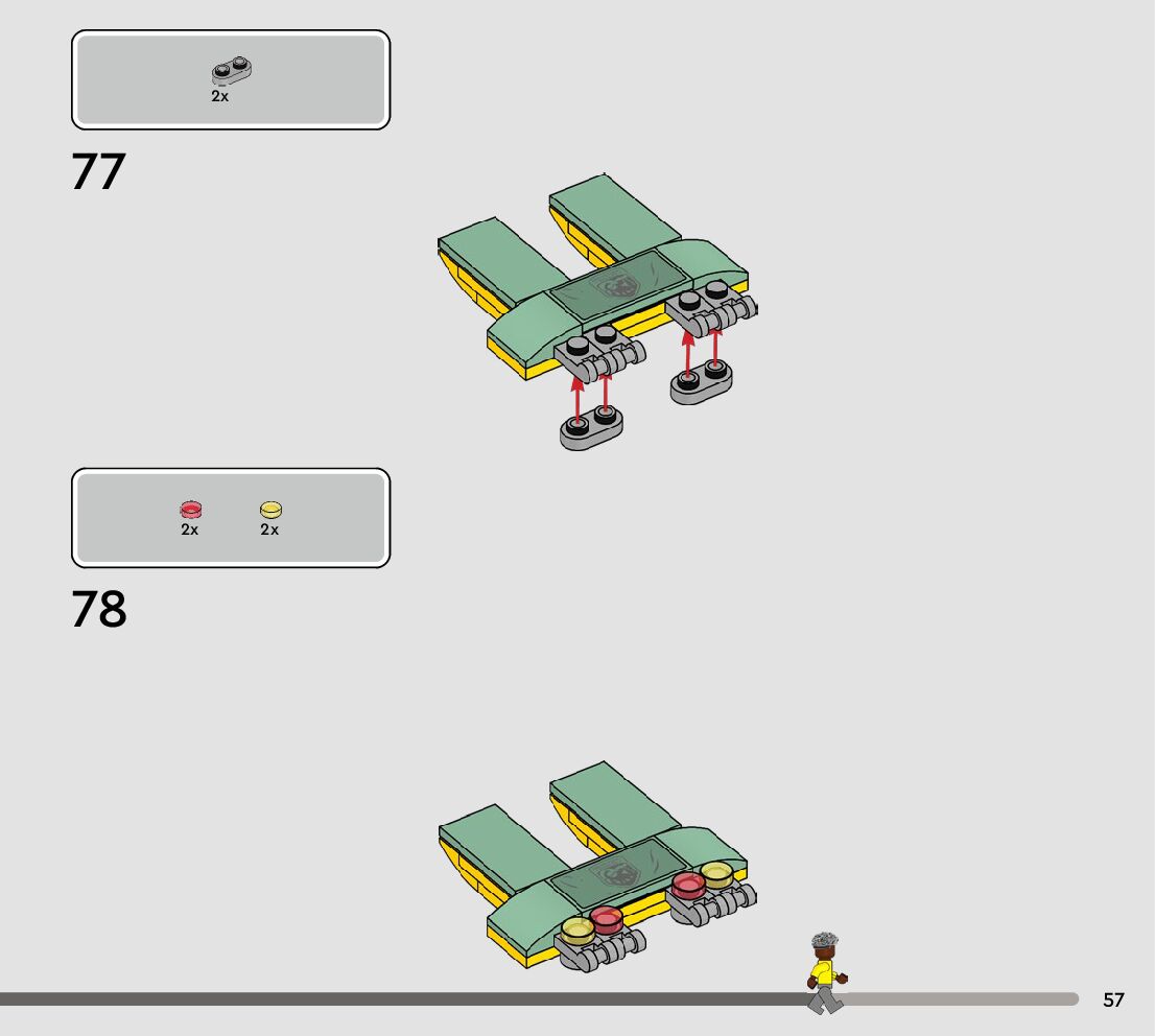 The assembly guide is prepared in a very understandable way for children and adult LEGO enthusiasts. A total of 128 picture galleries are shown, explaining the step-by-step construction stages for 2 different structures.