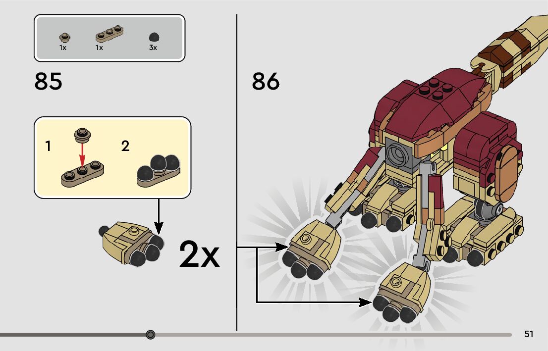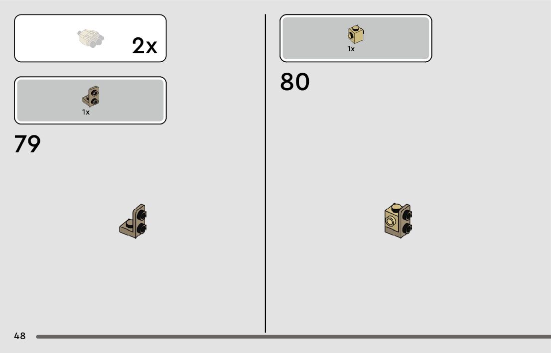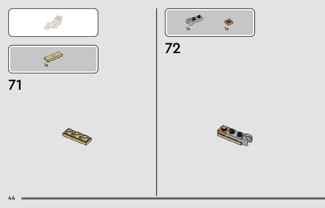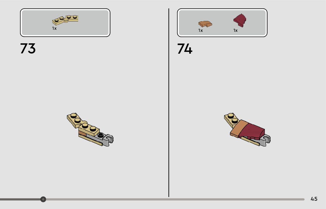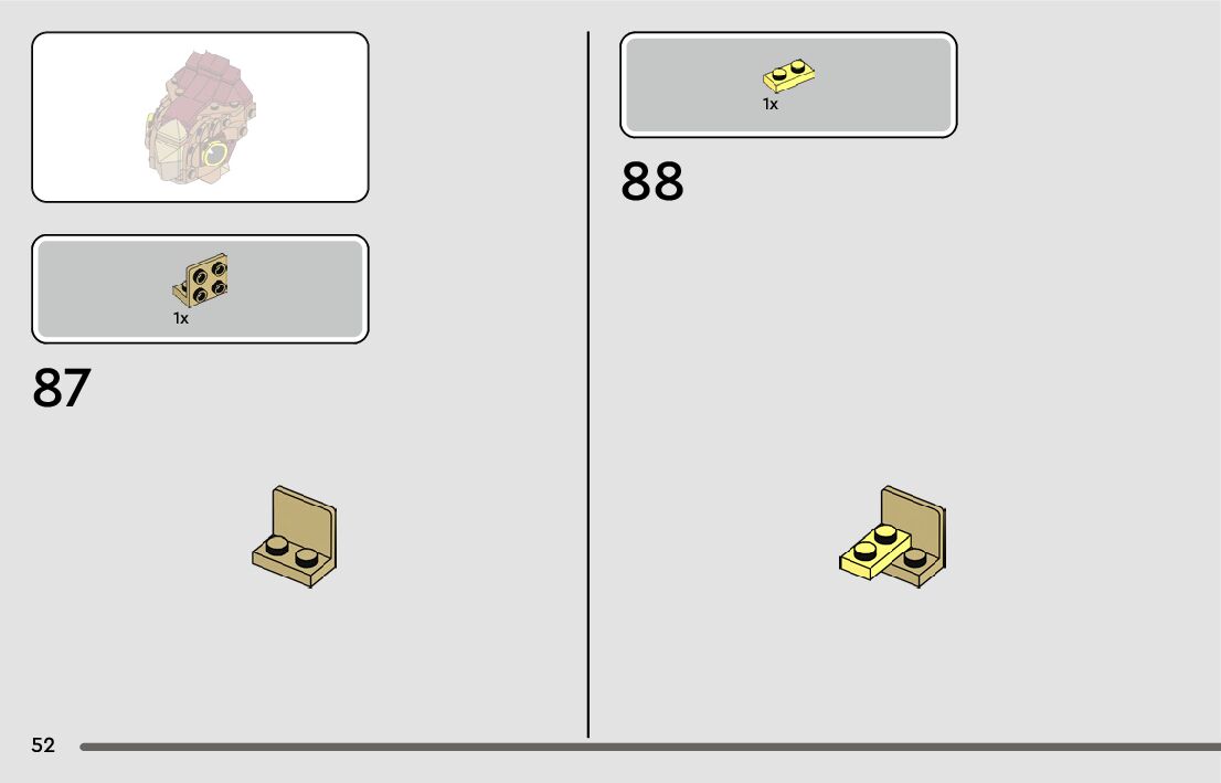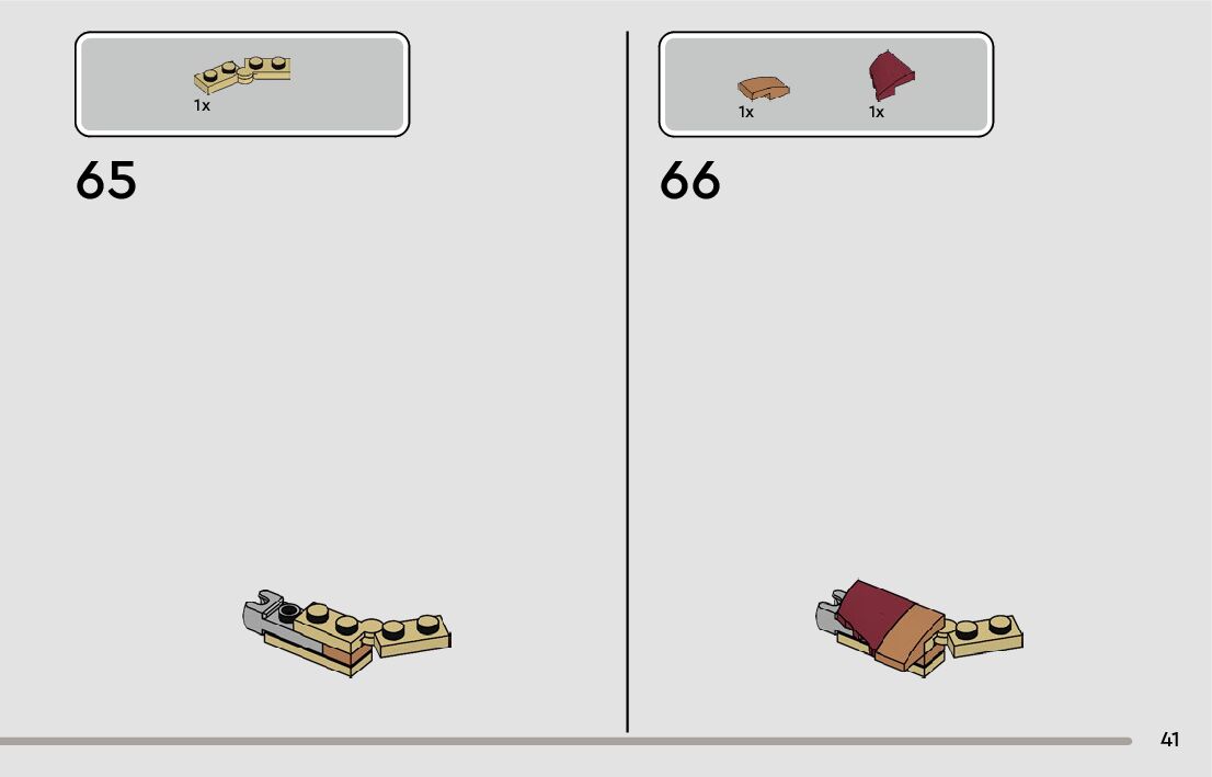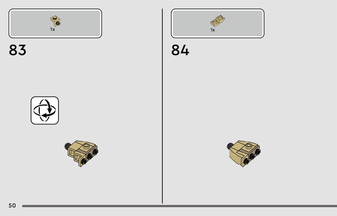The assembly guide is prepared in a very understandable way for children and adult LEGO enthusiasts. A total of 84 picture galleries are shown, explaining the step-by-step construction stages for 1 different structures.