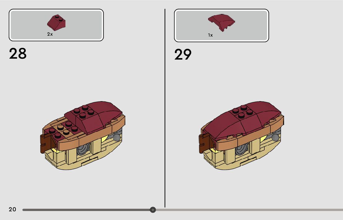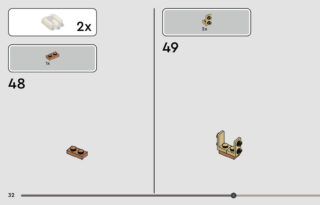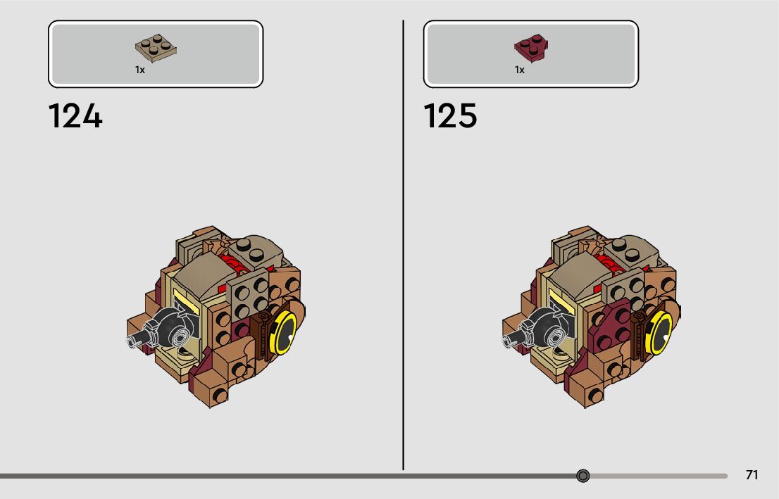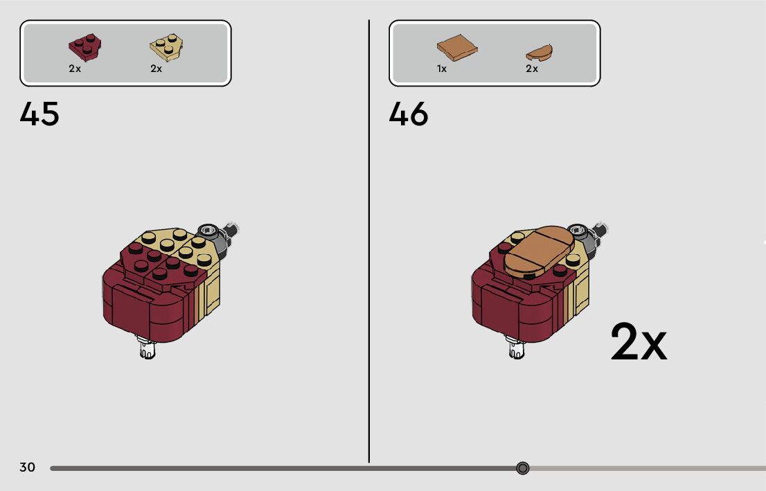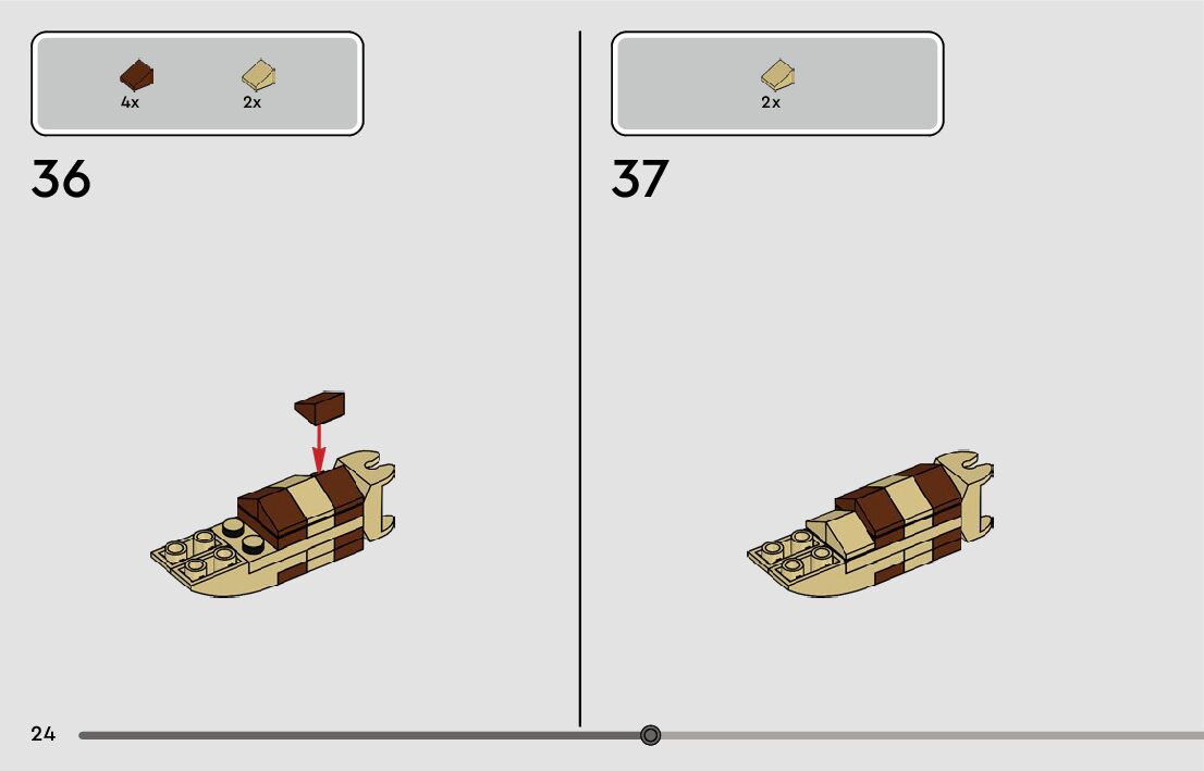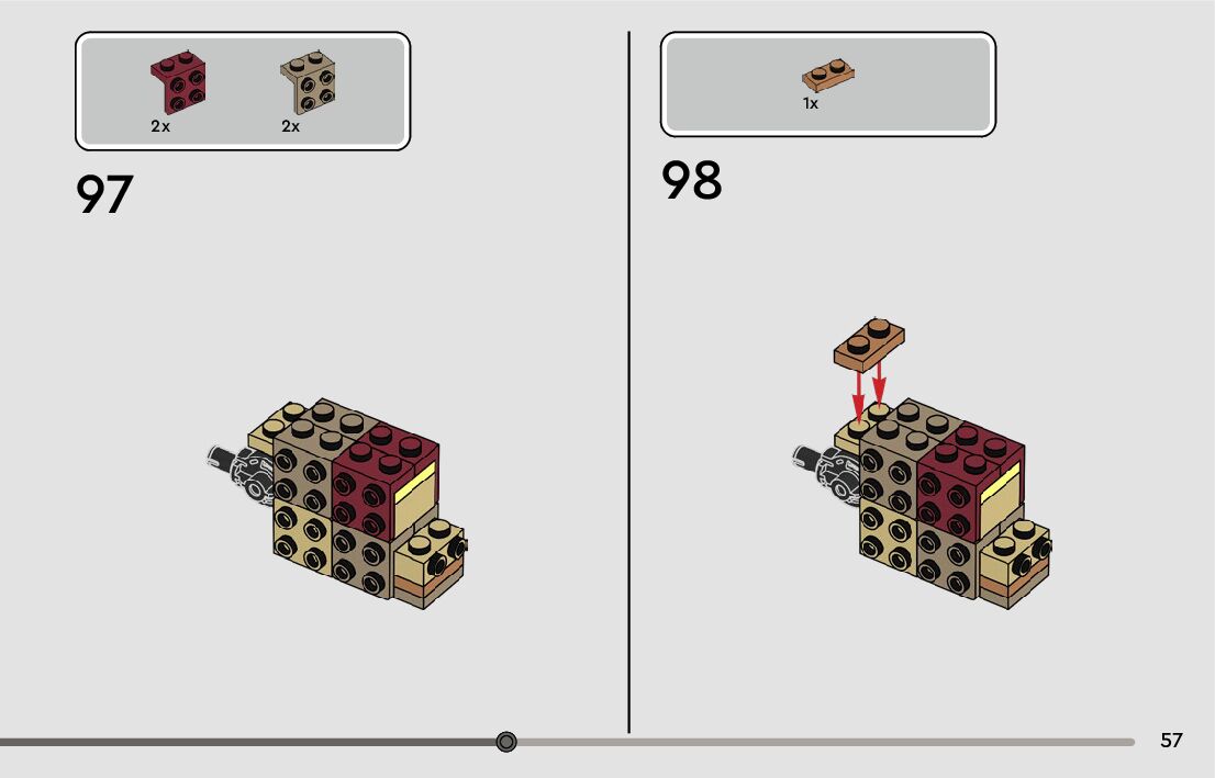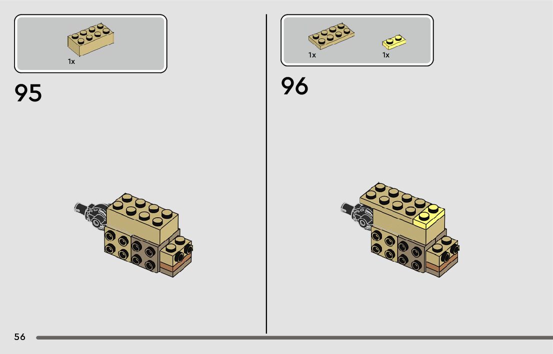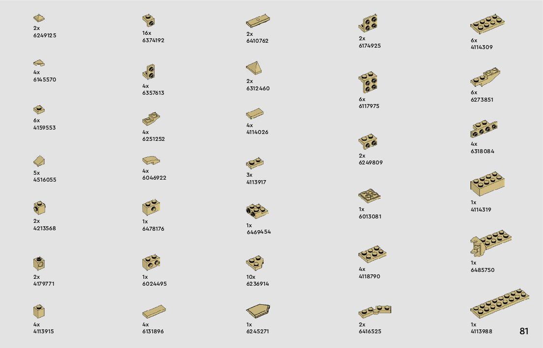 The assembly guide is prepared in a very understandable way for children and adult LEGO enthusiasts. A total of 84 picture galleries are shown, explaining the step-by-step construction stages for 1 different structures.