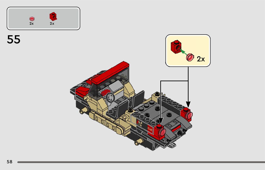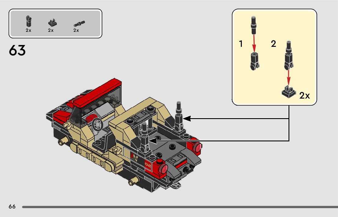 The assembly guide is prepared in a very understandable way for children and adult LEGO enthusiasts. A total of 132 picture galleries are shown, explaining the step-by-step construction stages for 2 different structures.