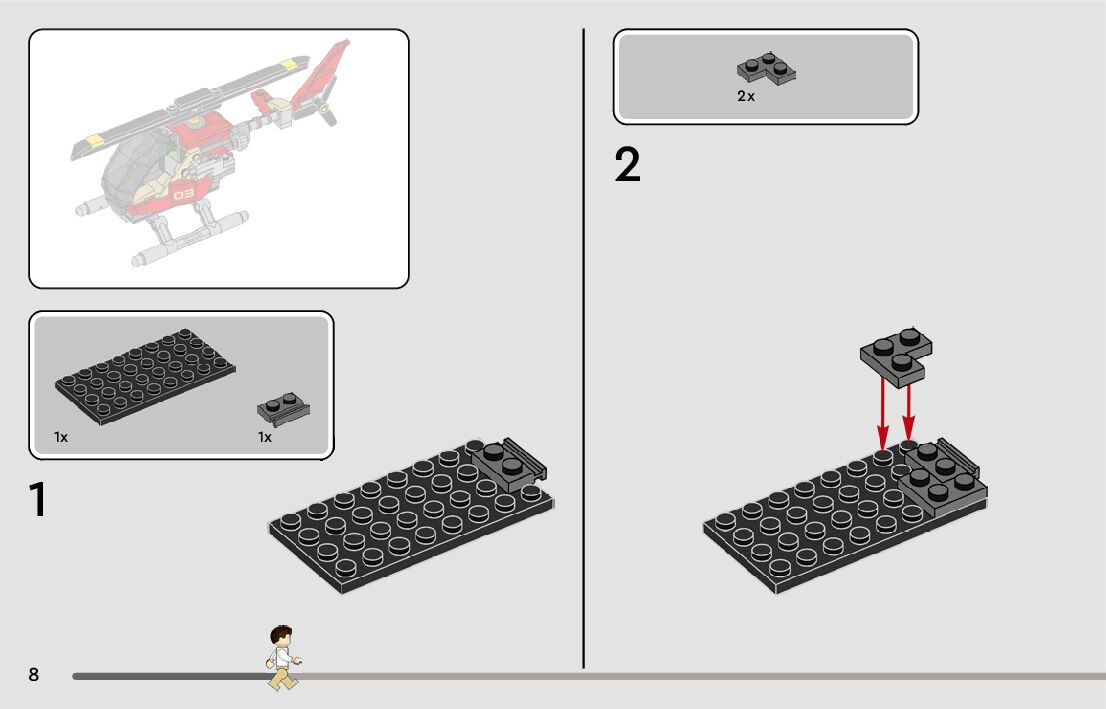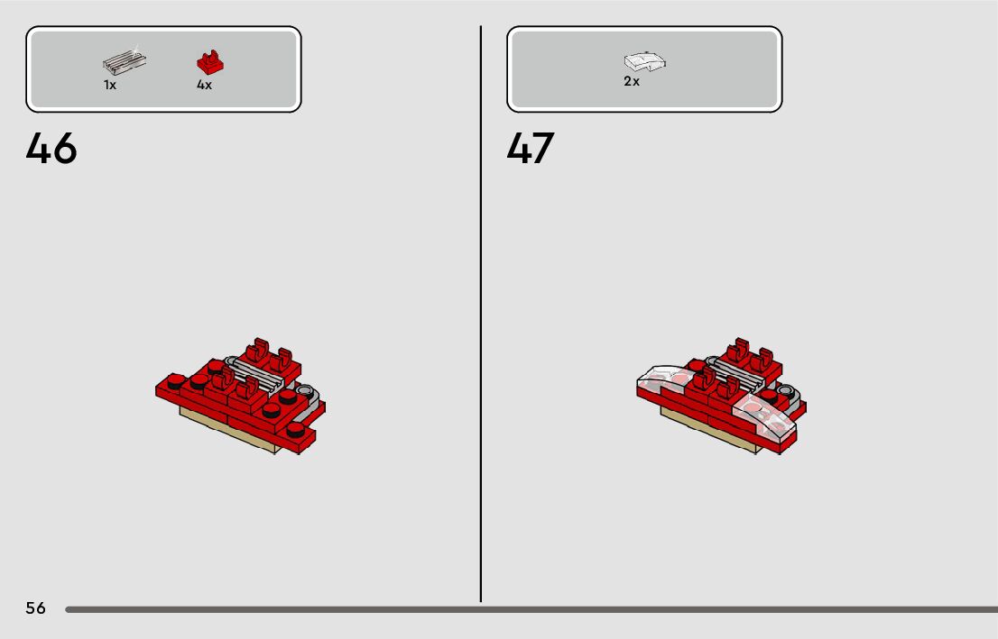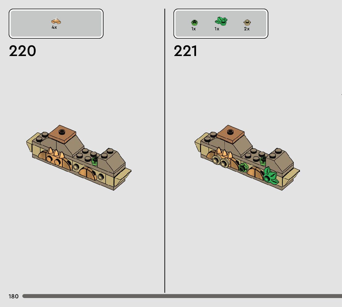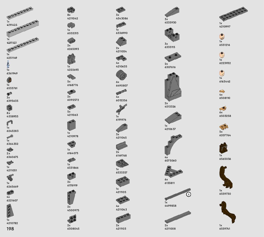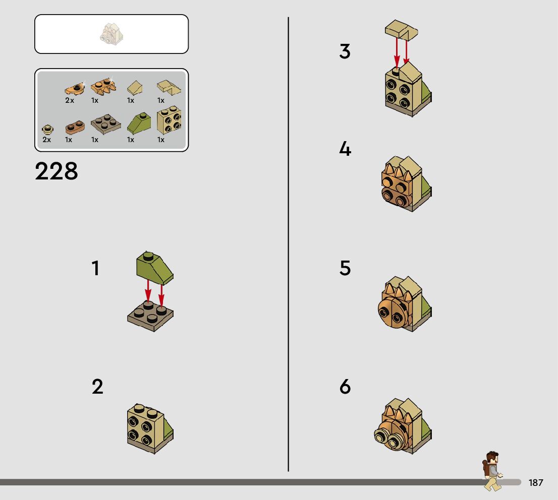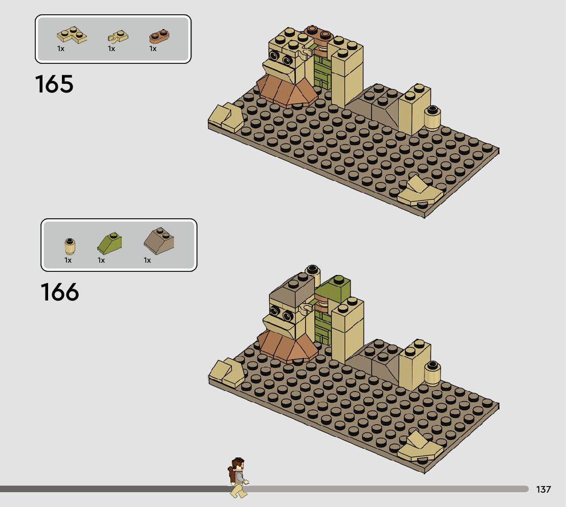The assembly guide is prepared in a very understandable way for children and adult LEGO enthusiasts. A total of 332 picture galleries are shown, explaining the step-by-step construction stages for 3 different structures.
