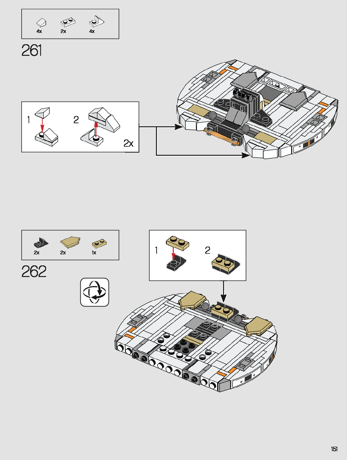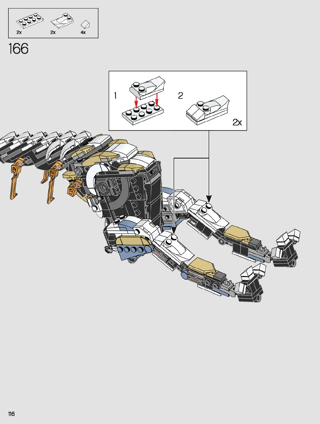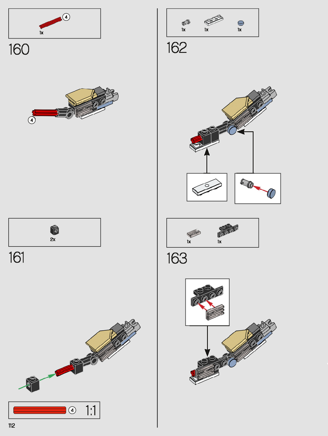 The assembly guide is prepared in a very understandable way for children and adult LEGO enthusiasts. A total of 164 picture galleries are shown, explaining the step-by-step construction stages for 1 different structures.