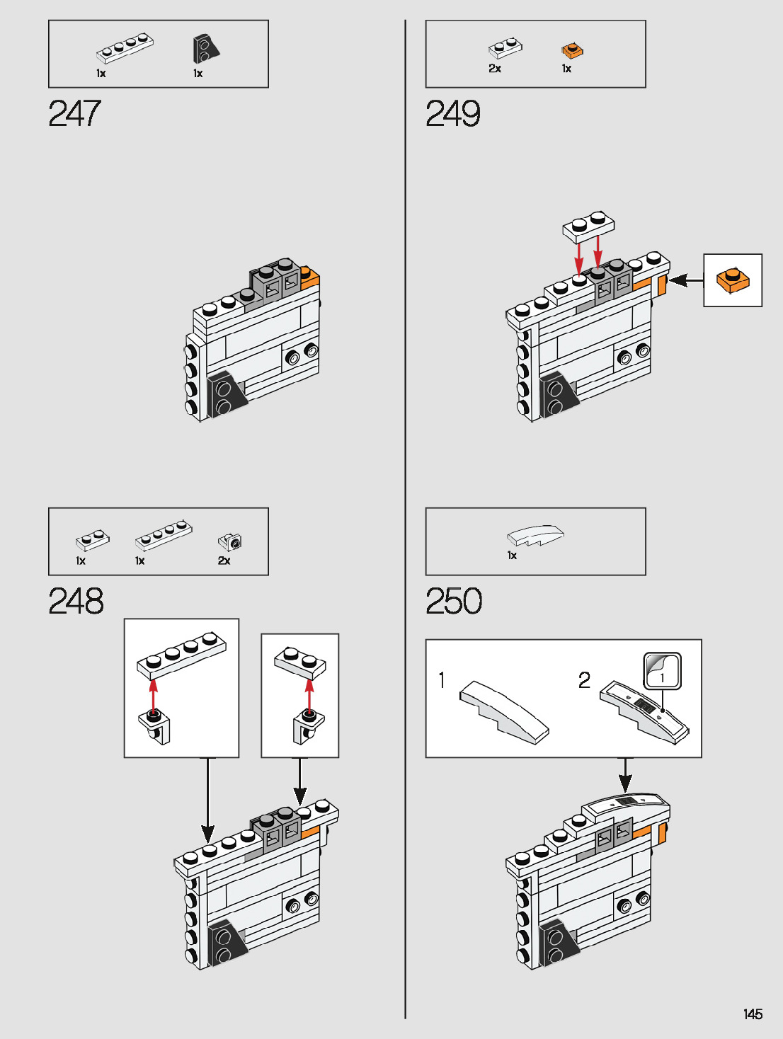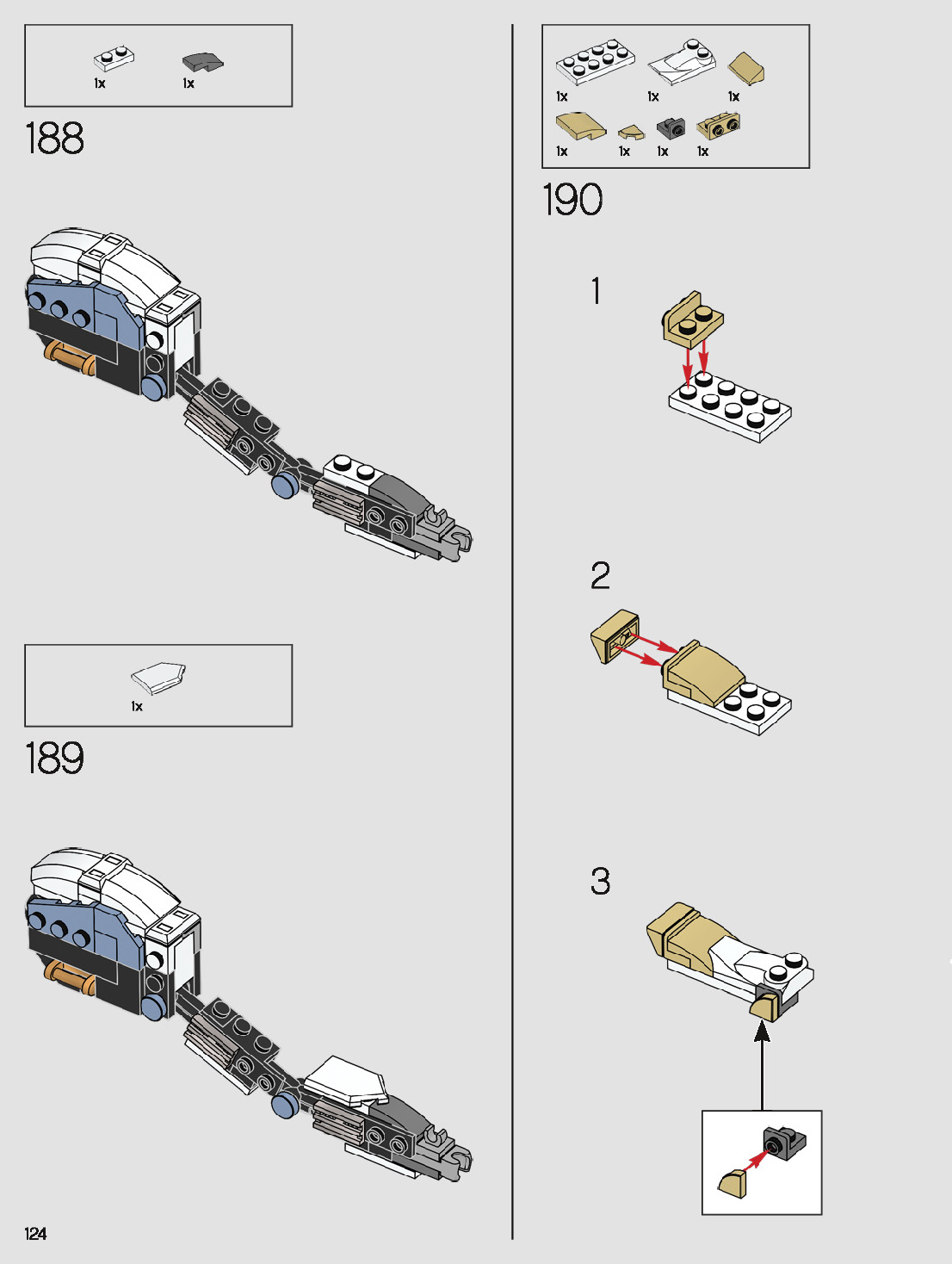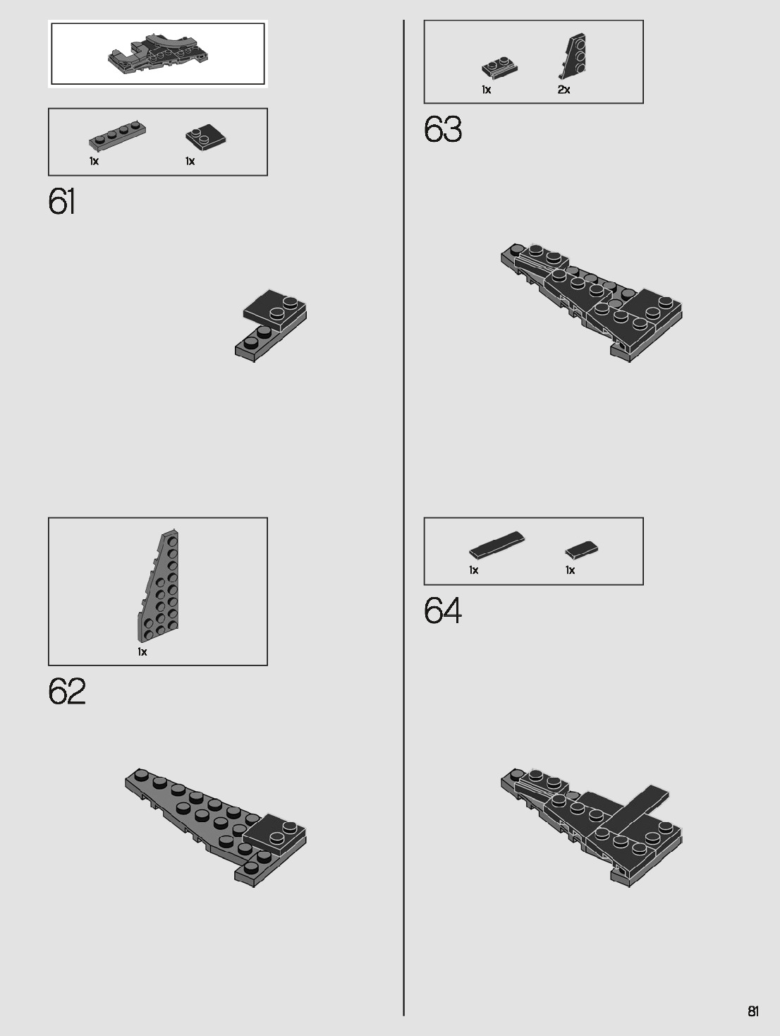 The assembly guide is prepared in a very understandable way for children and adult LEGO enthusiasts. A total of 164 picture galleries are shown, explaining the step-by-step construction stages for 1 different structures.