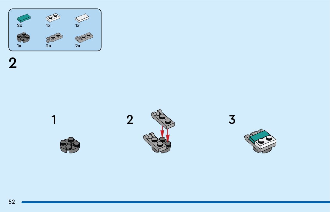 The assembly guide is prepared in a very understandable way for children and adult LEGO enthusiasts. A total of 80 picture galleries are shown, explaining the step-by-step construction stages for 1 different structures.
