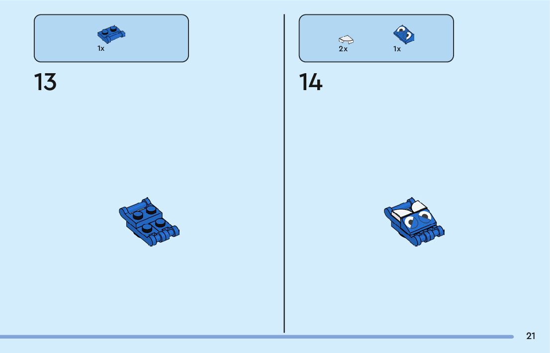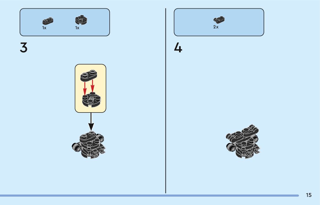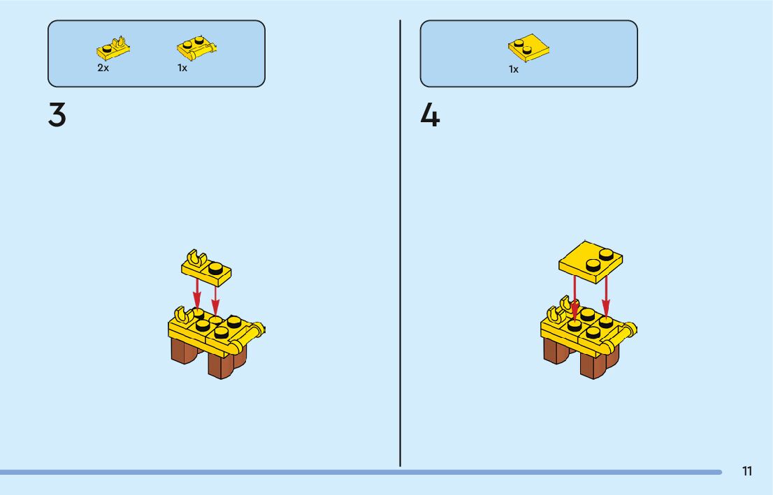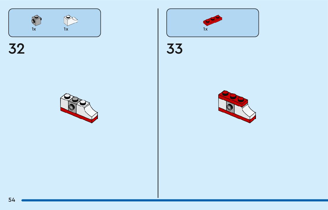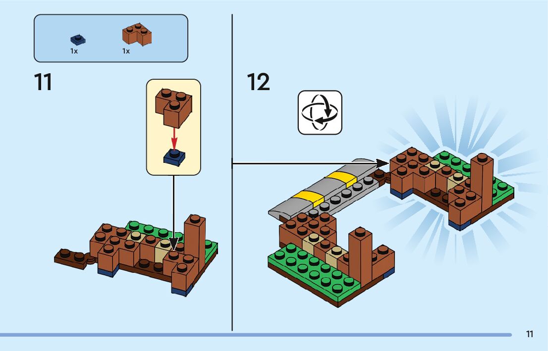 The assembly guide is prepared in a very understandable way for children and adult LEGO enthusiasts. A total of 120 picture galleries are shown, explaining the step-by-step construction stages for 2 different structures.