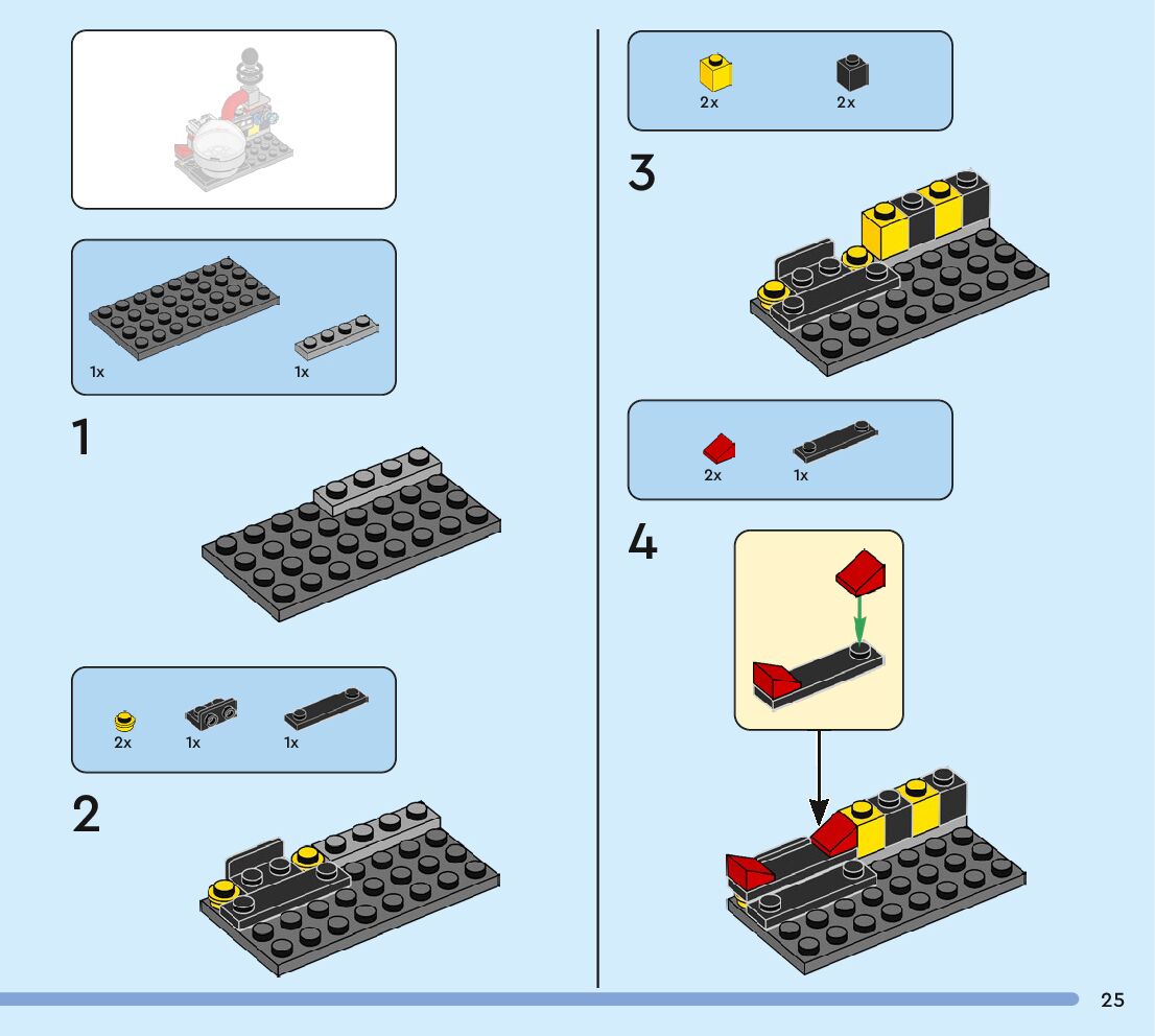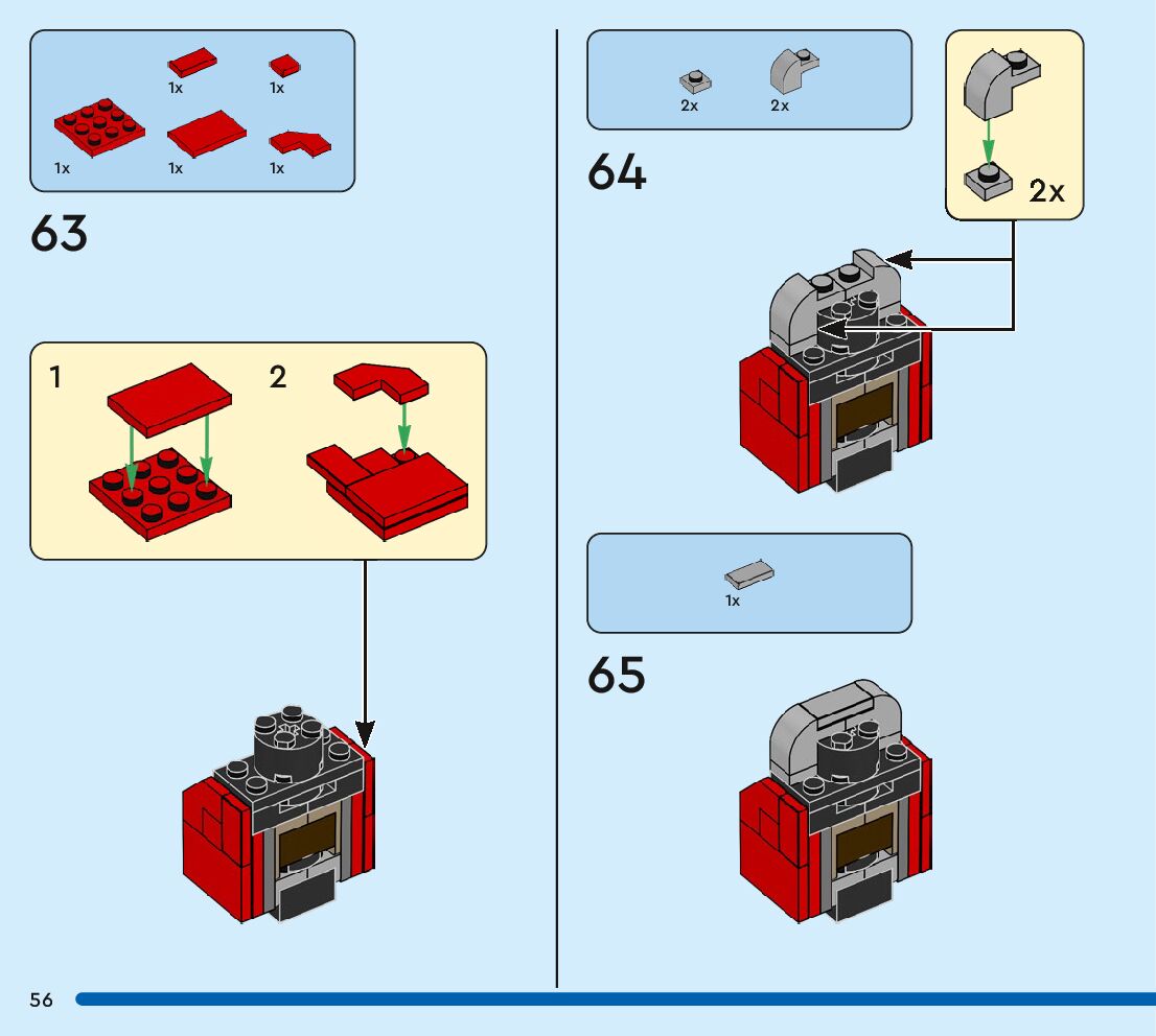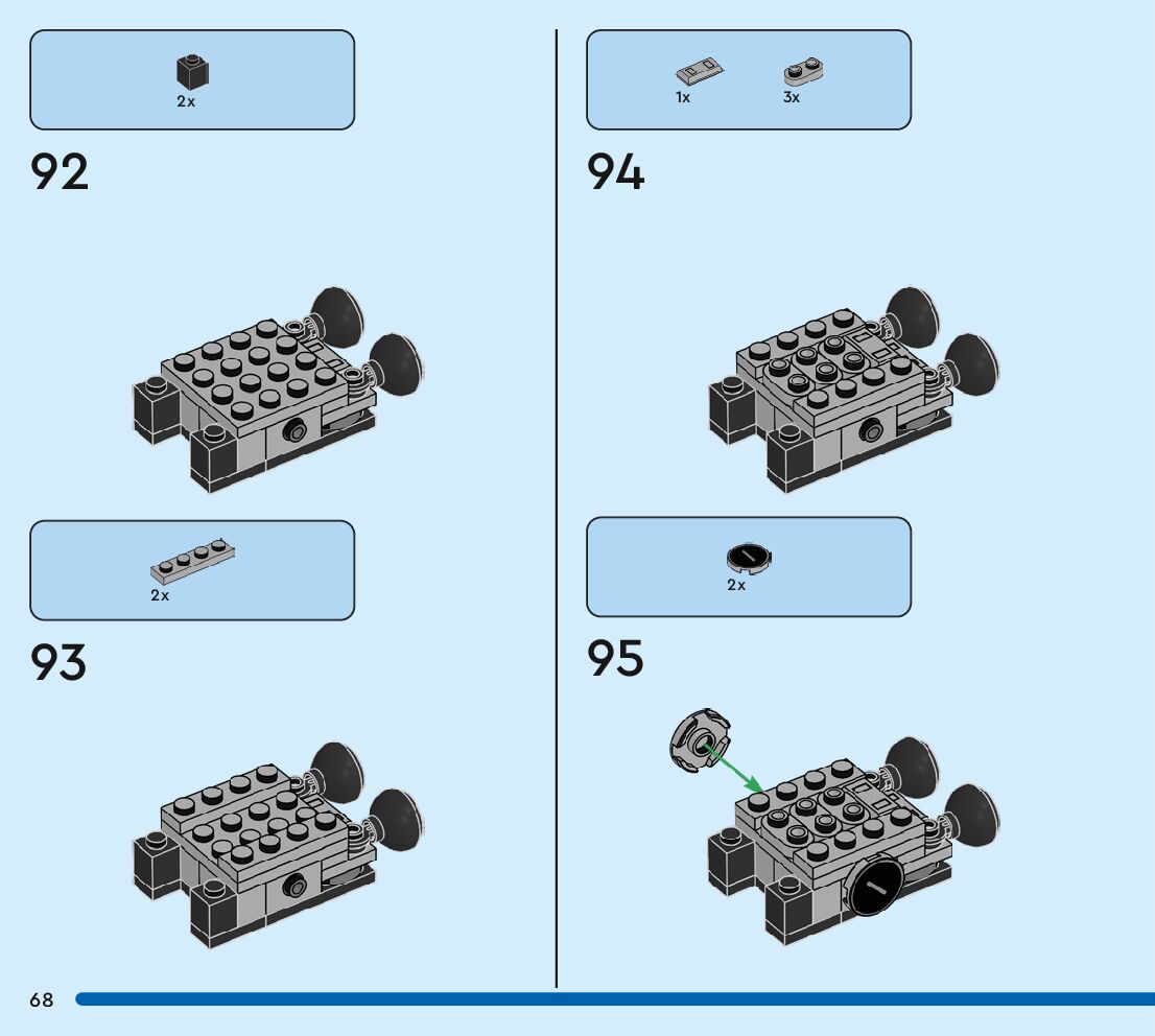 The assembly guide is prepared in a very understandable way for children and adult LEGO enthusiasts. A total of 96 picture galleries are shown, explaining the step-by-step construction stages for 1 different structures.