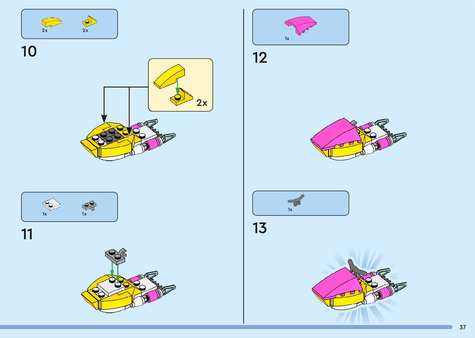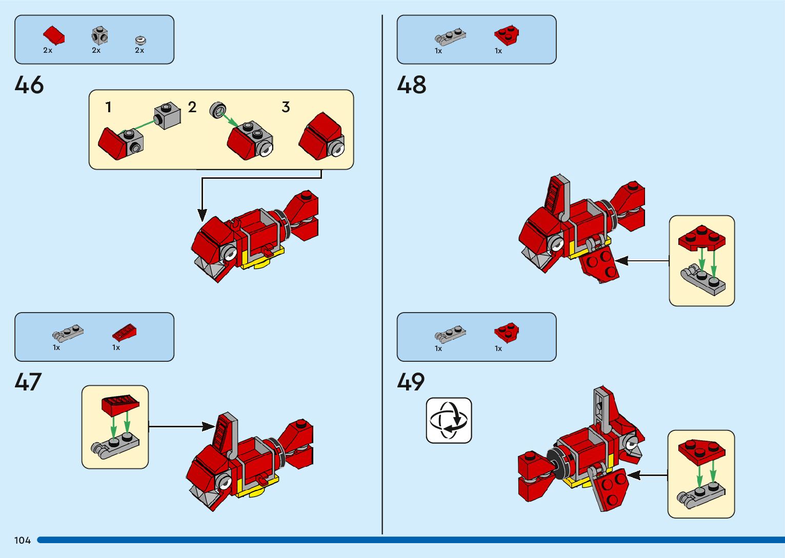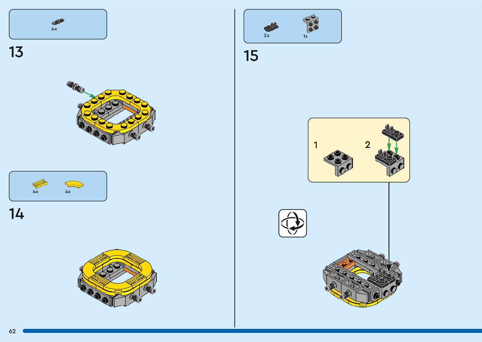 The assembly guide is prepared in a very understandable way for children and adult LEGO enthusiasts. A total of 124 picture galleries are shown, explaining the step-by-step construction stages for 1 different structures.