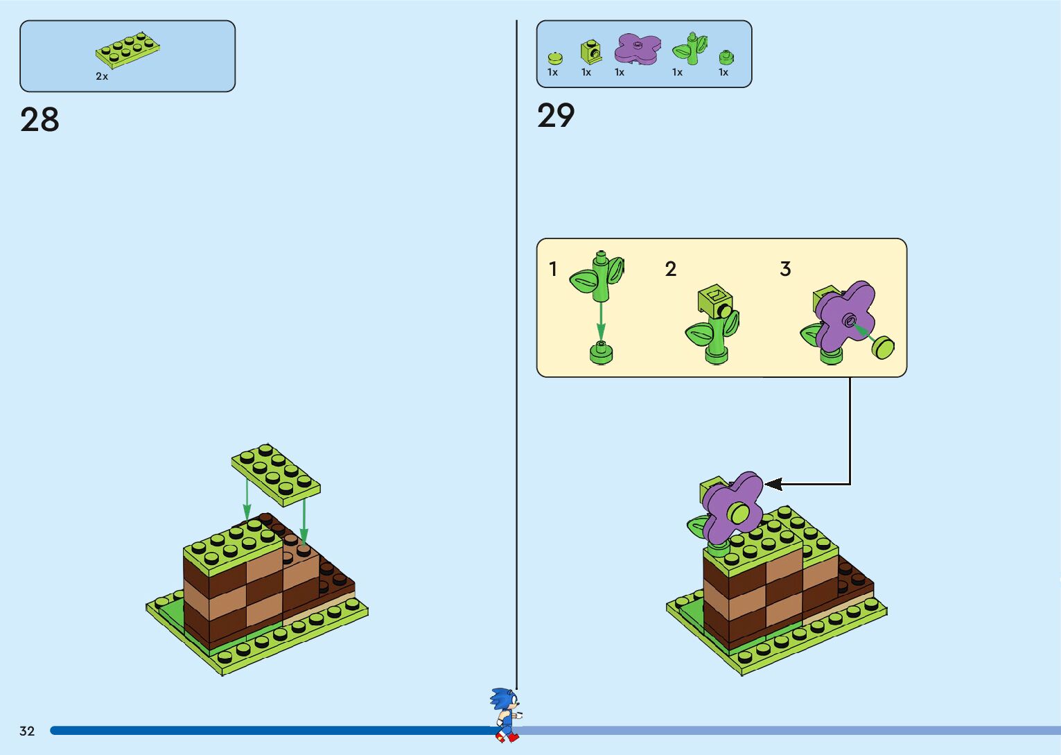 On this page you can find the original construction manual for the LEGO 76994 set. With the assembly manual you can easily learn how to build the 76994 Sonic's Green Hill Zone Loop Challenge step by step. The set was released in 2023.