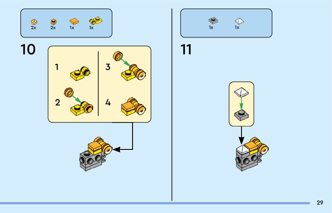 The assembly guide is prepared in a very understandable way for children and adult LEGO enthusiasts. A total of 76 picture galleries are shown, explaining the step-by-step construction stages for 1 different structures.