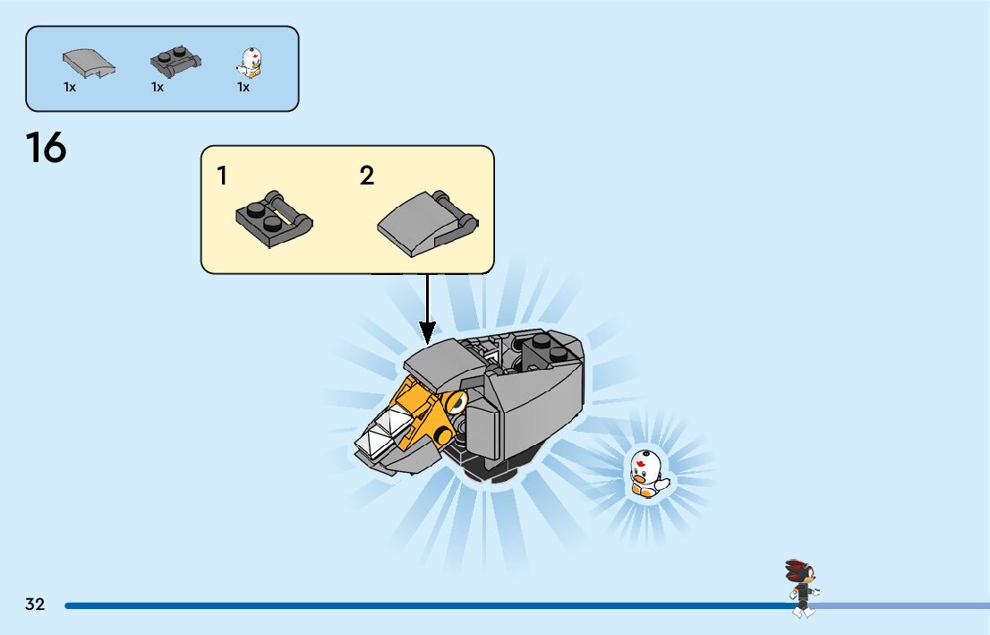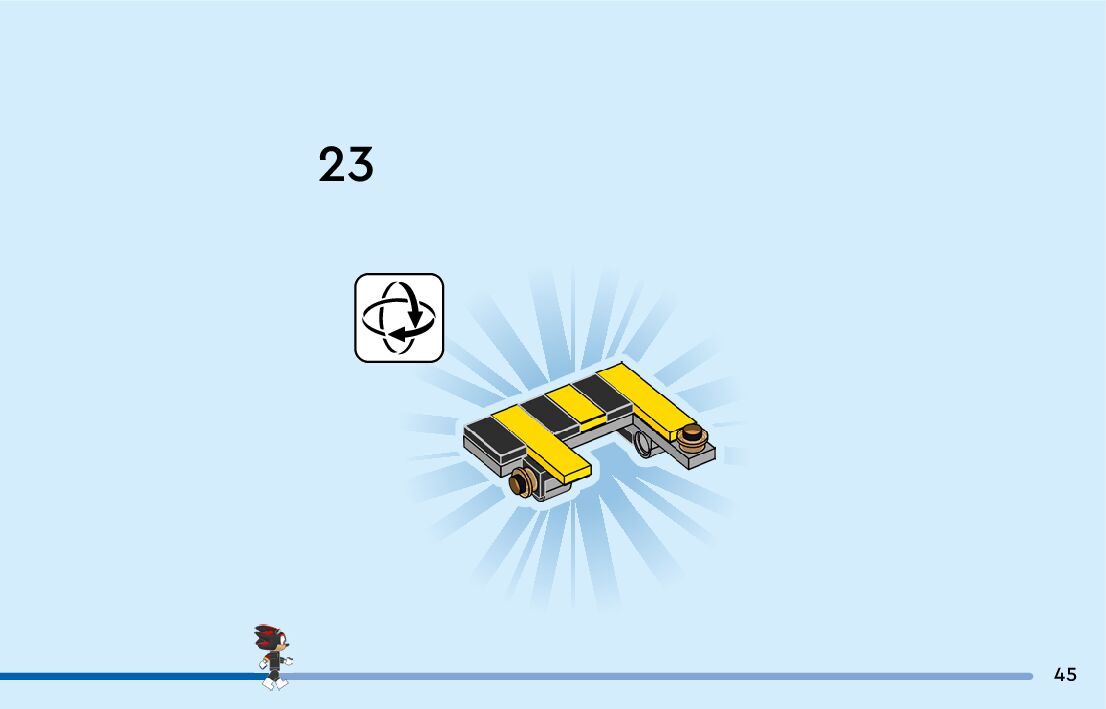 On this page you can find the original construction manual for the LEGO 76995 set. With the assembly manual you can easily learn how to build the 76995 Shadow the Hedgehog Escape step by step. The set was released in 2023.