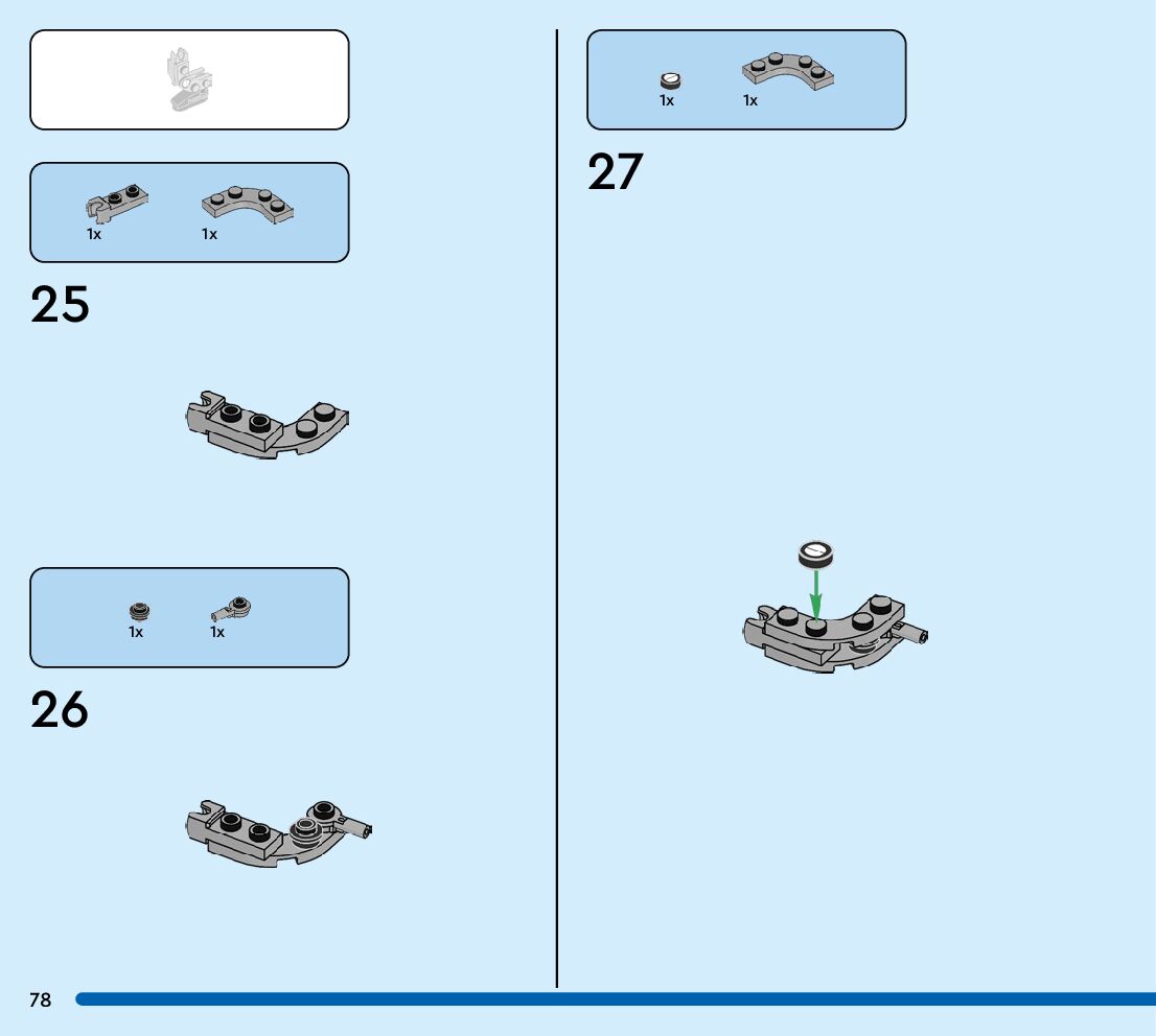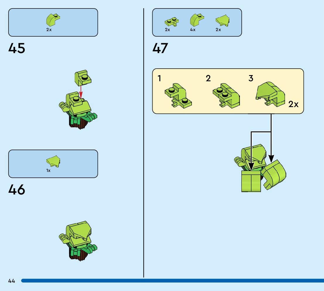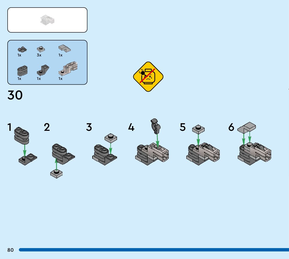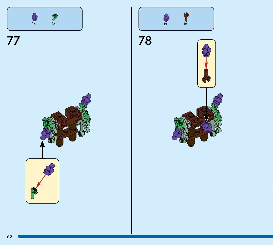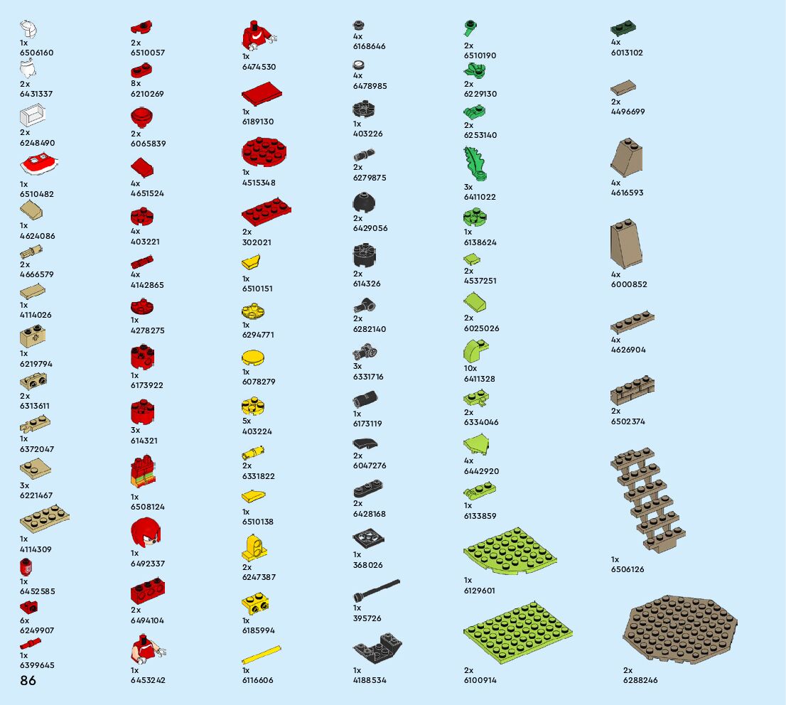The assembly guide is prepared in a very understandable way for children and adult LEGO enthusiasts. A total of 88 picture galleries are shown, explaining the step-by-step construction stages for 1 different structures.