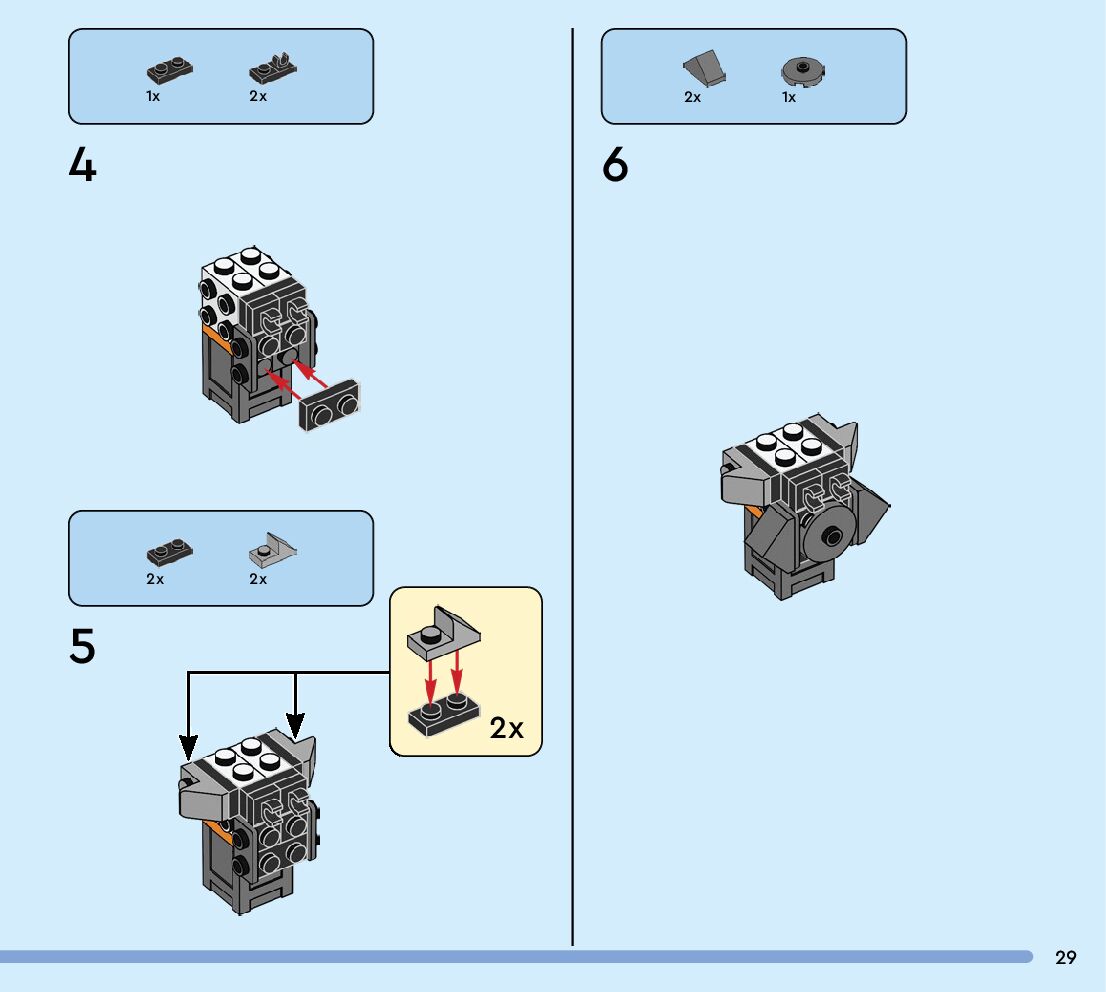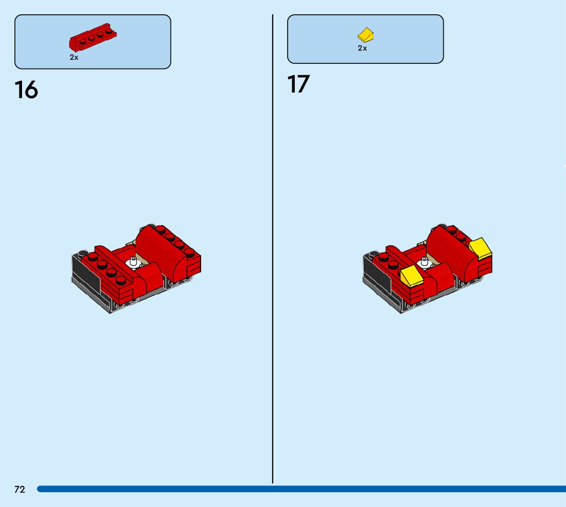 The assembly guide is prepared in a very understandable way for children and adult LEGO enthusiasts. A total of 136 picture galleries are shown, explaining the step-by-step construction stages for 1 different structures.