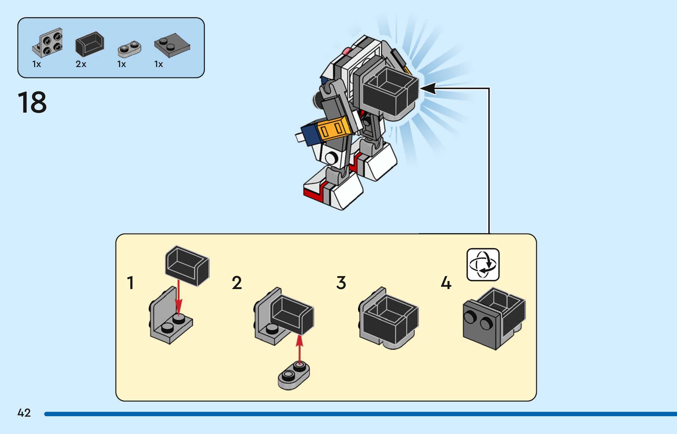 The assembly guide is prepared in a very understandable way for children and adult LEGO enthusiasts. A total of 56 picture galleries are shown, explaining the step-by-step construction stages for 1 different structures.
