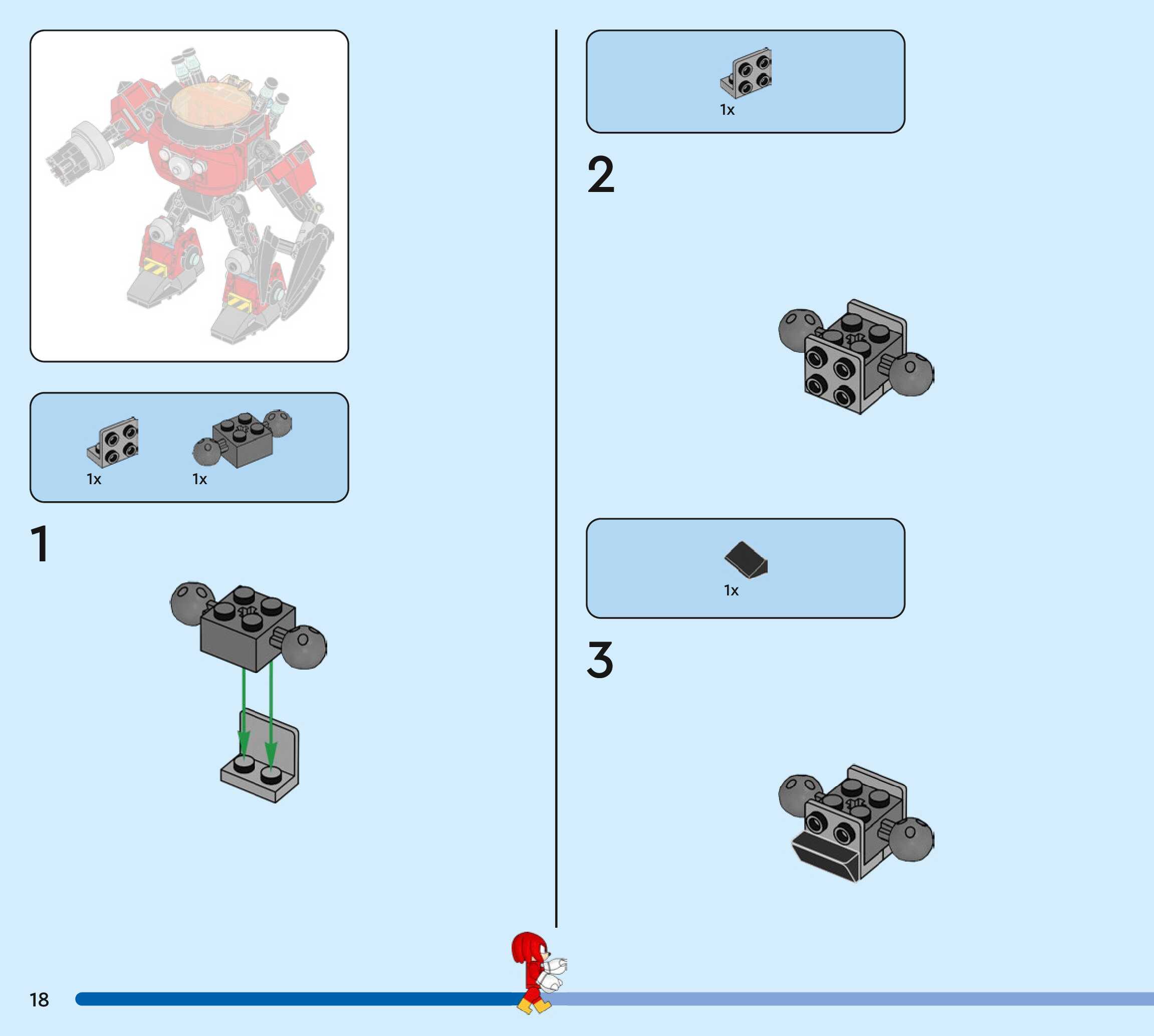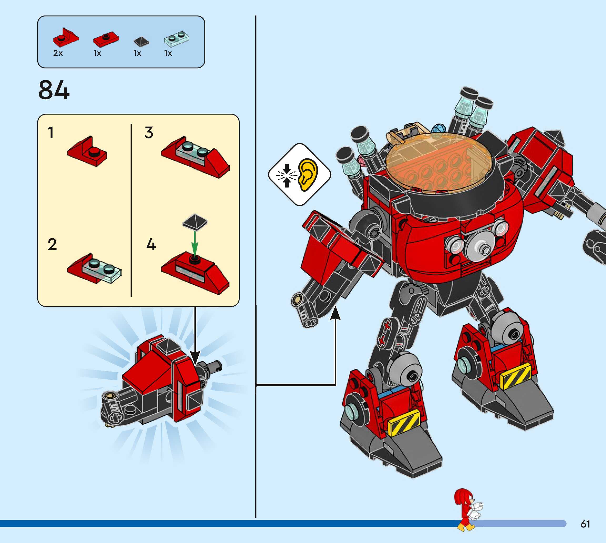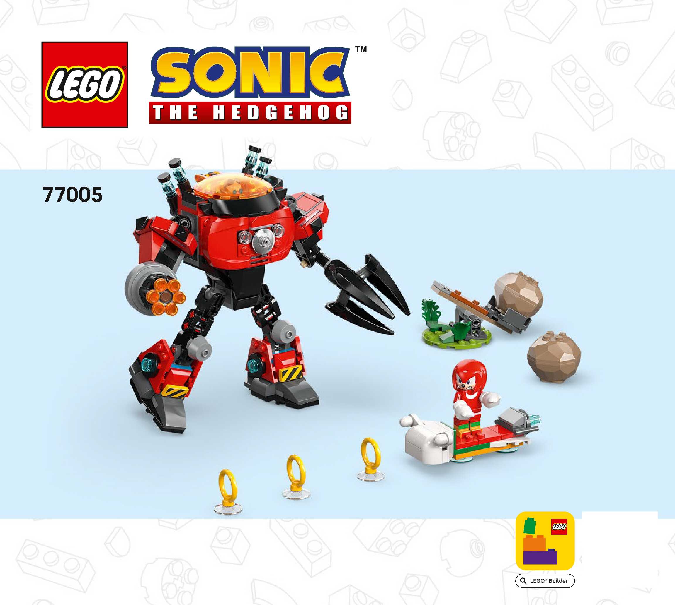 This page shares information about LEGO Knuckles vs. Dr. Eggman Egg Crusher Mech manual, LEGO 77005 PDF instructions, LEGO Knuckles vs. Dr. Eggman Egg Crusher Mech building guide online, How to build Knuckles vs. Dr. Eggman Egg Crusher Mech LEGO.