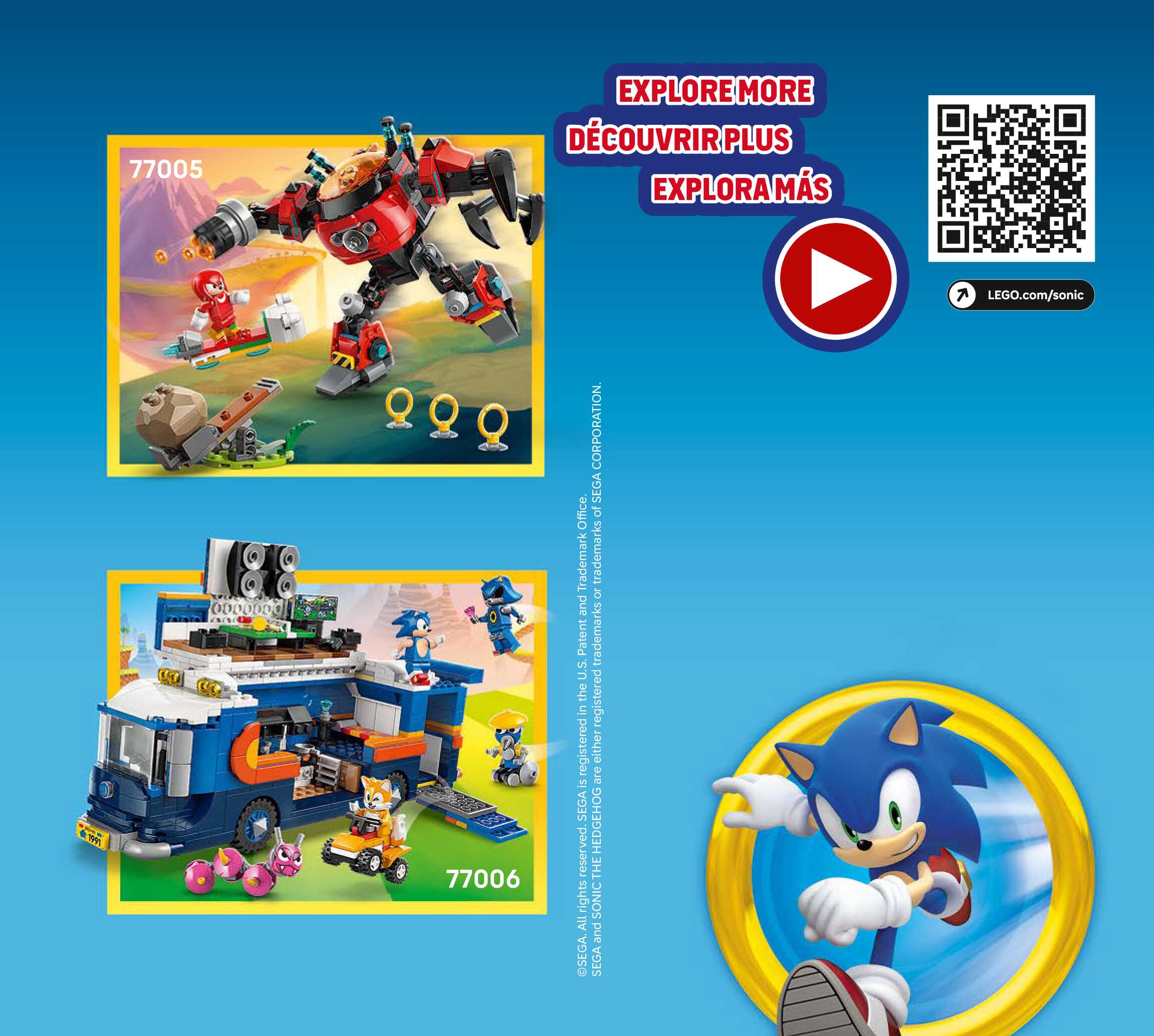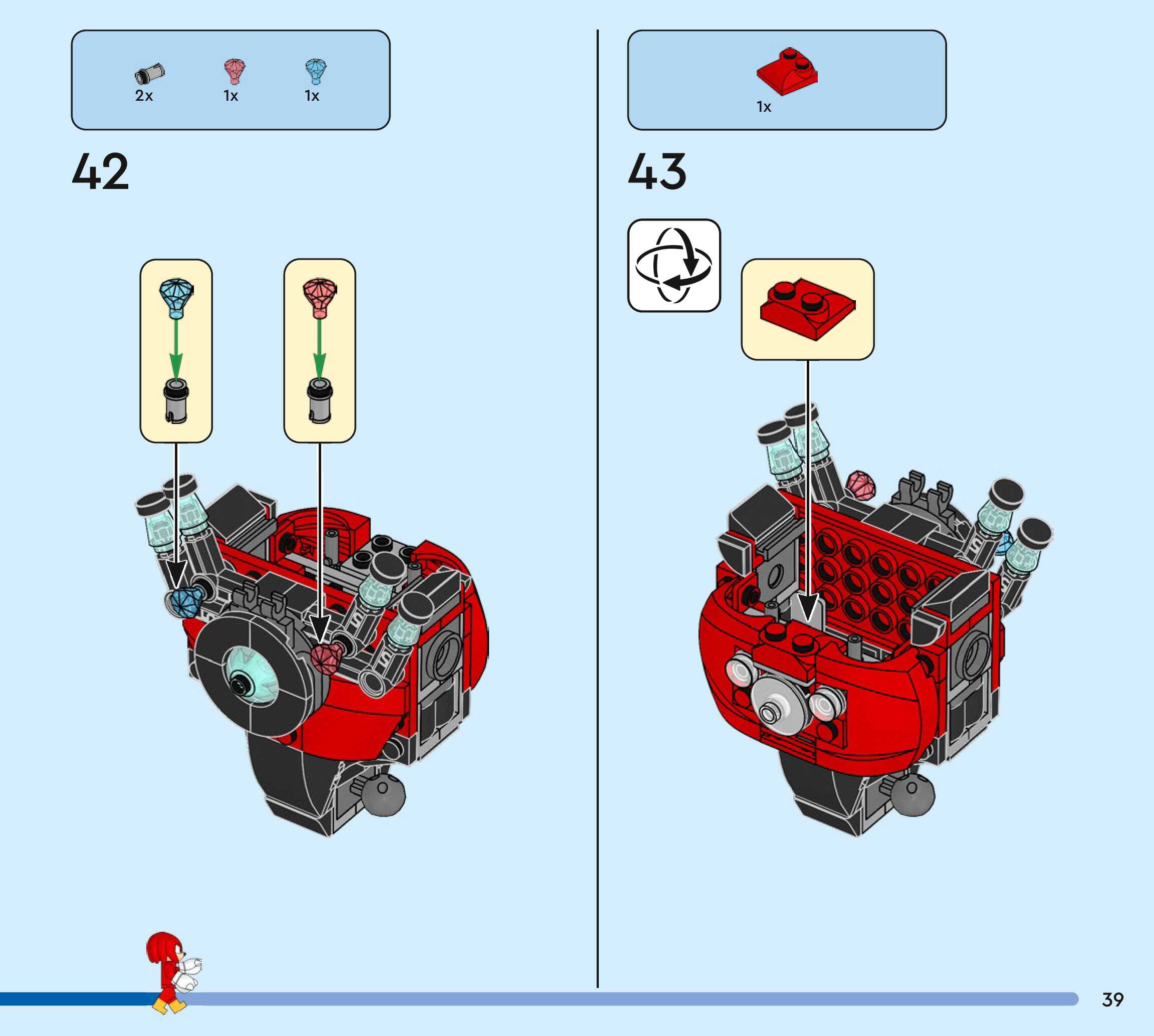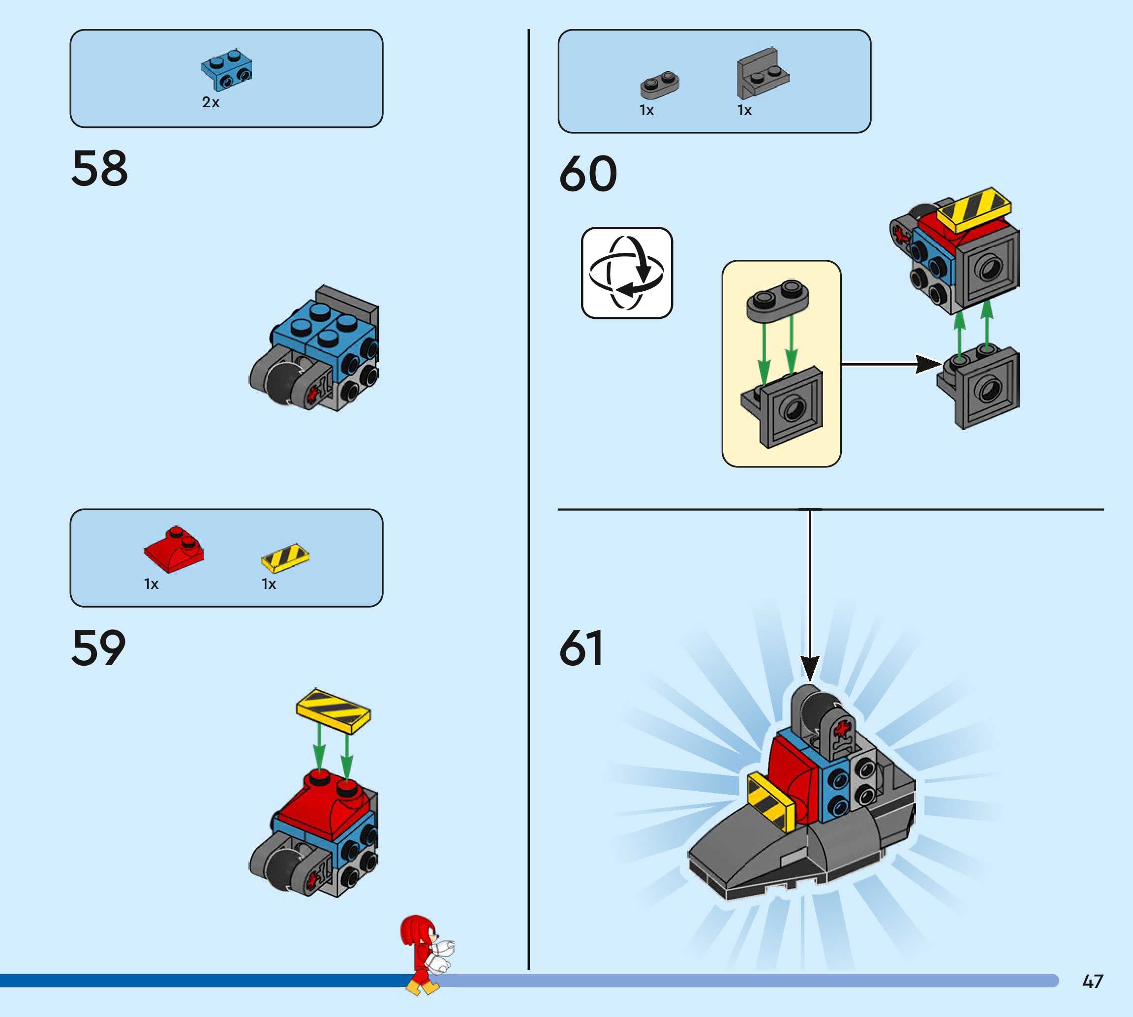This page shares information about LEGO Knuckles vs. Dr. Eggman Egg Crusher Mech manual, LEGO 77005 PDF instructions, LEGO Knuckles vs. Dr. Eggman Egg Crusher Mech building guide online, How to build Knuckles vs. Dr. Eggman Egg Crusher Mech LEGO.