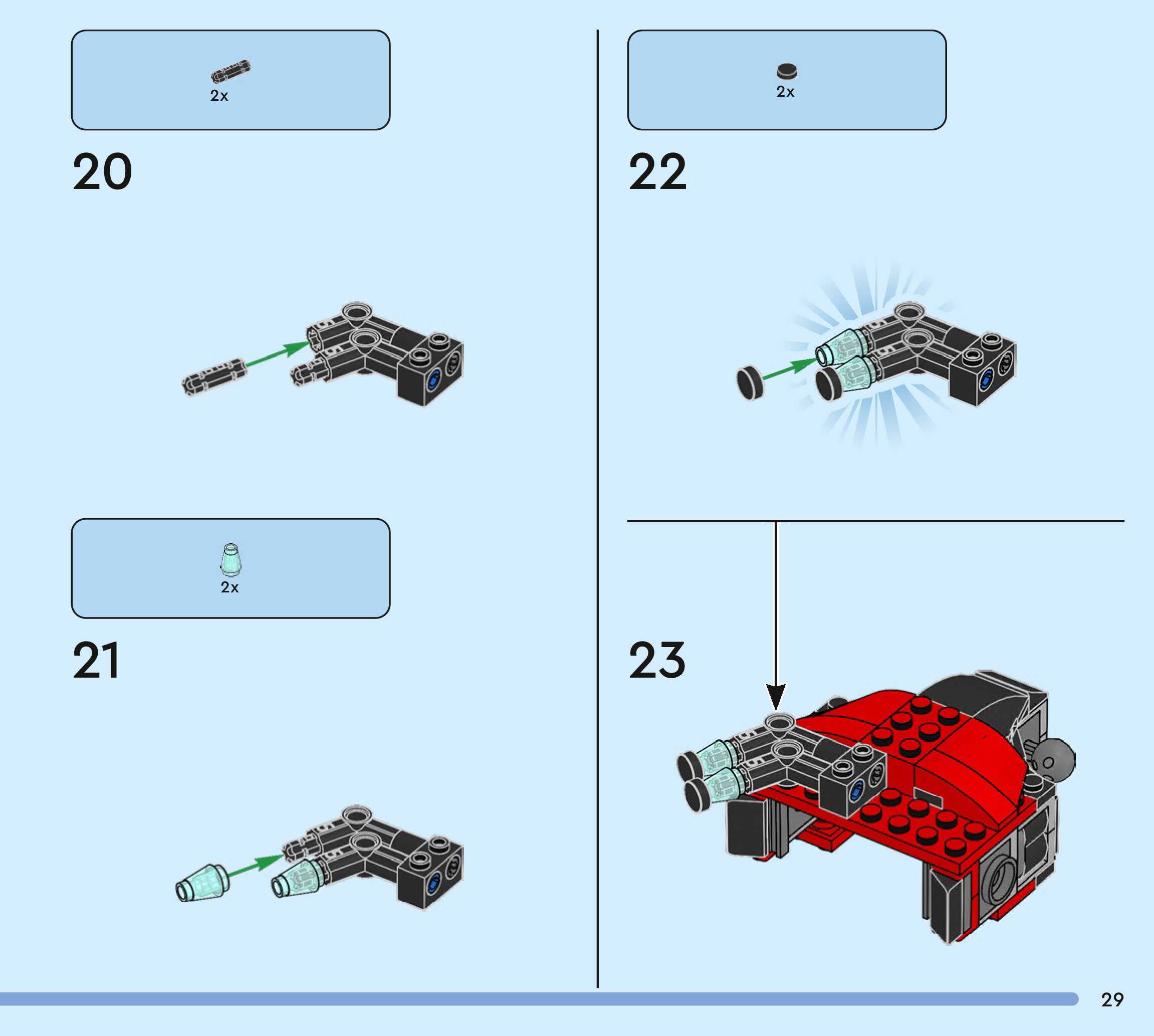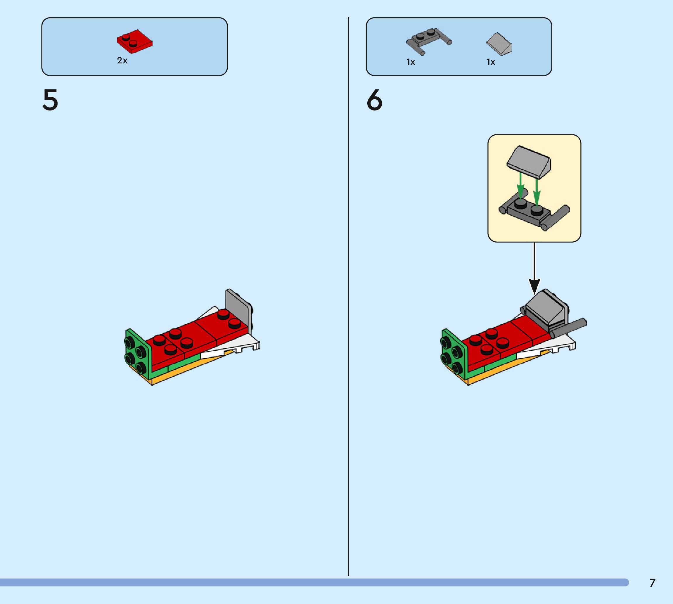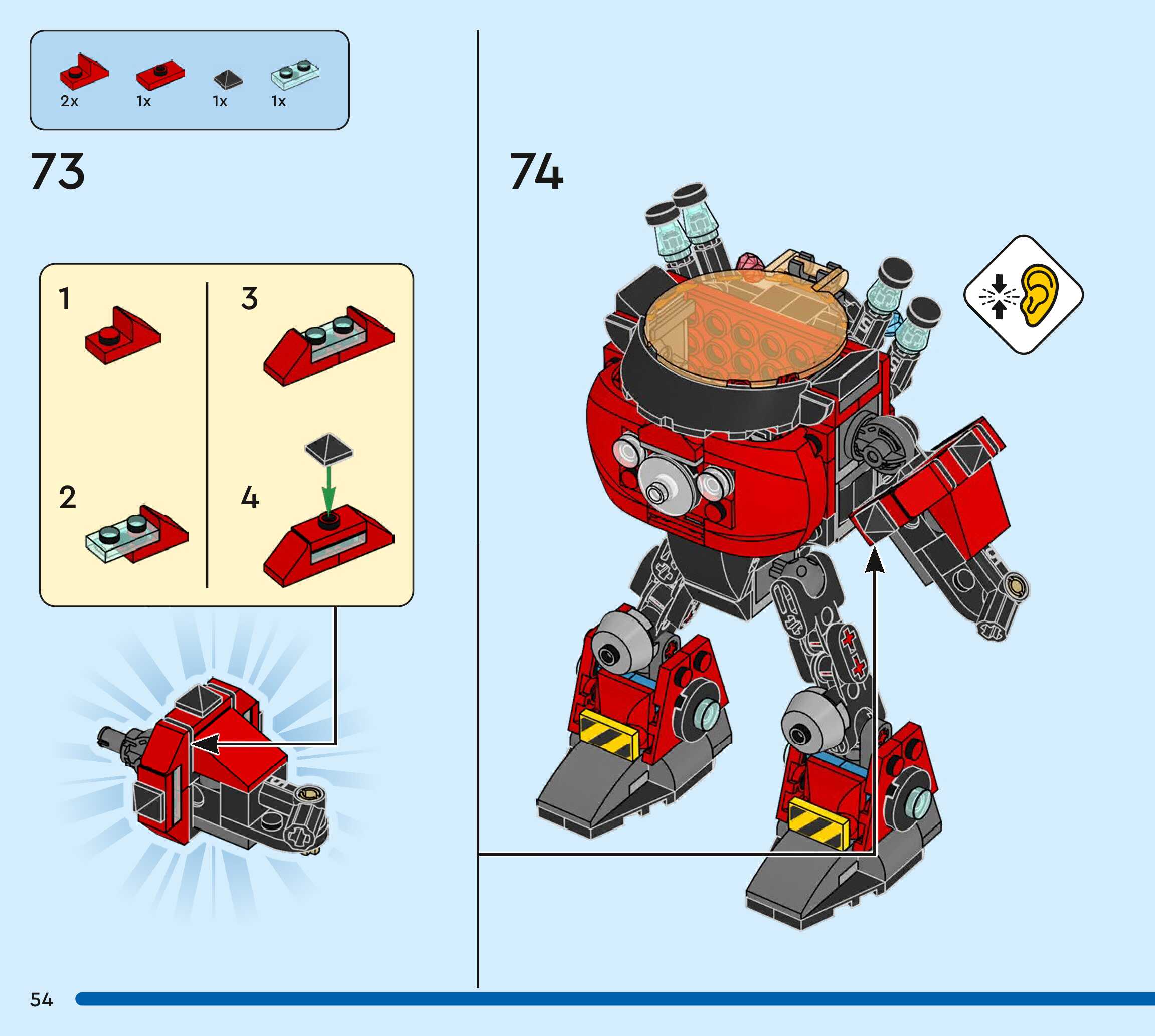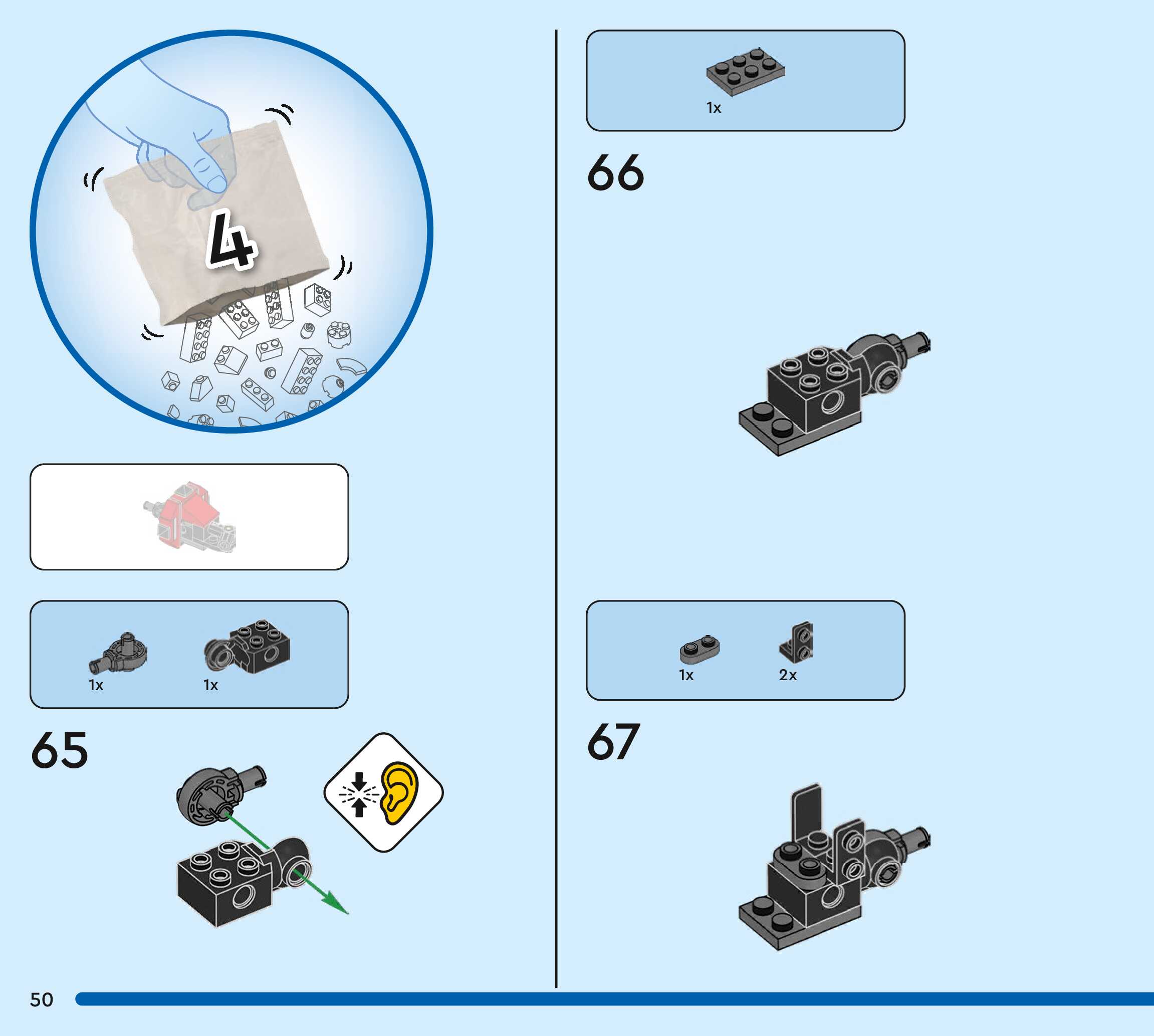 The assembly guide is prepared in a very understandable way for children and adult LEGO enthusiasts. A total of 72 picture galleries are shown, explaining the step-by-step construction stages for 1 different structures.