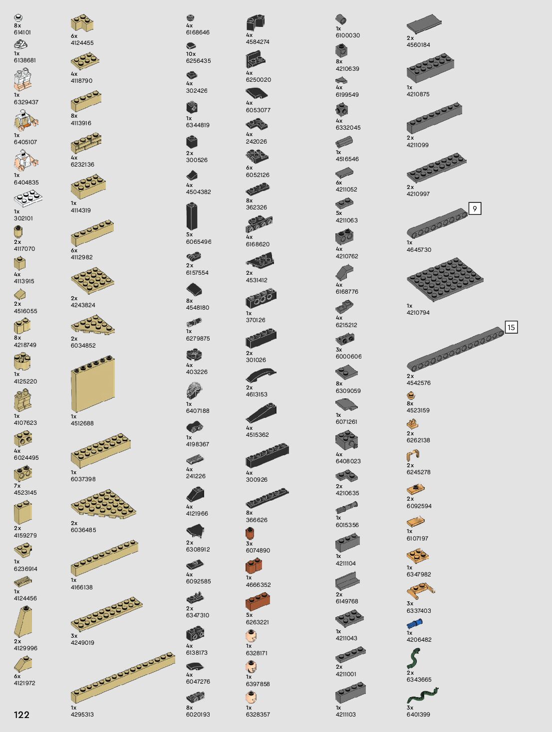 The assembly guide is prepared in a very understandable way for children and adult LEGO enthusiasts. A total of 124 picture galleries are shown, explaining the step-by-step construction stages for 1 different structures.