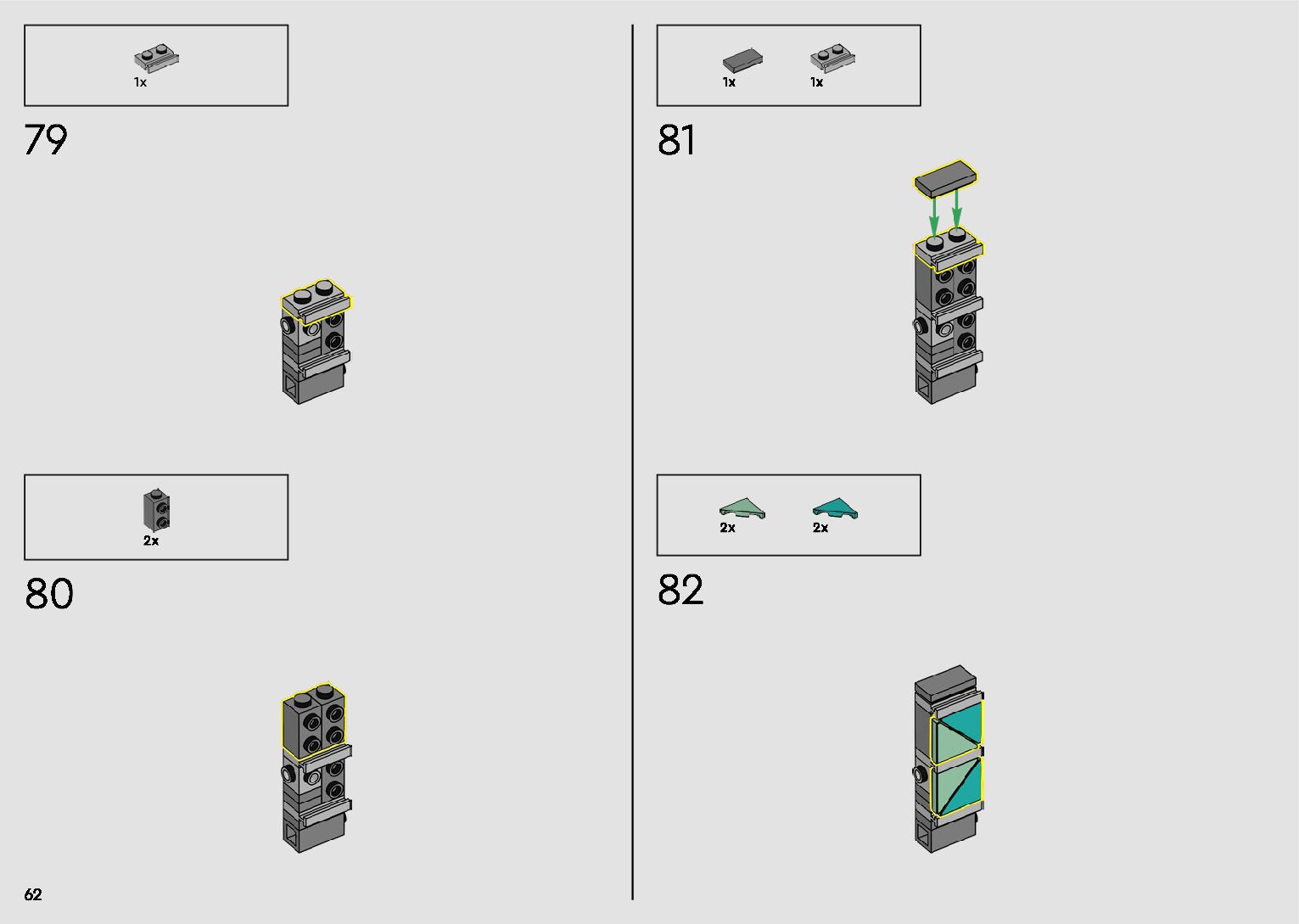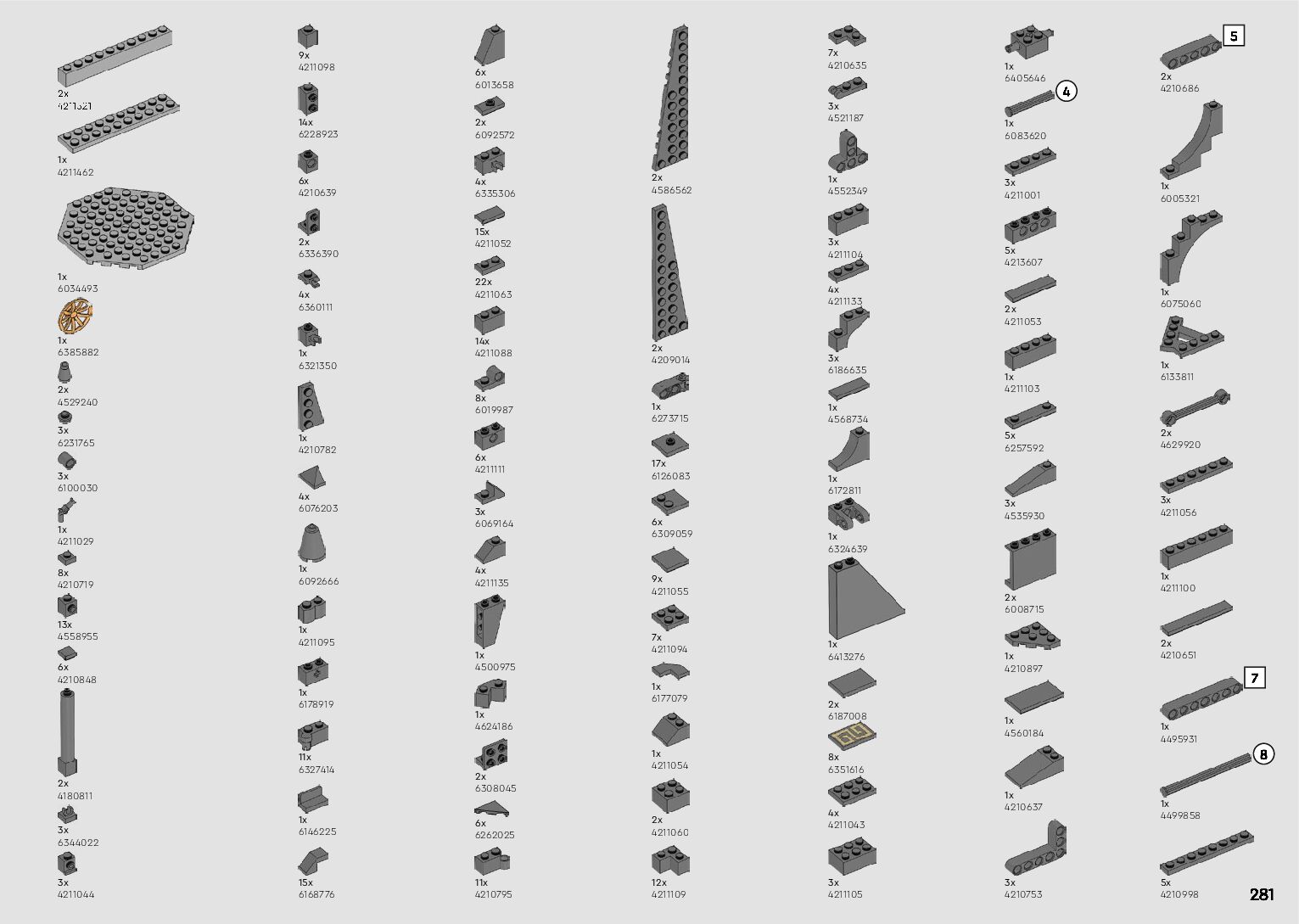 The assembly guide is prepared in a very understandable way for children and adult LEGO enthusiasts. A total of 284 picture galleries are shown, explaining the step-by-step construction stages for 1 different structures.