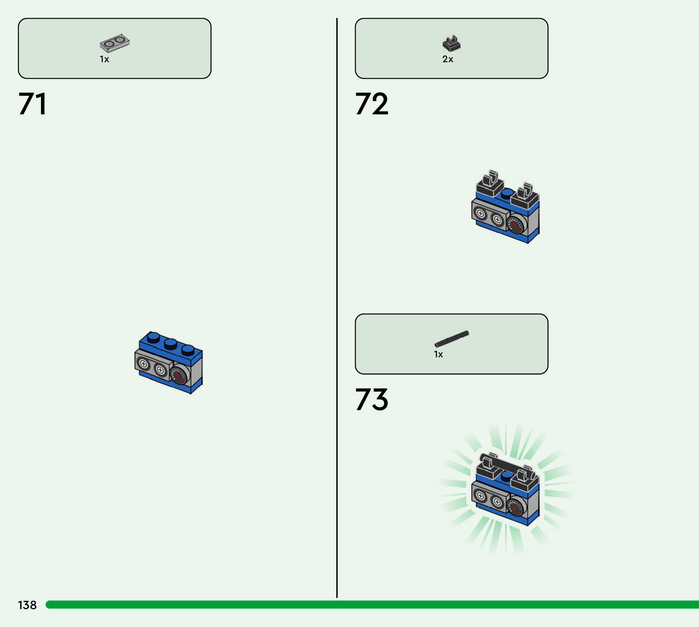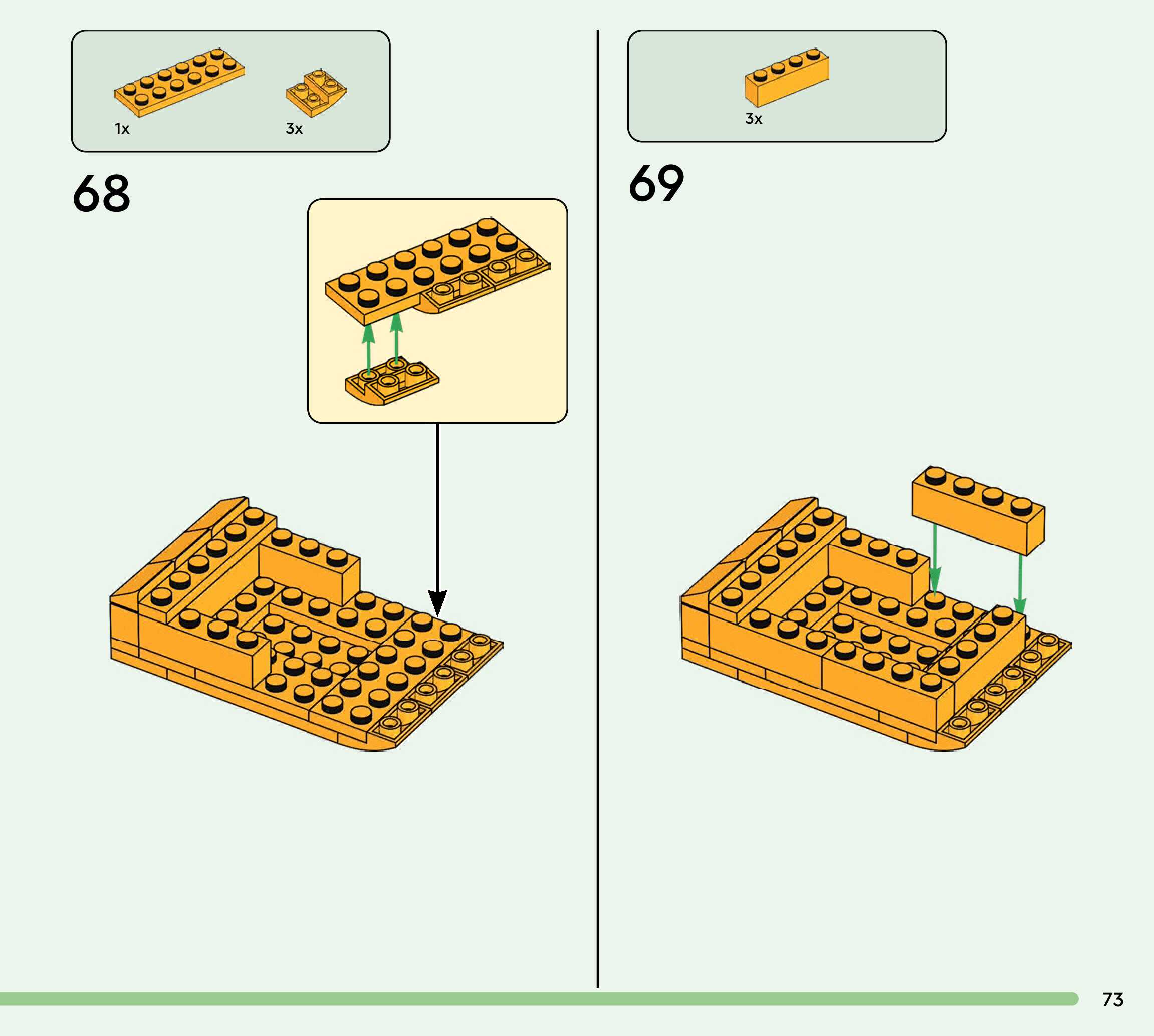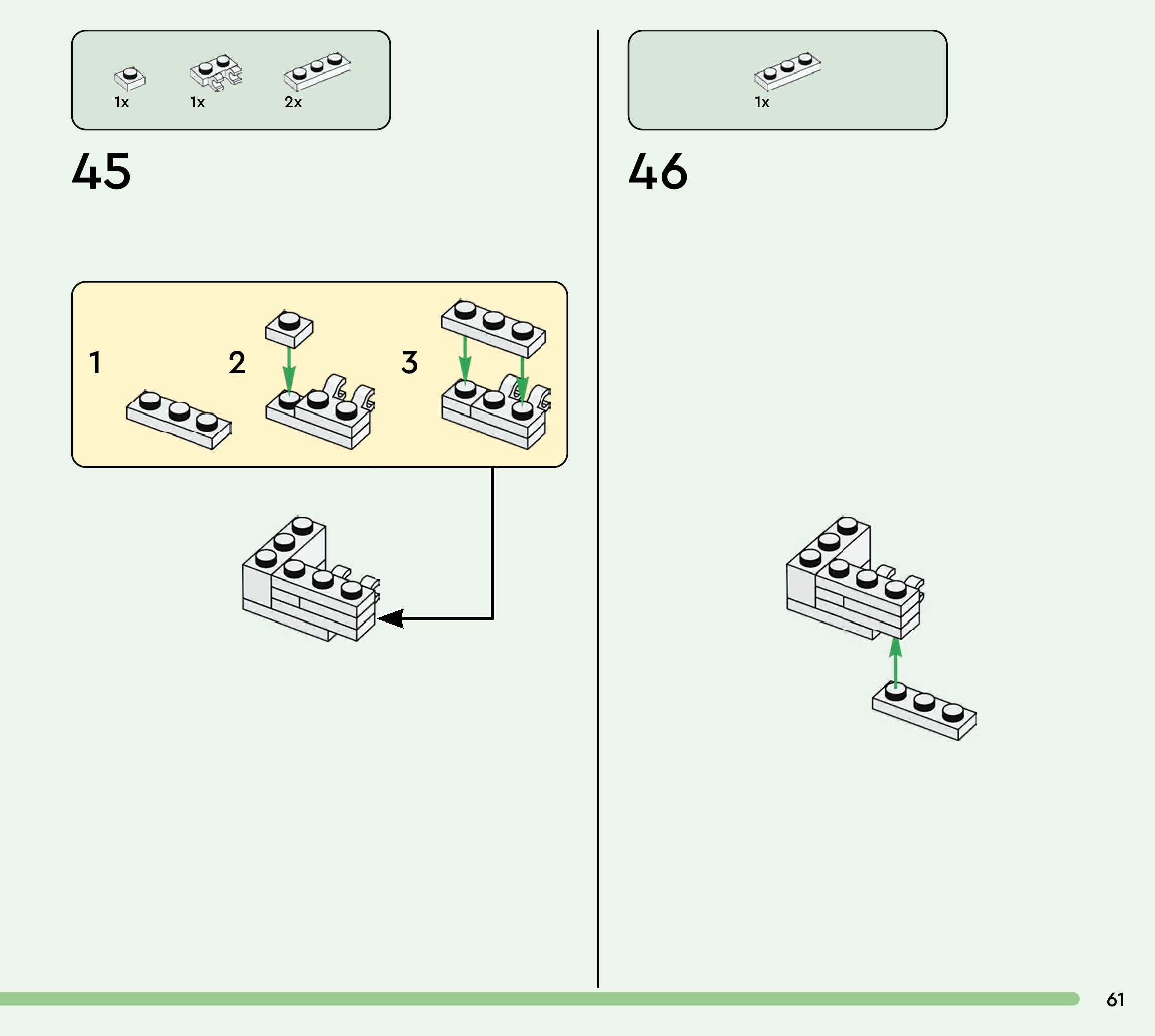 The assembly guide is prepared in a very understandable way for children and adult LEGO enthusiasts. A total of 168 picture galleries are shown, explaining the step-by-step construction stages for 1 different structures.