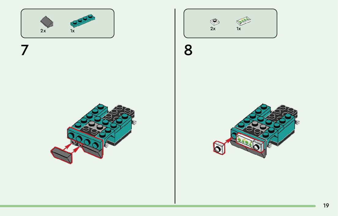 The assembly guide is prepared in a very understandable way for children and adult LEGO enthusiasts. A total of 80 picture galleries are shown, explaining the step-by-step construction stages for 1 different structures.