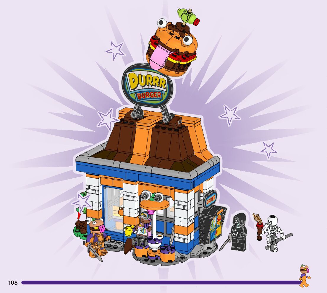 This page shares information about LEGO Durrr Burger Restaurant manual, LEGO 77076 PDF instructions, LEGO Durrr Burger Restaurant building guide online, How to build Durrr Burger Restaurant LEGO.