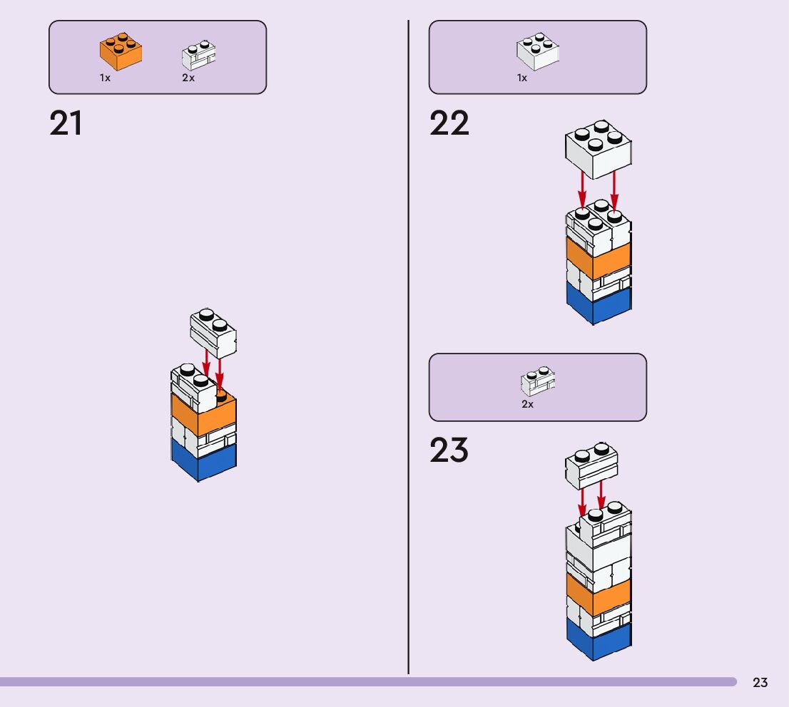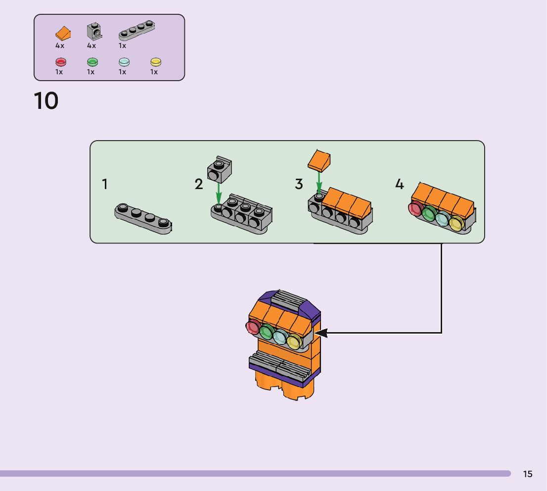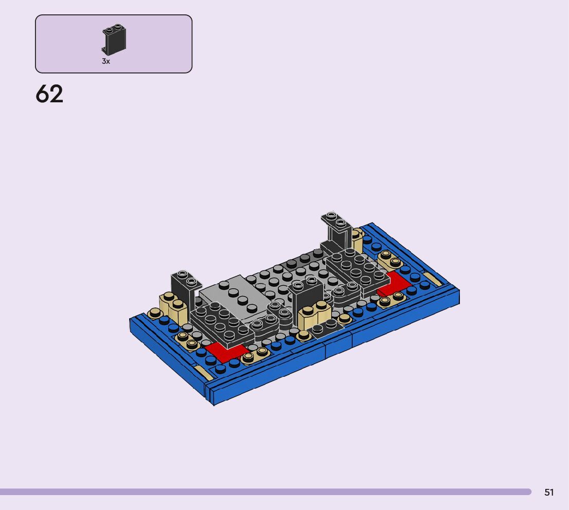 The assembly guide is prepared in a very understandable way for children and adult LEGO enthusiasts. A total of 124 picture galleries are shown, explaining the step-by-step construction stages for 1 different structures.