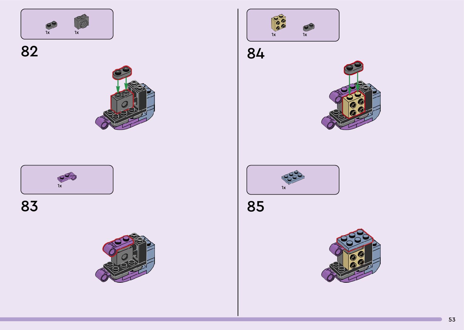 The assembly guide is prepared in a very understandable way for children and adult LEGO enthusiasts. A total of 160 picture galleries are shown, explaining the step-by-step construction stages for 1 different structures.