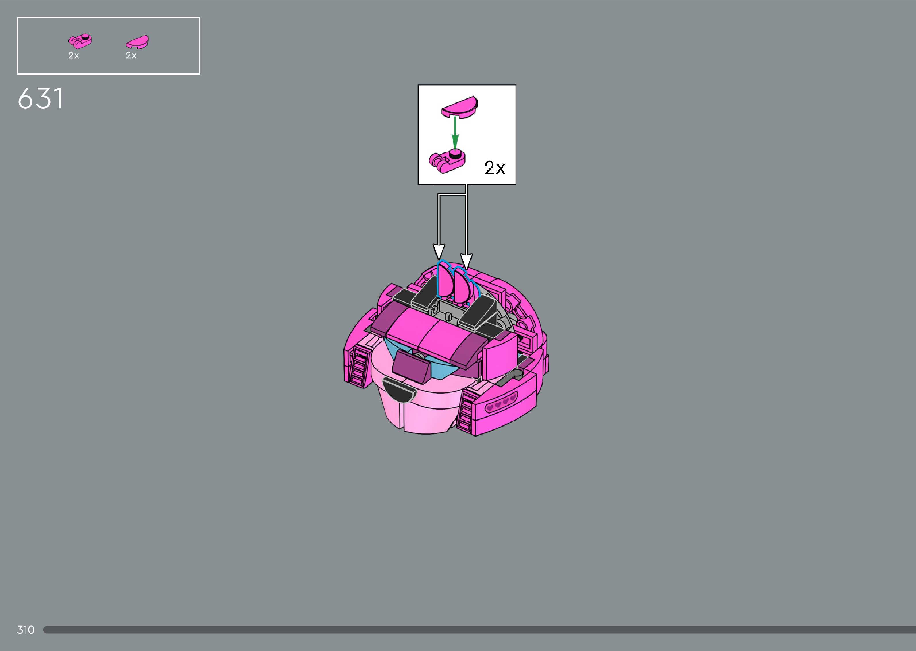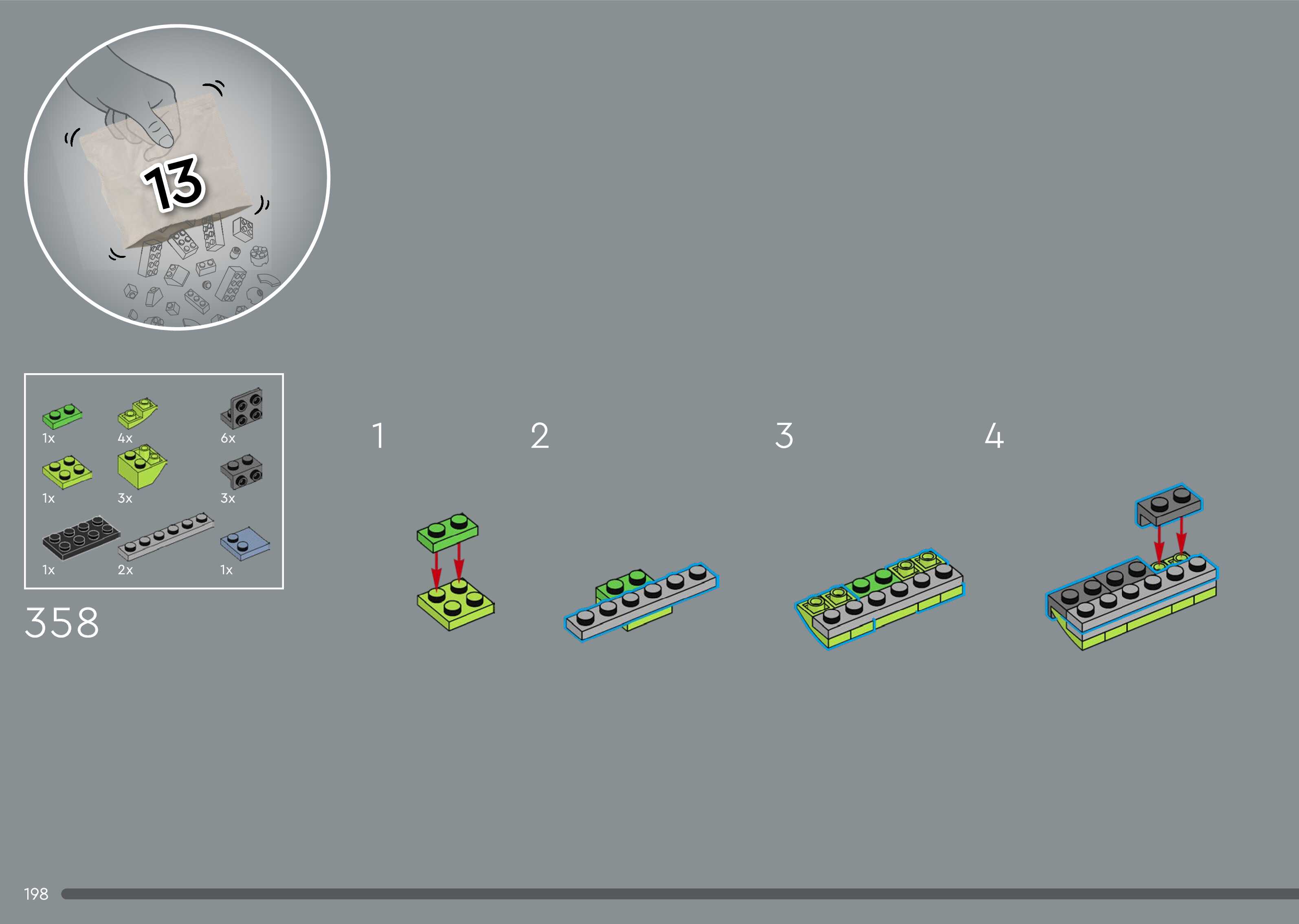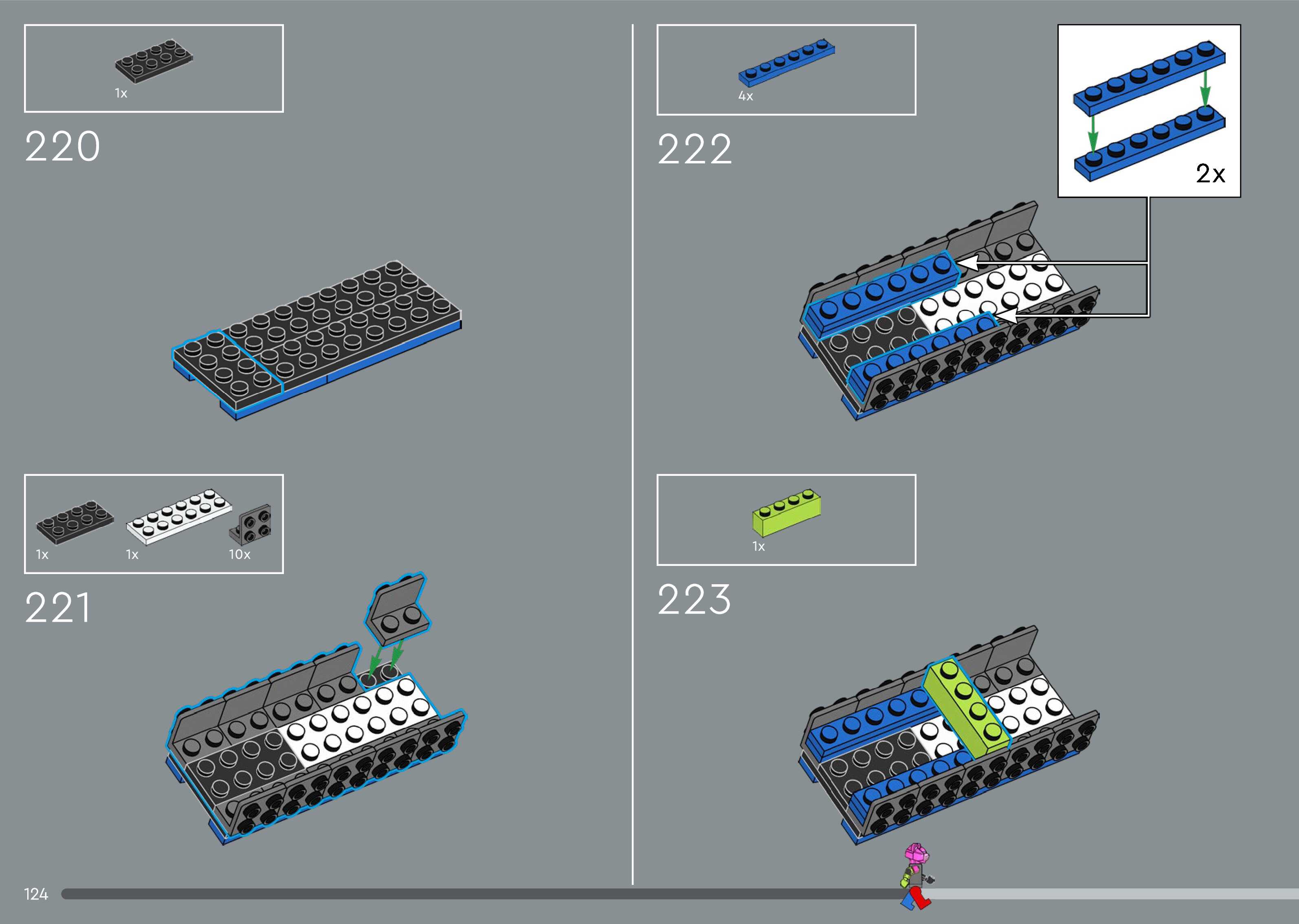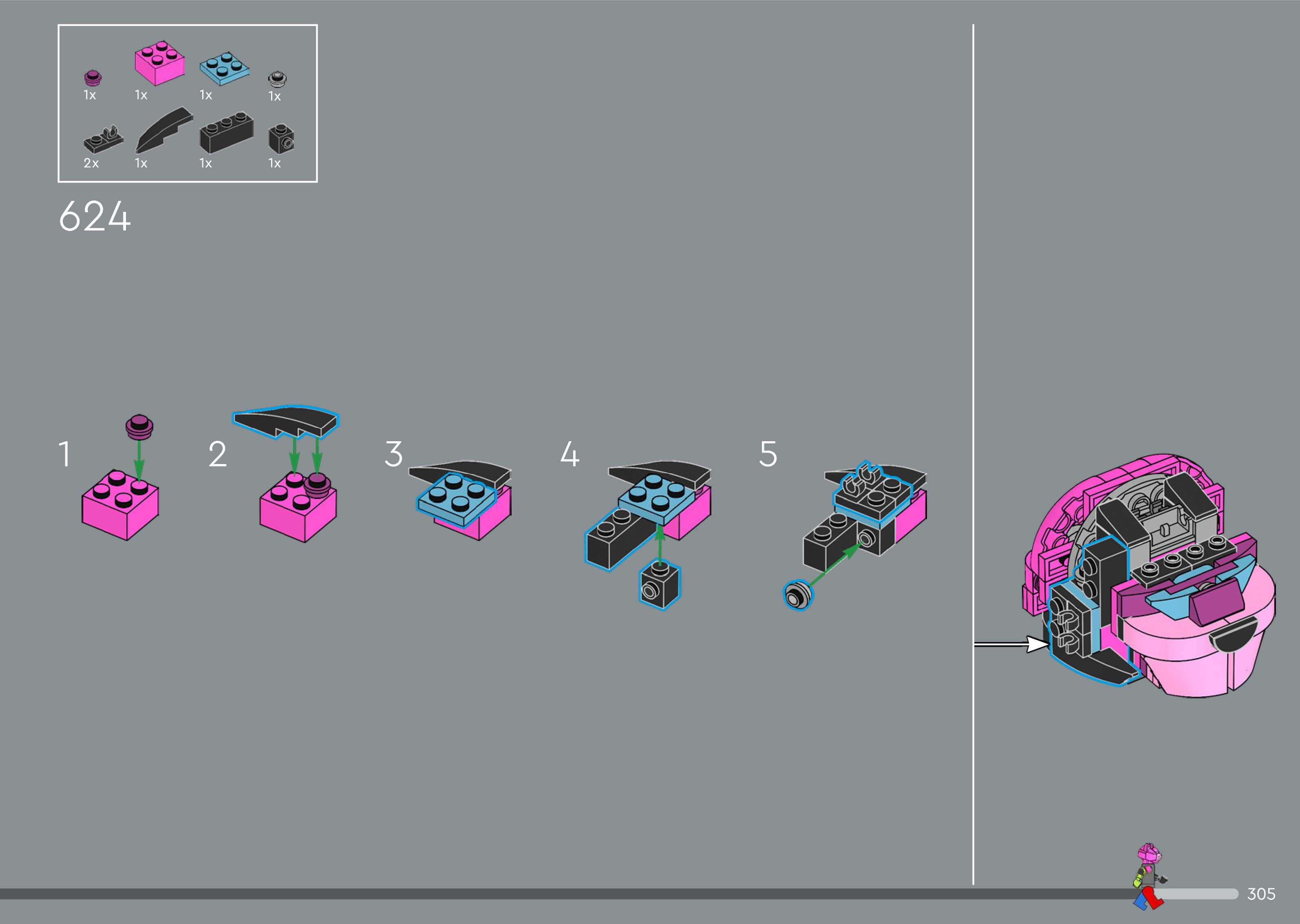 The assembly guide is prepared in a very understandable way for children and adult LEGO enthusiasts. A total of 324 picture galleries are shown, explaining the step-by-step construction stages for 1 different structures.