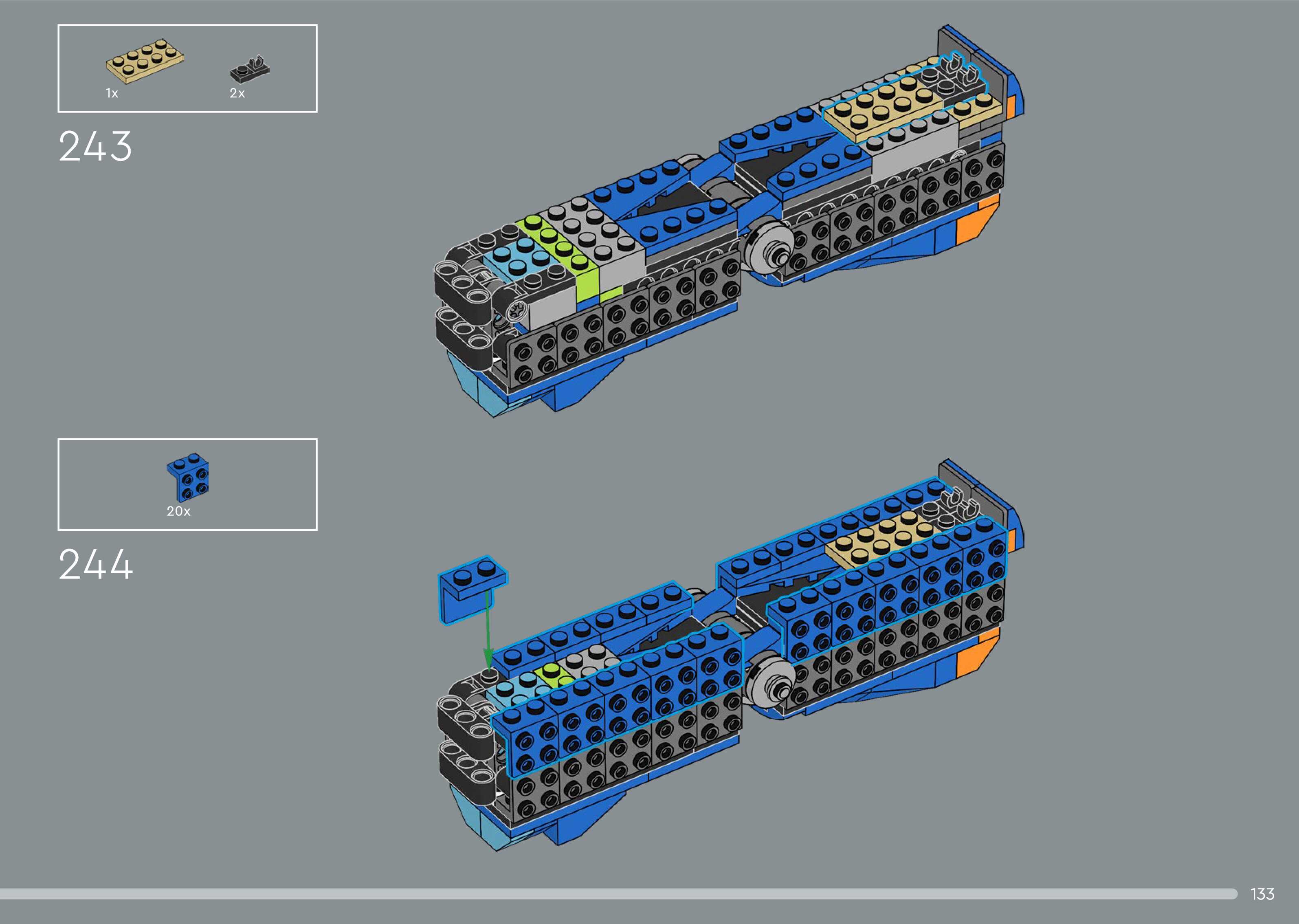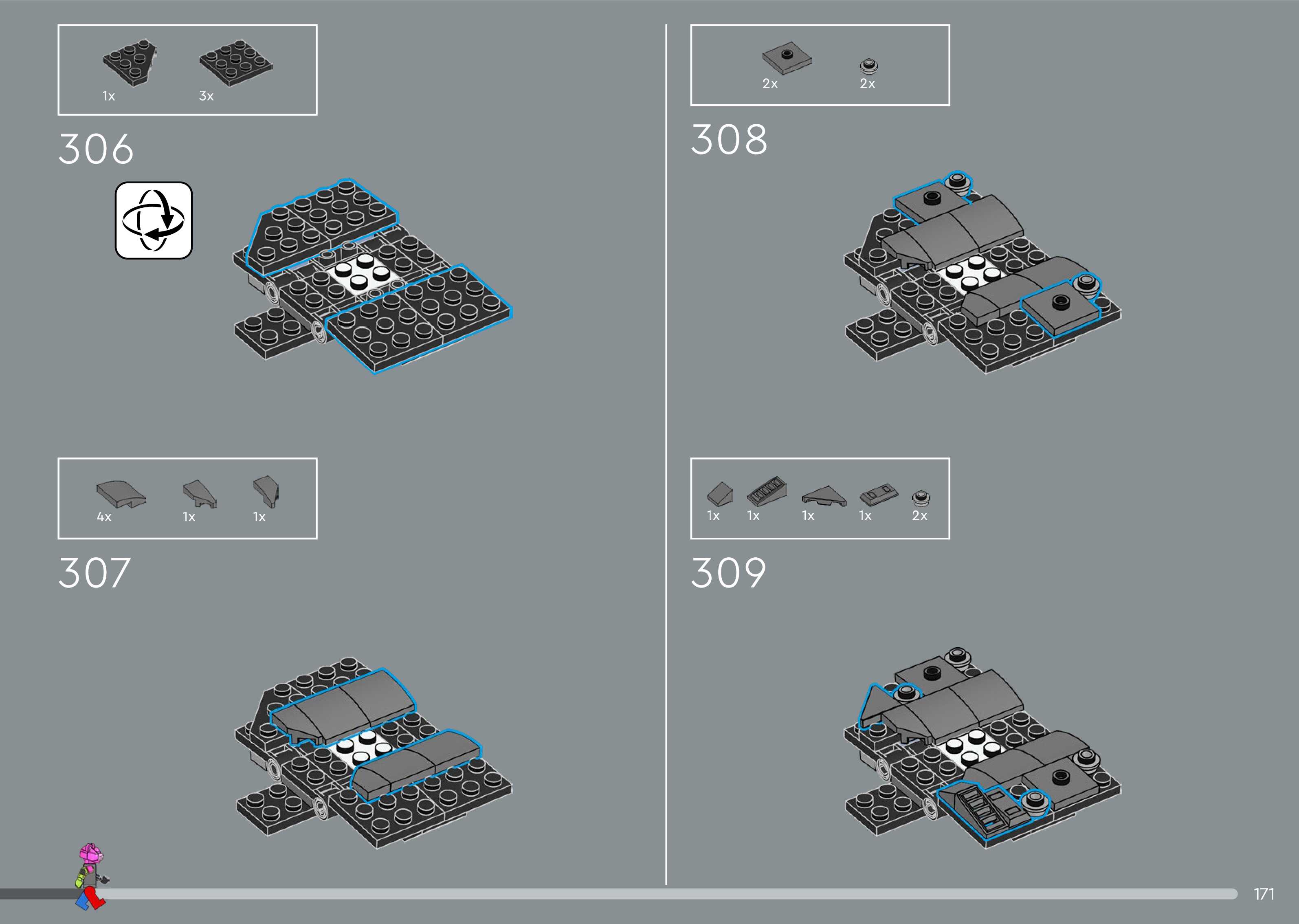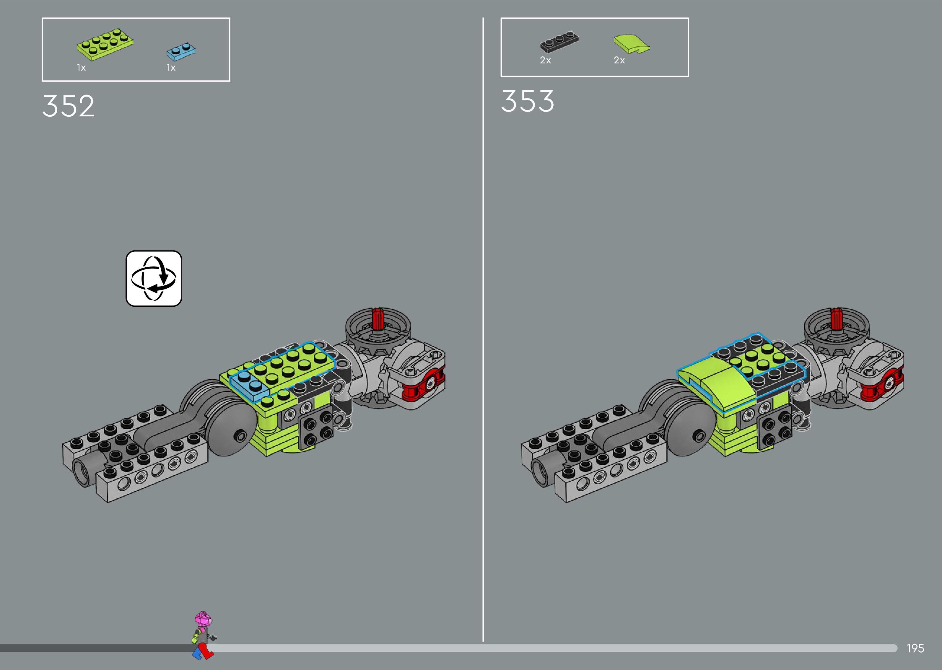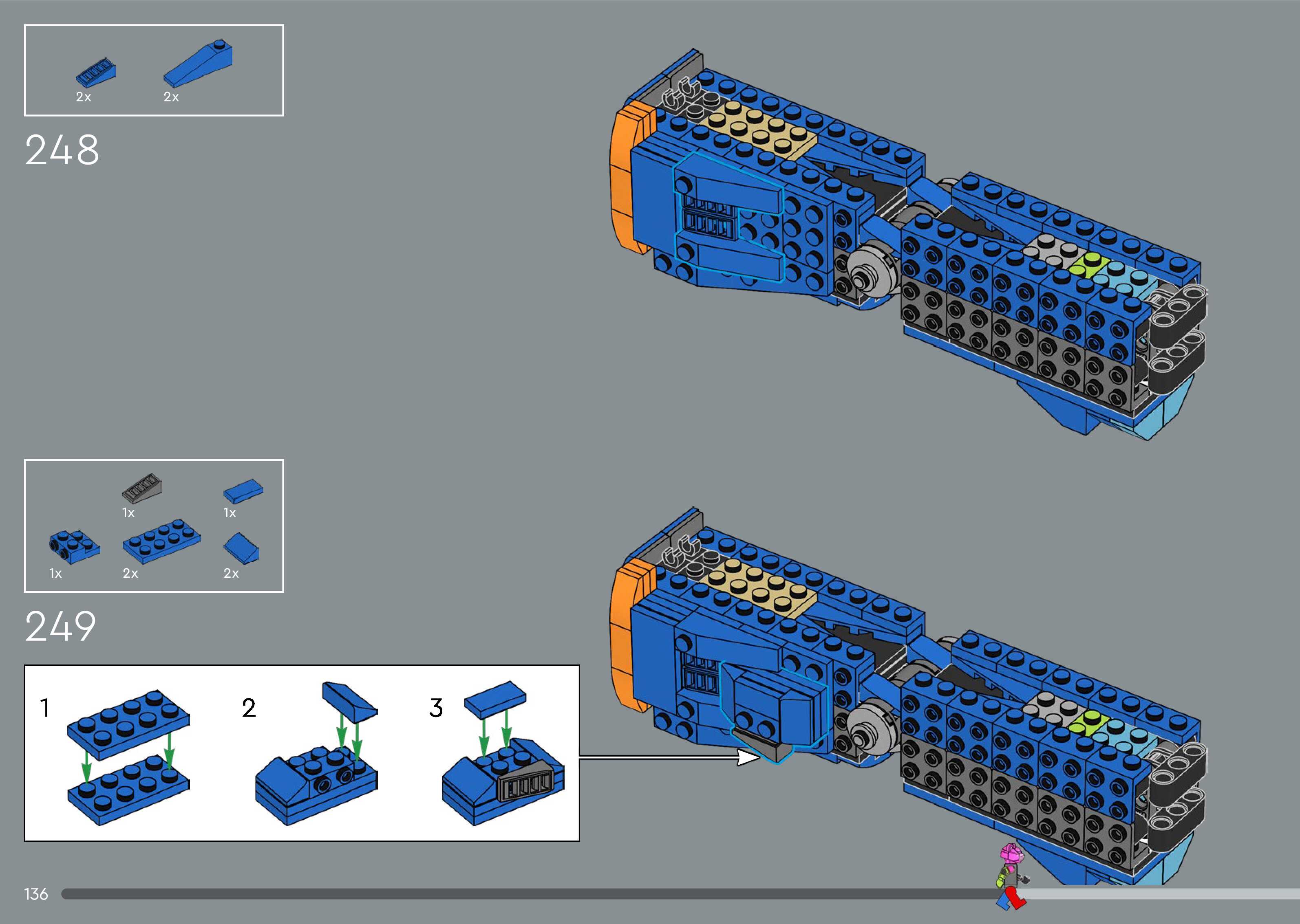 The assembly guide is prepared in a very understandable way for children and adult LEGO enthusiasts. A total of 324 picture galleries are shown, explaining the step-by-step construction stages for 1 different structures.