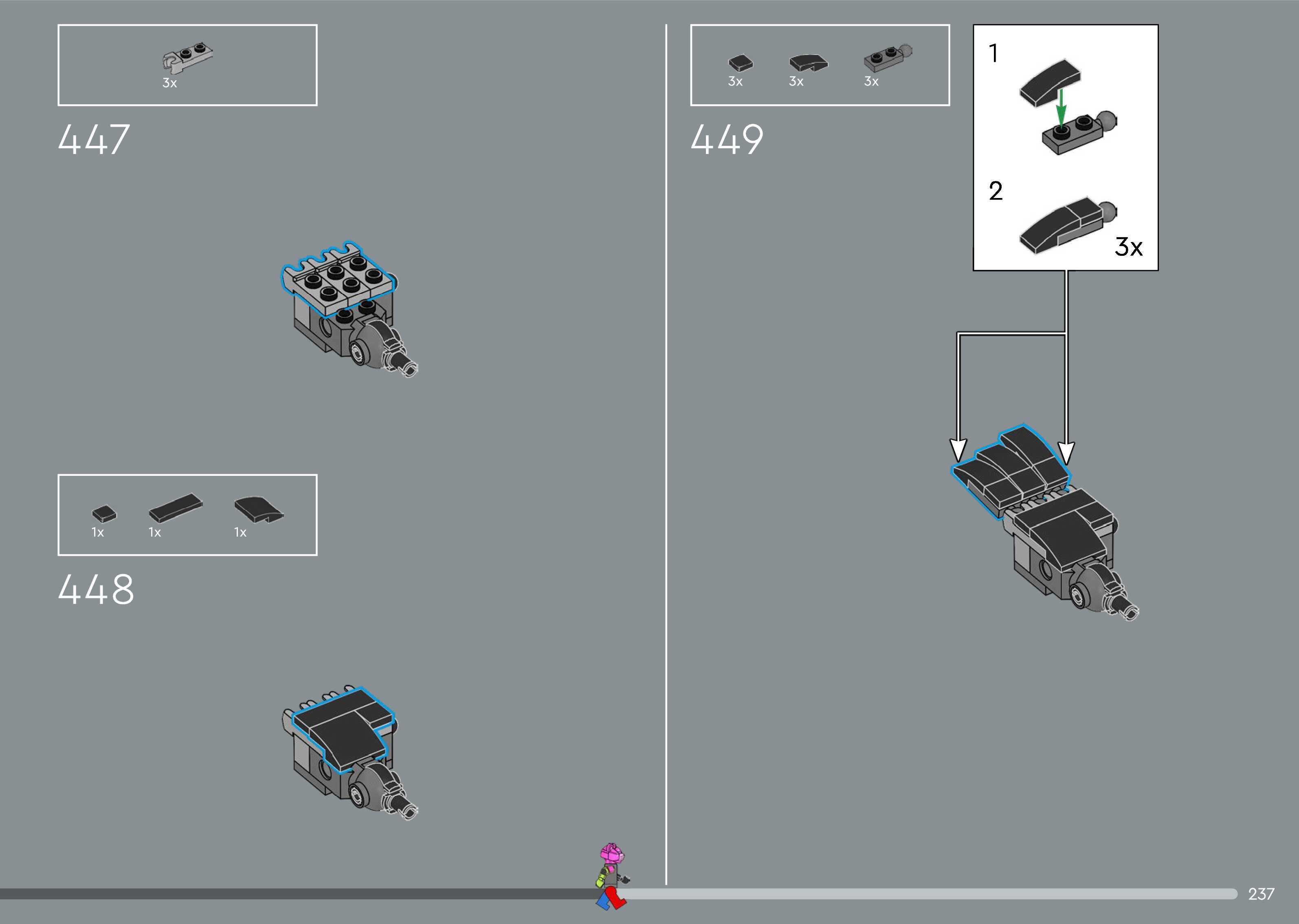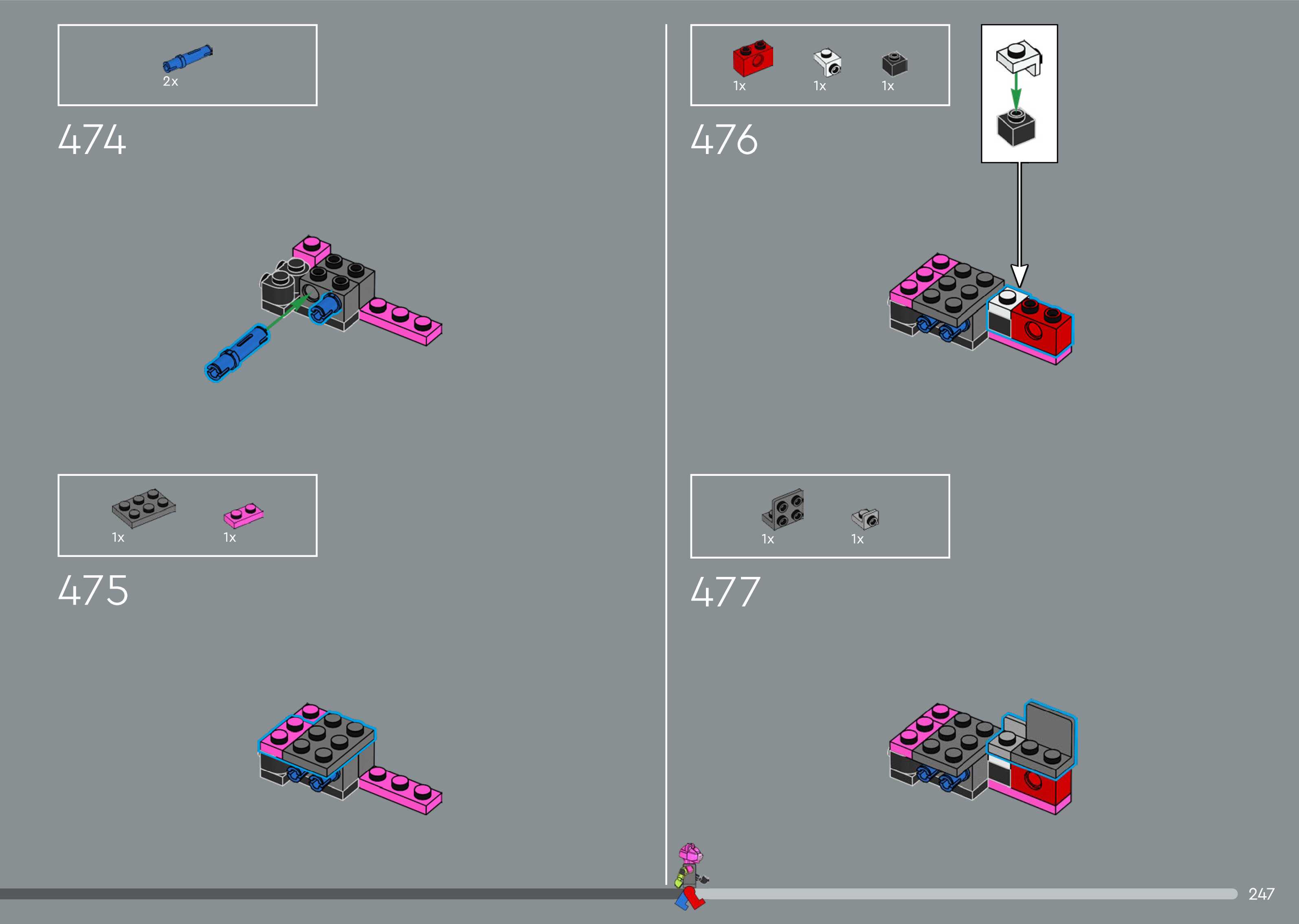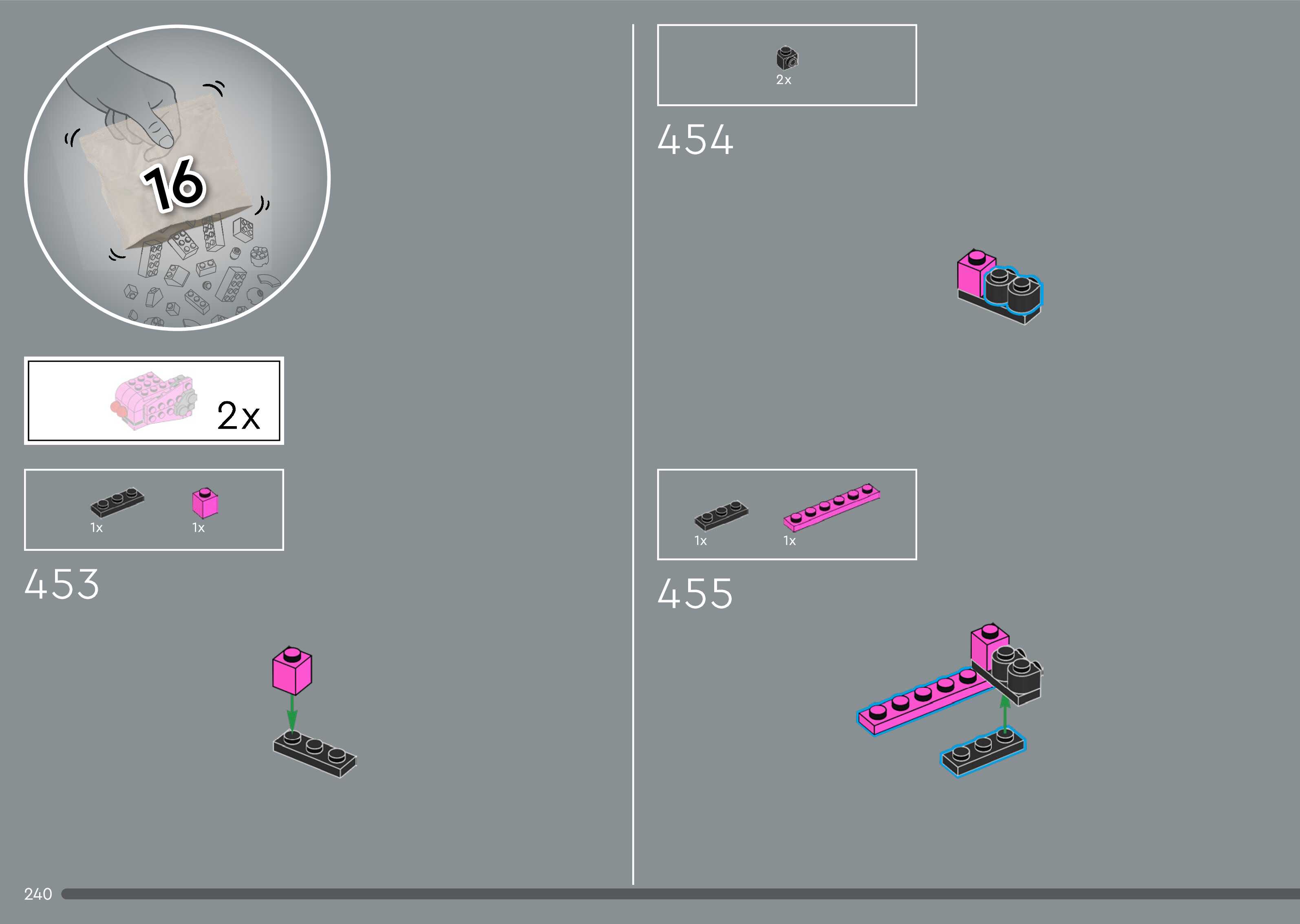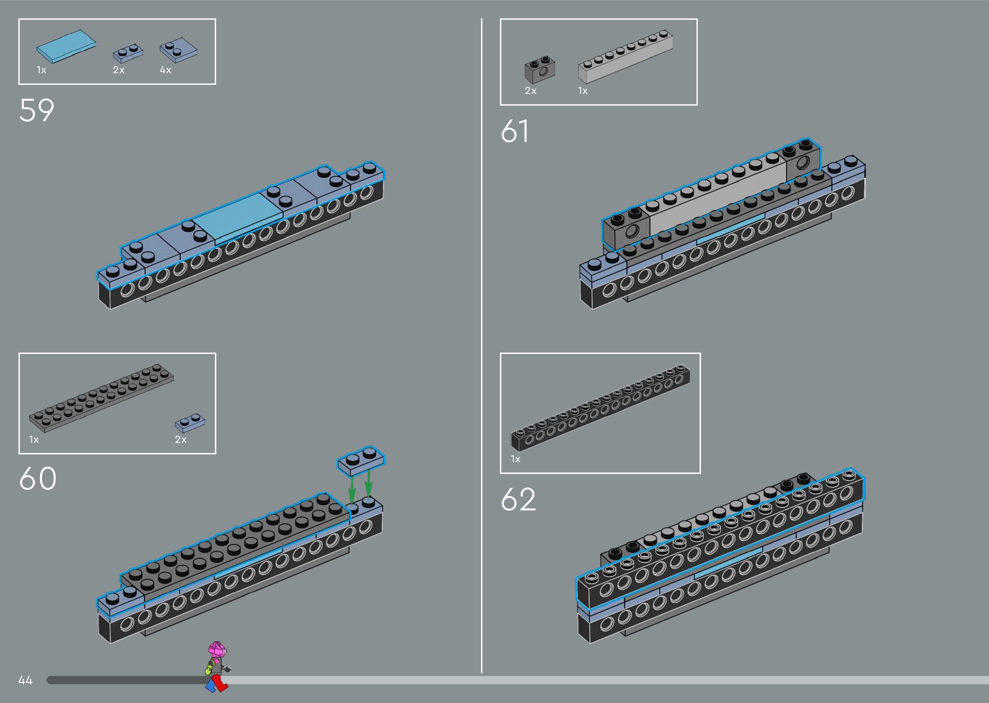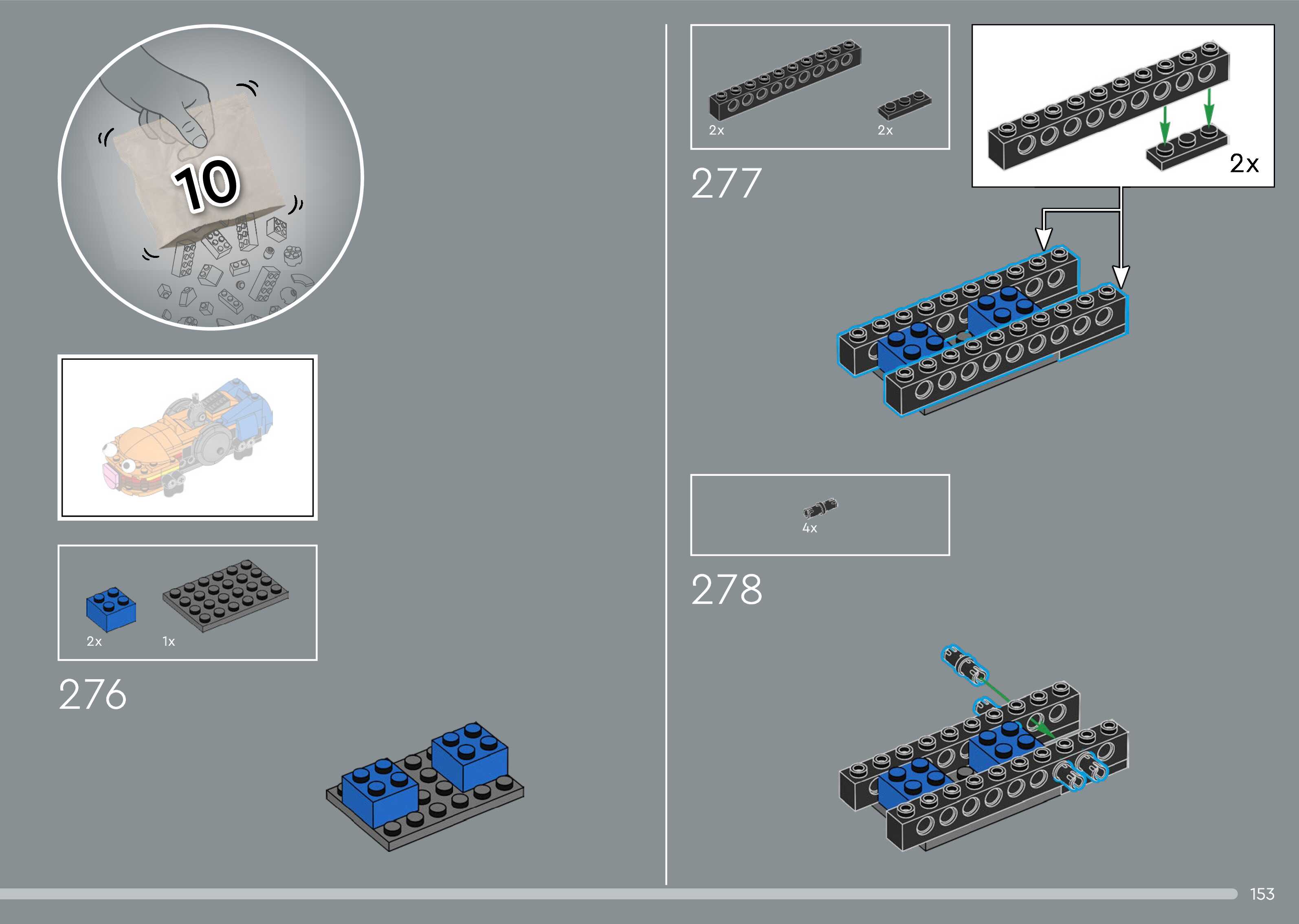 The assembly guide is prepared in a very understandable way for children and adult LEGO enthusiasts. A total of 324 picture galleries are shown, explaining the step-by-step construction stages for 1 different structures.