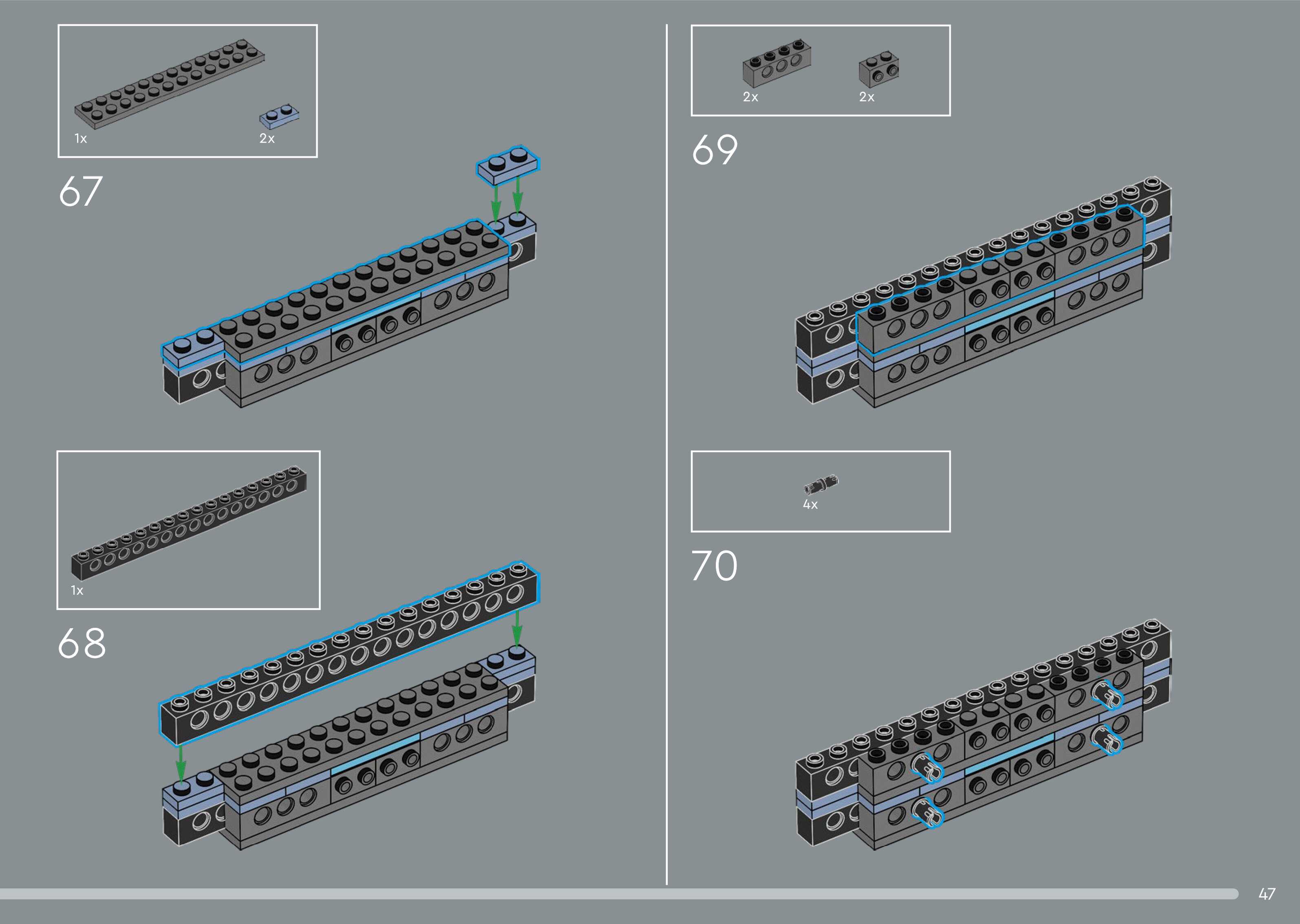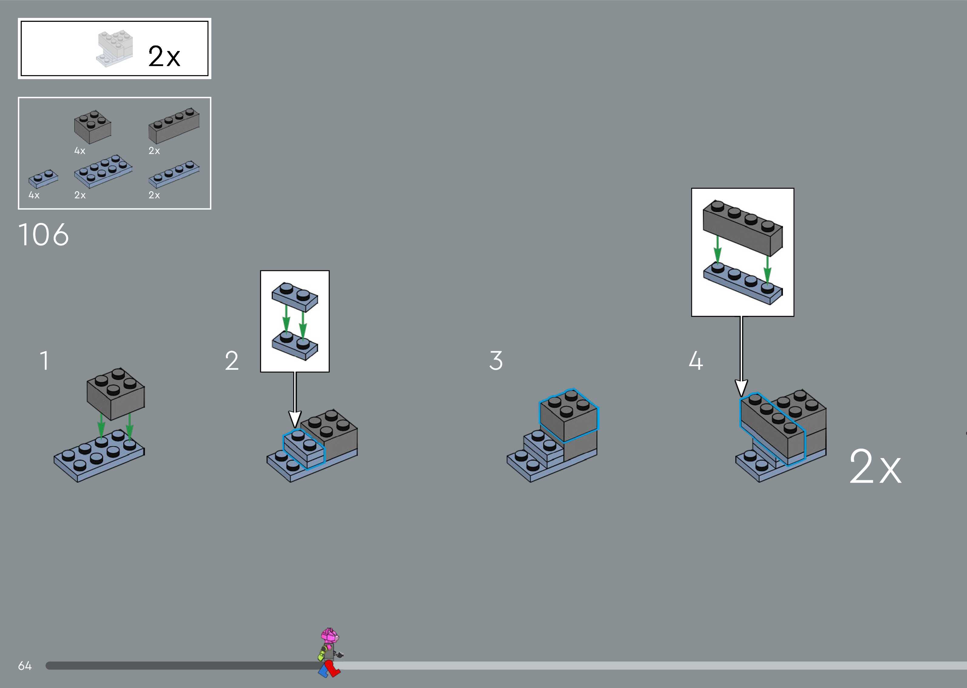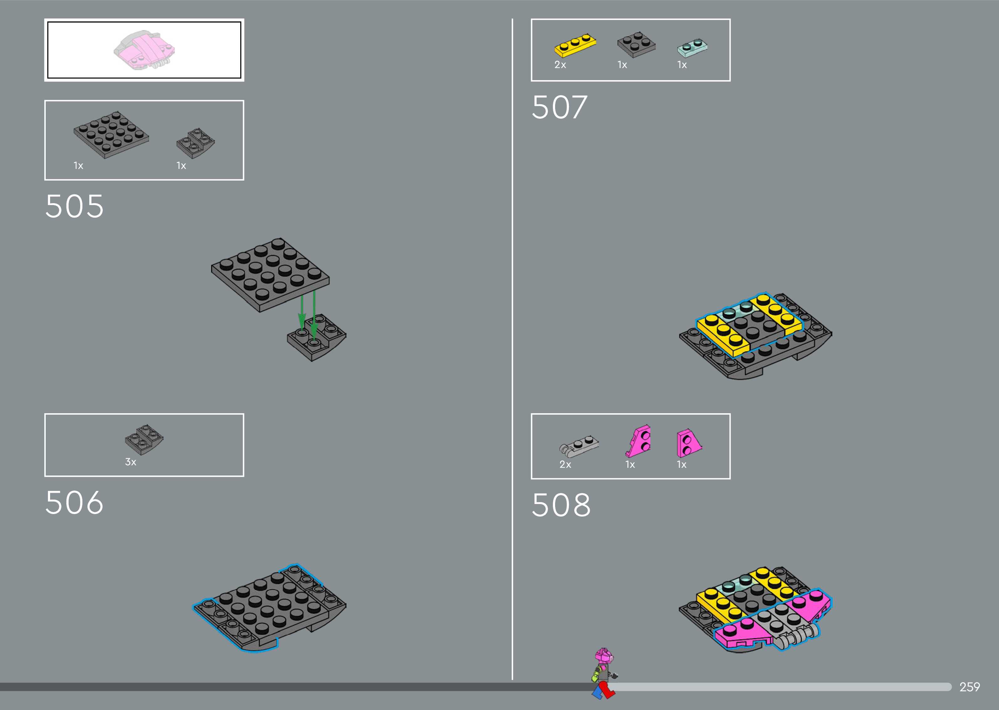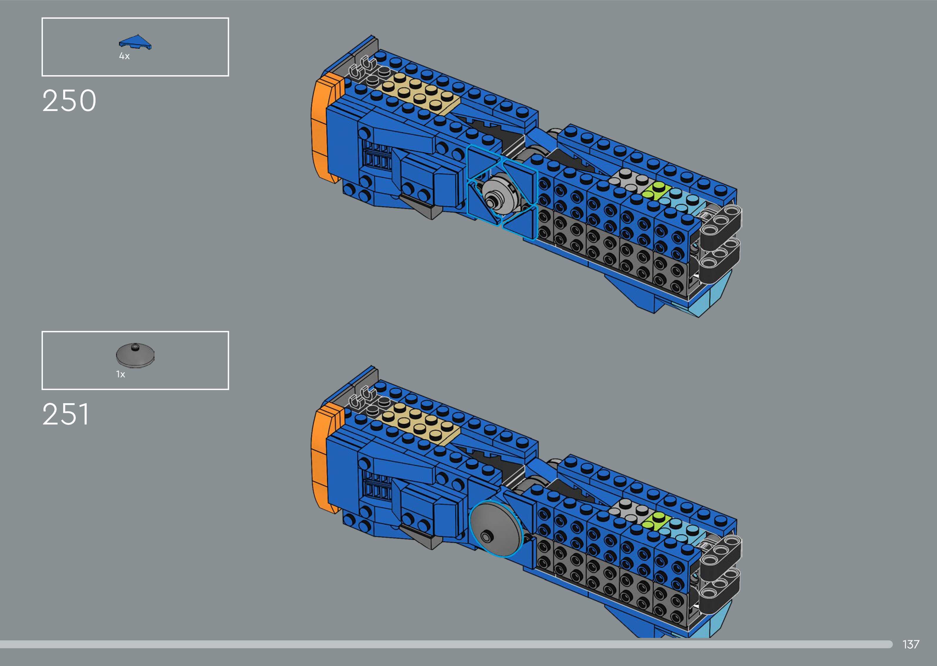 The assembly guide is prepared in a very understandable way for children and adult LEGO enthusiasts. A total of 324 picture galleries are shown, explaining the step-by-step construction stages for 1 different structures.