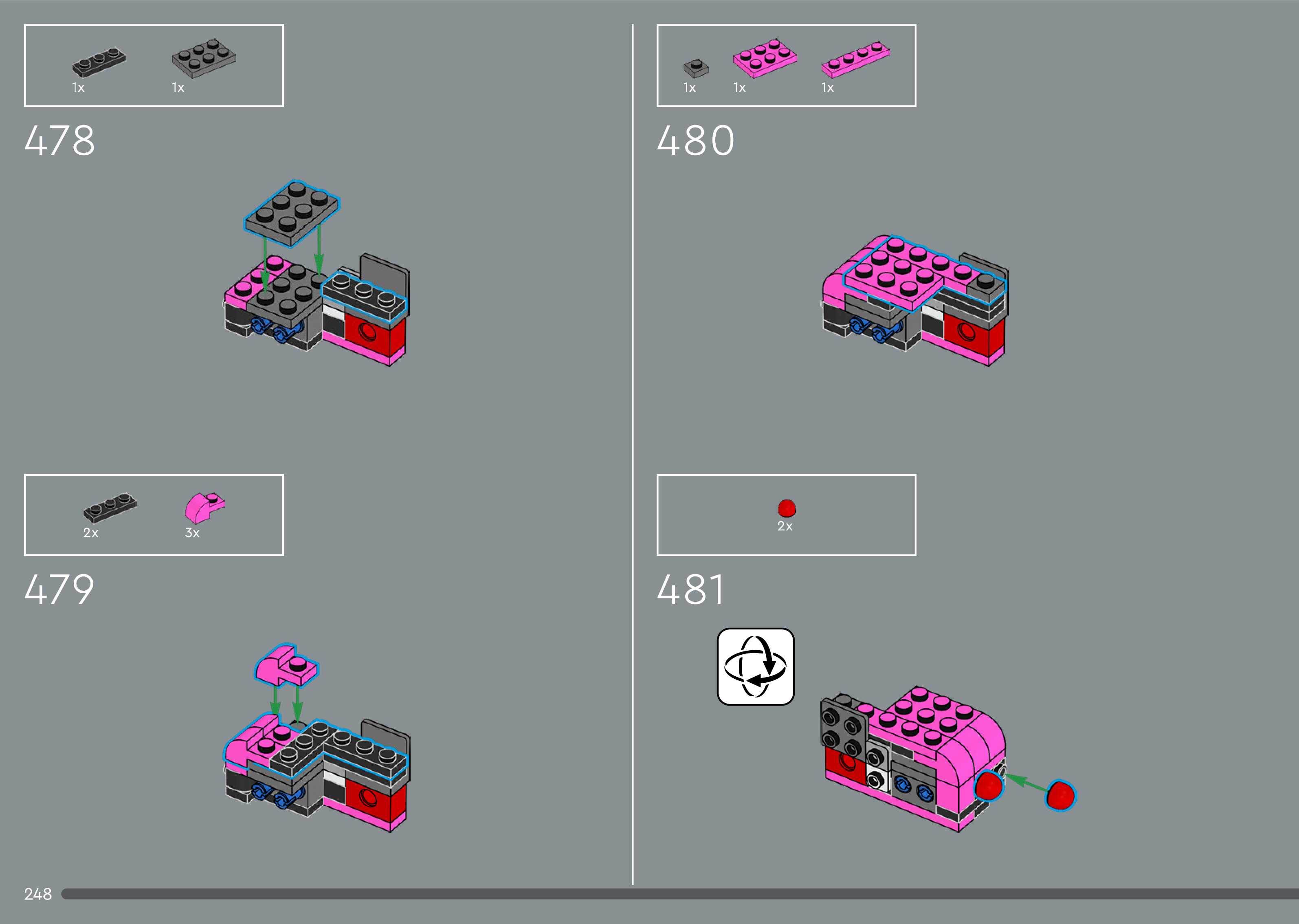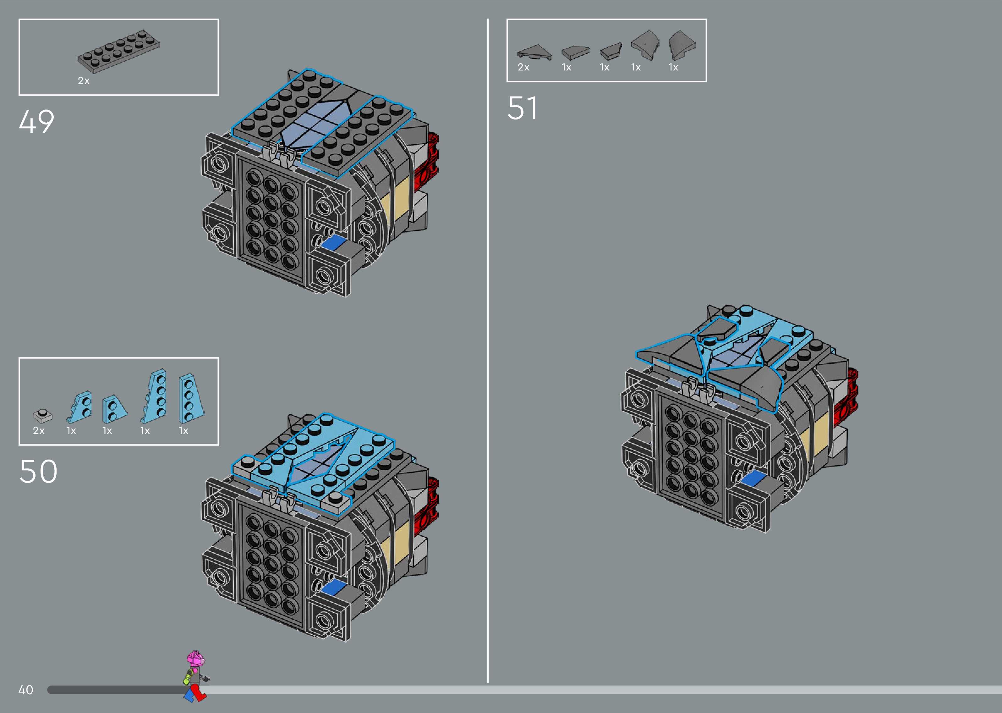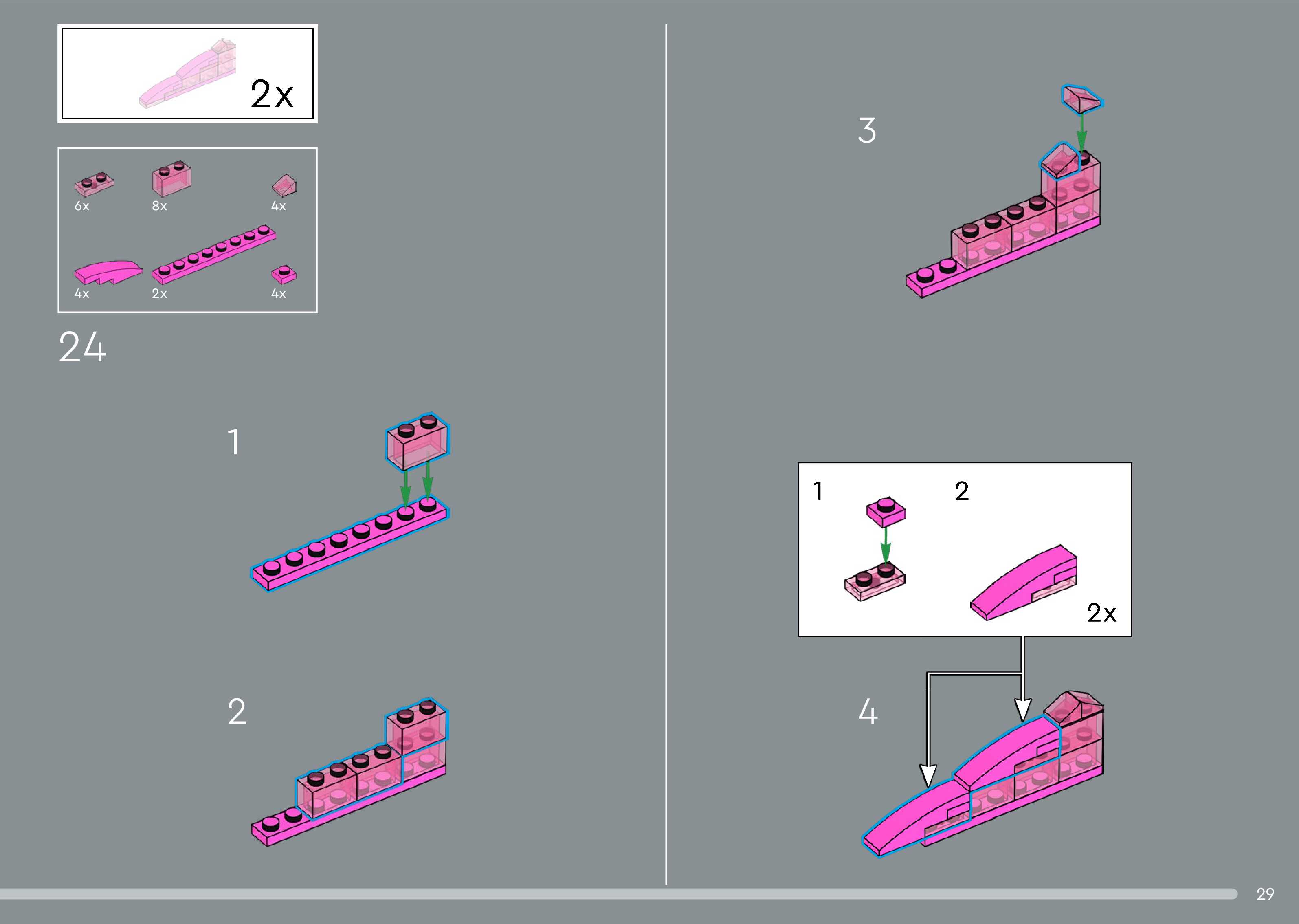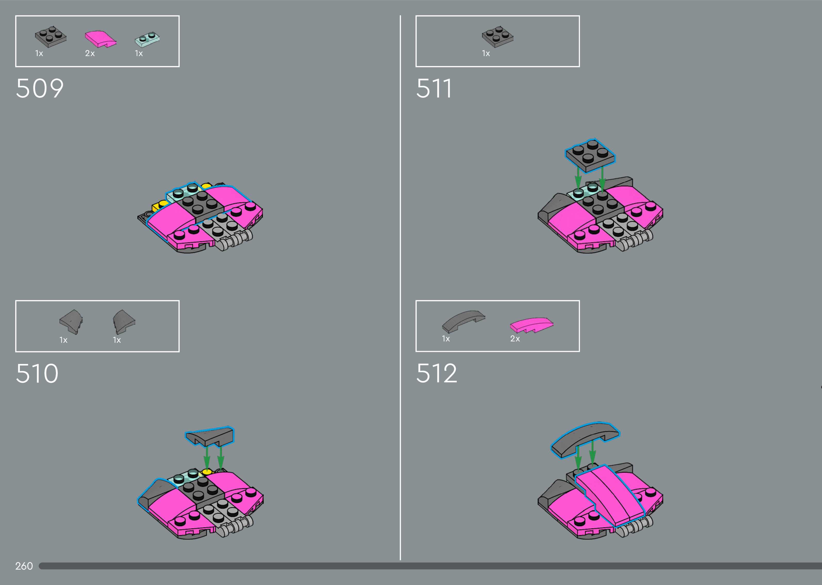 The assembly guide is prepared in a very understandable way for children and adult LEGO enthusiasts. A total of 324 picture galleries are shown, explaining the step-by-step construction stages for 1 different structures.