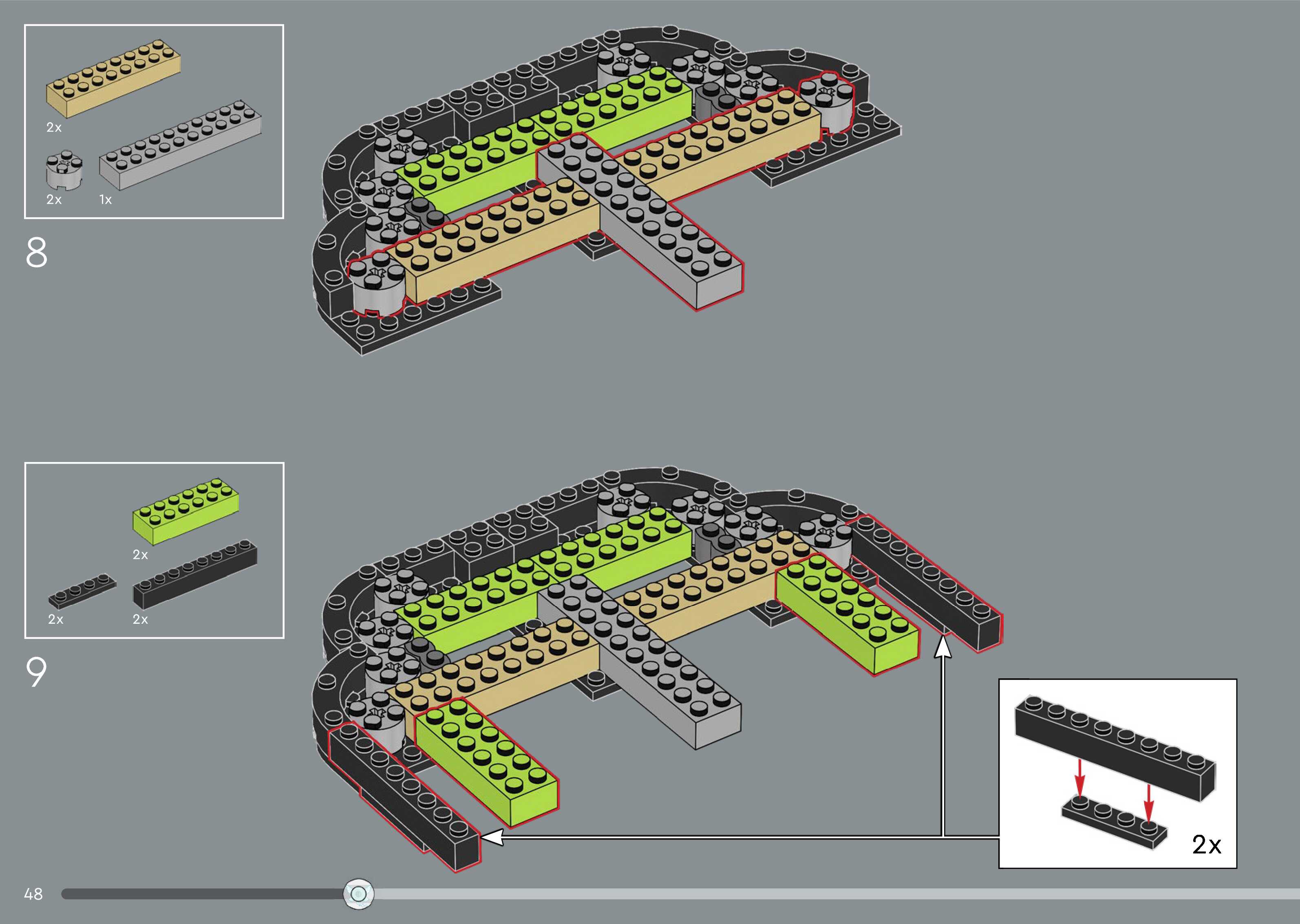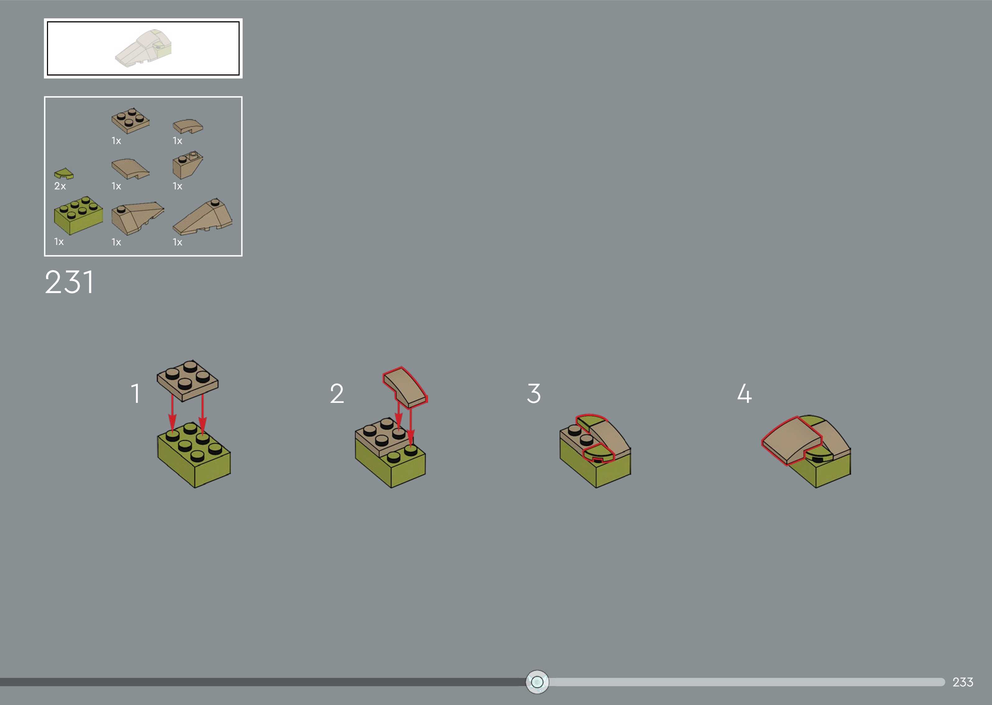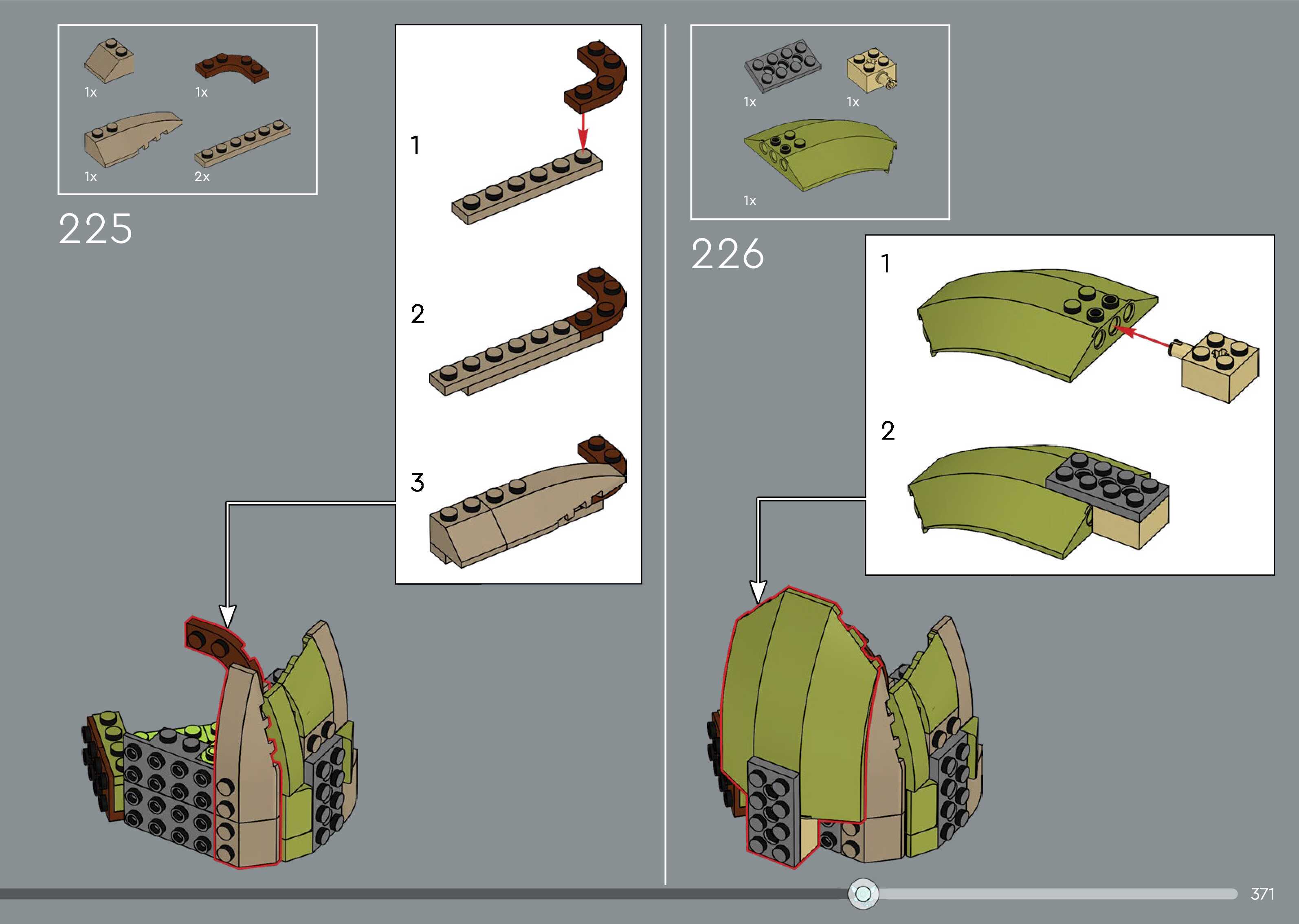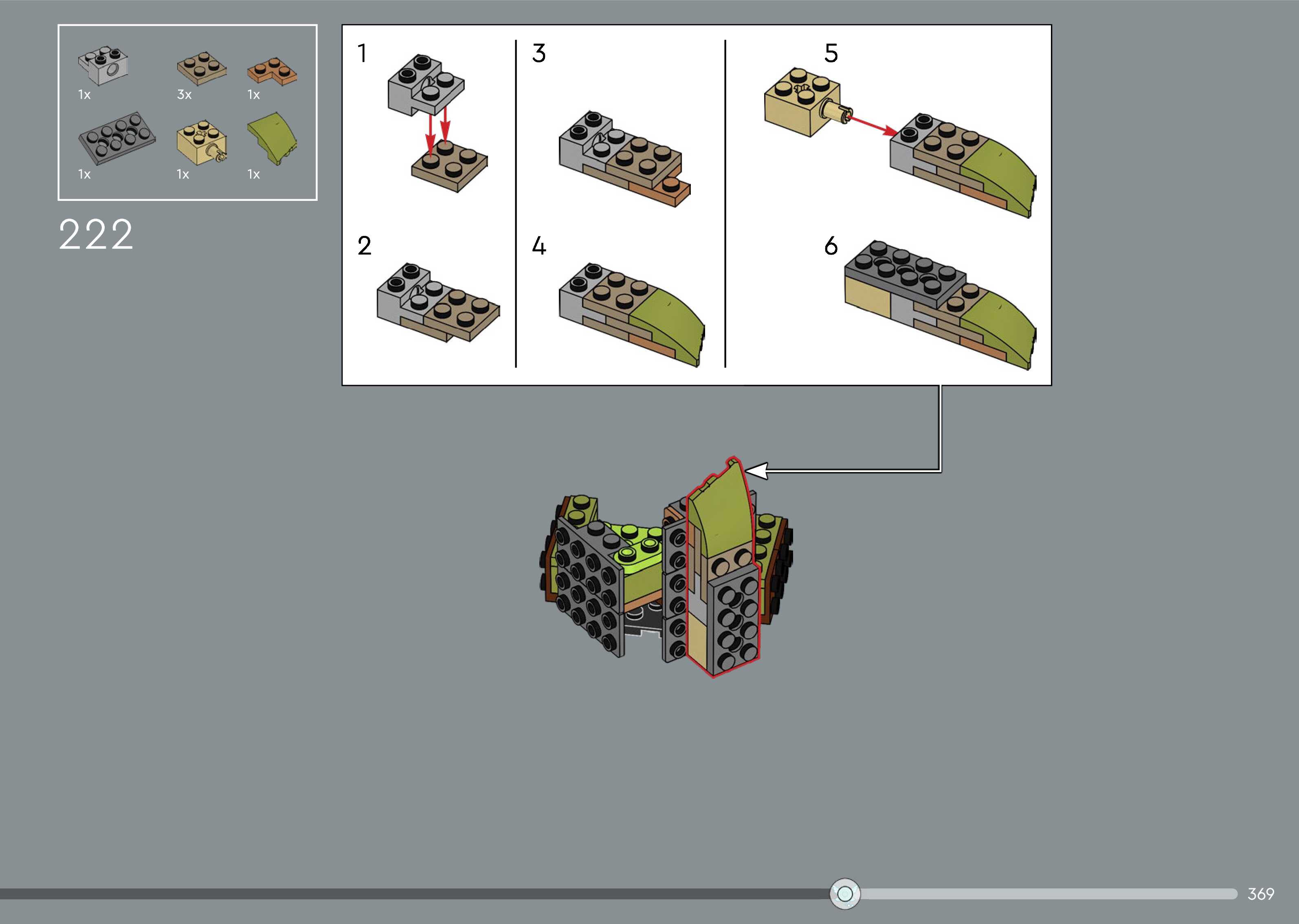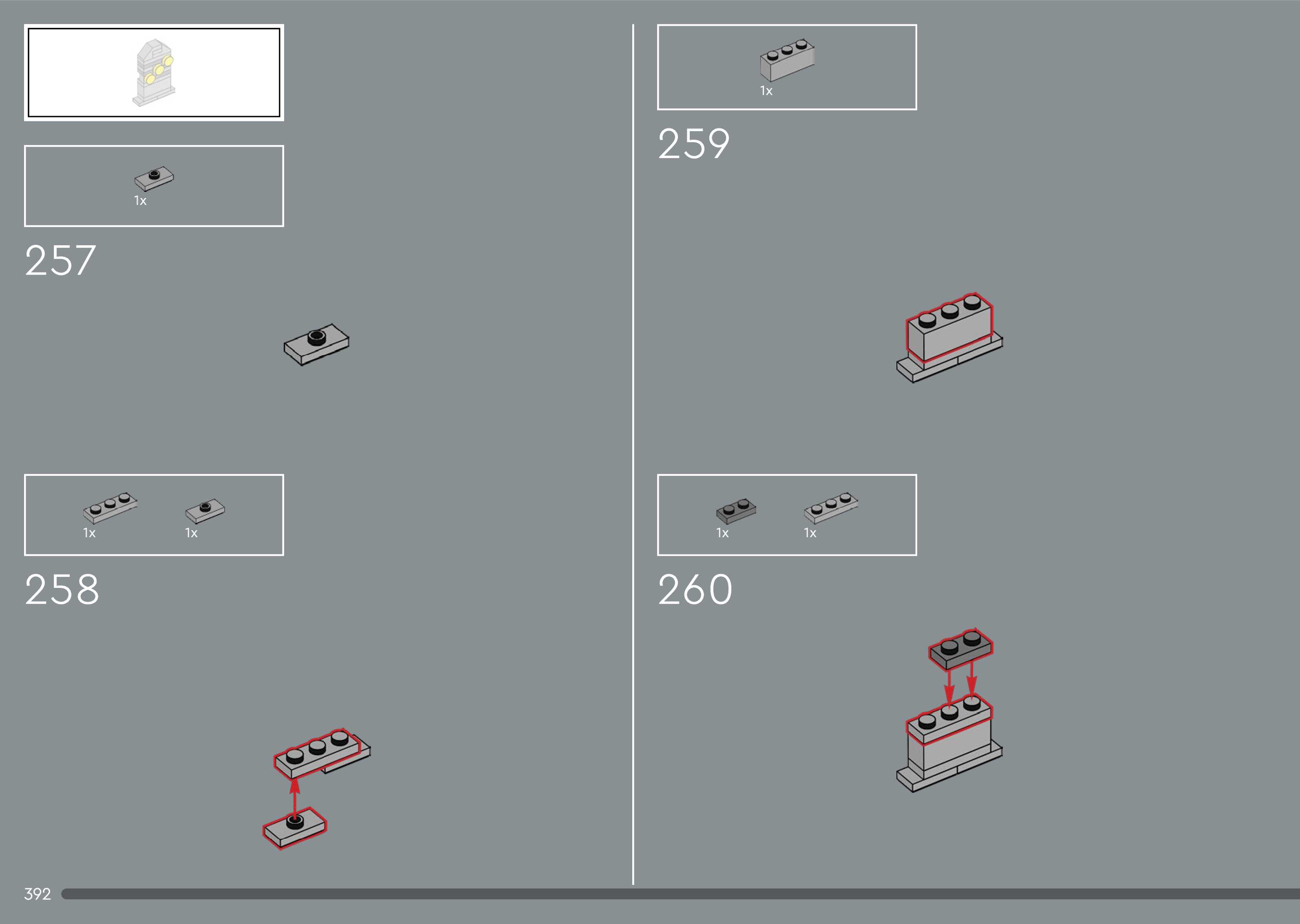 The assembly guide is prepared in a very understandable way for children and adult LEGO enthusiasts. A total of 402 picture galleries are shown, explaining the step-by-step construction stages for 1 different structures.