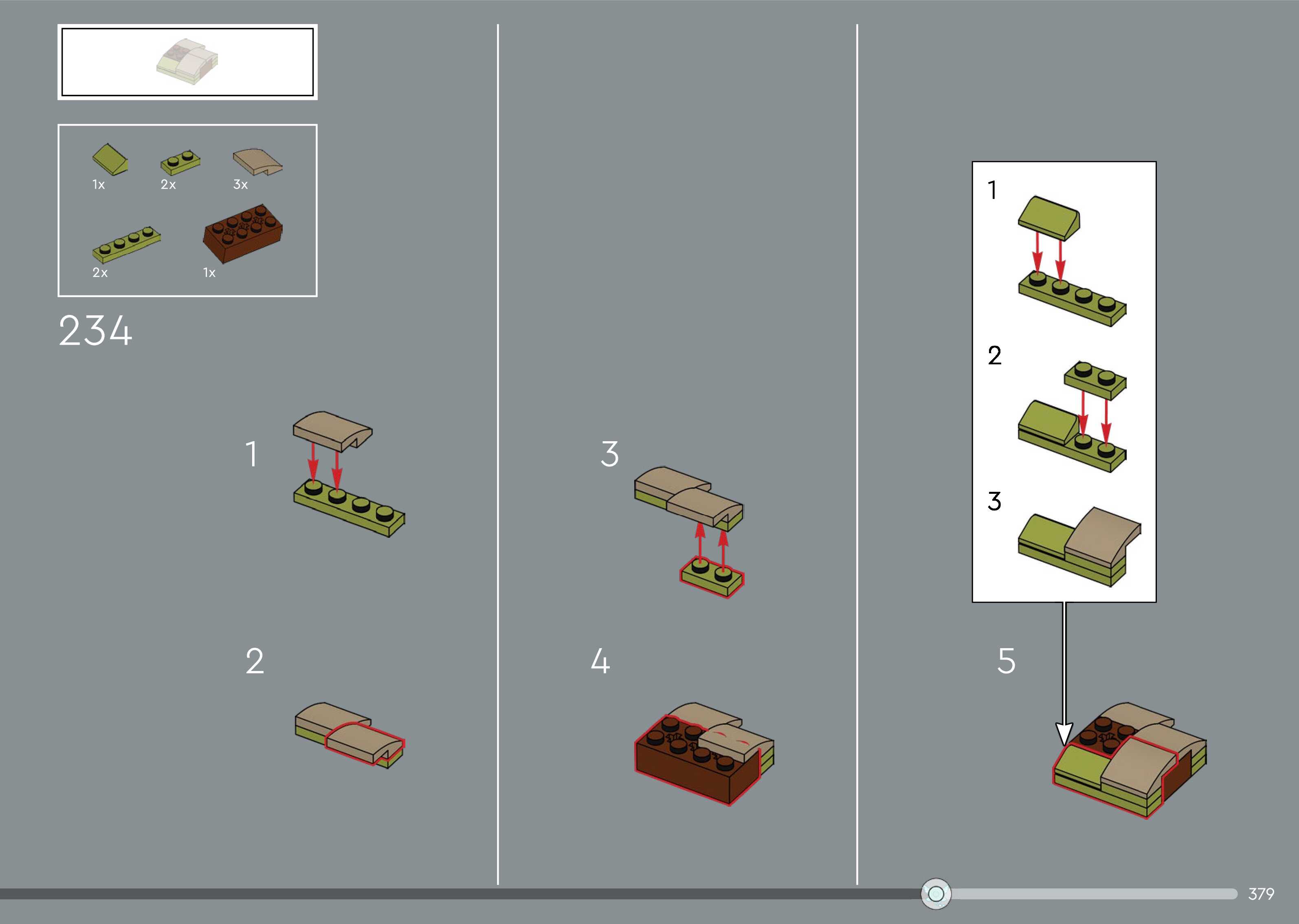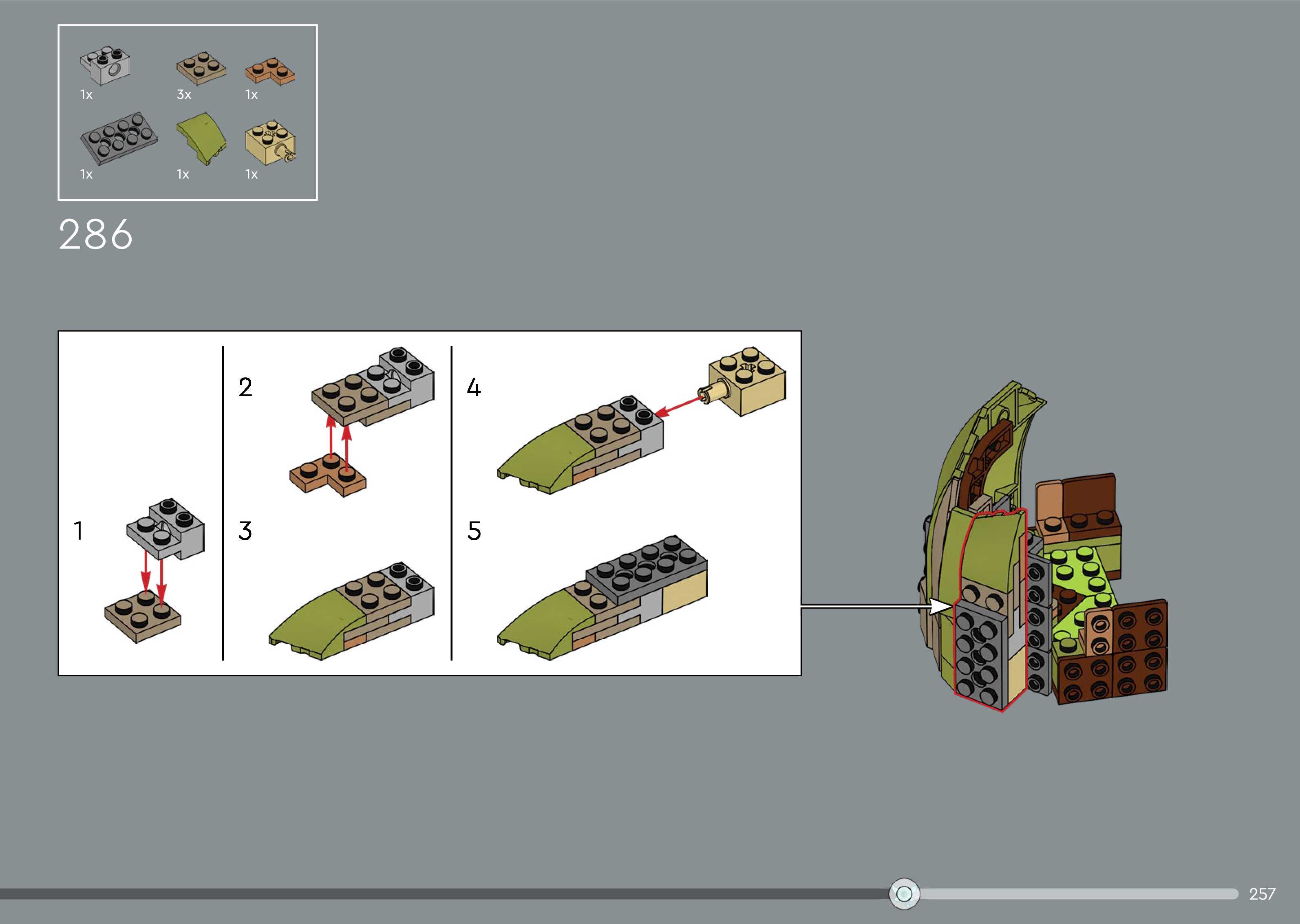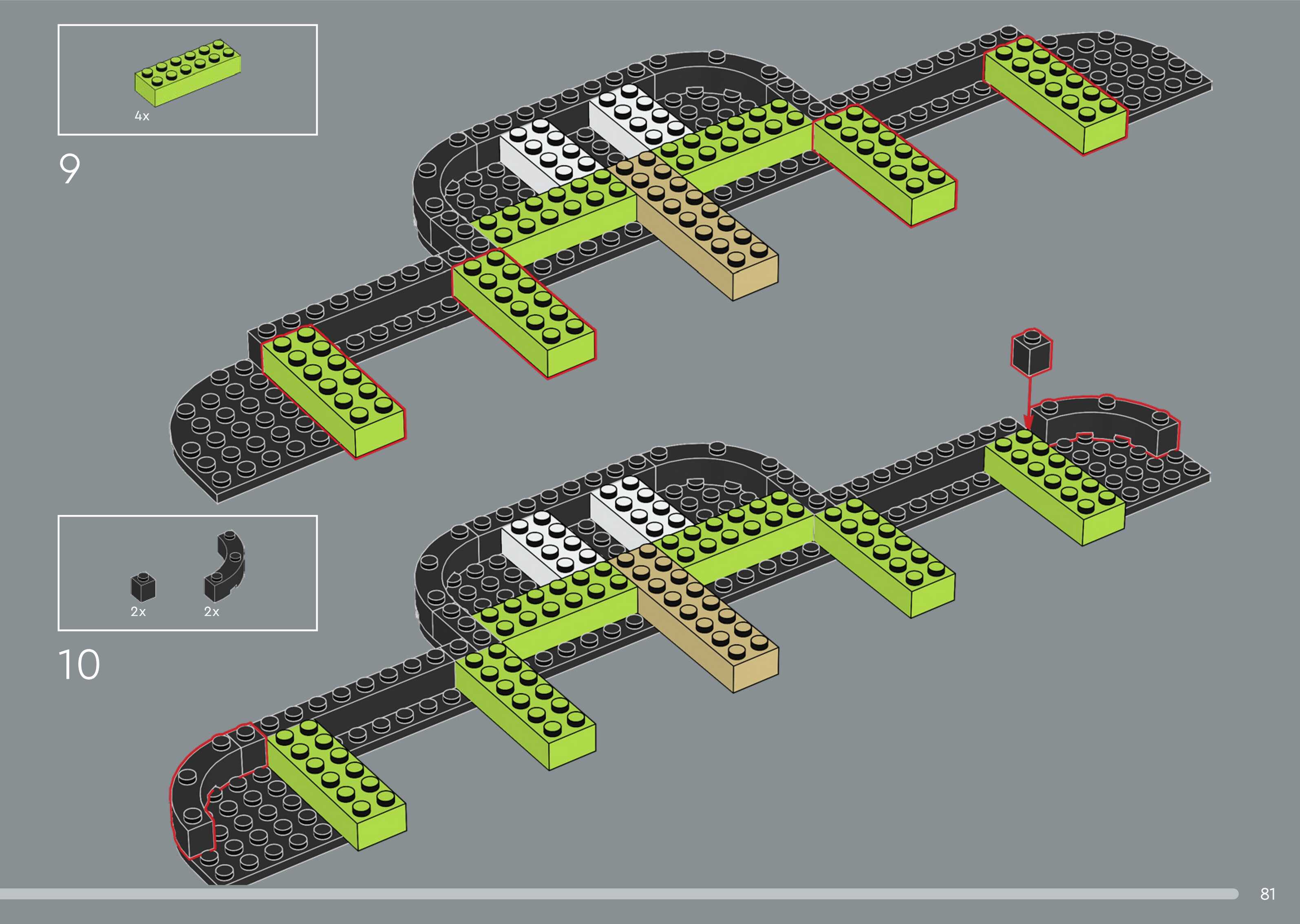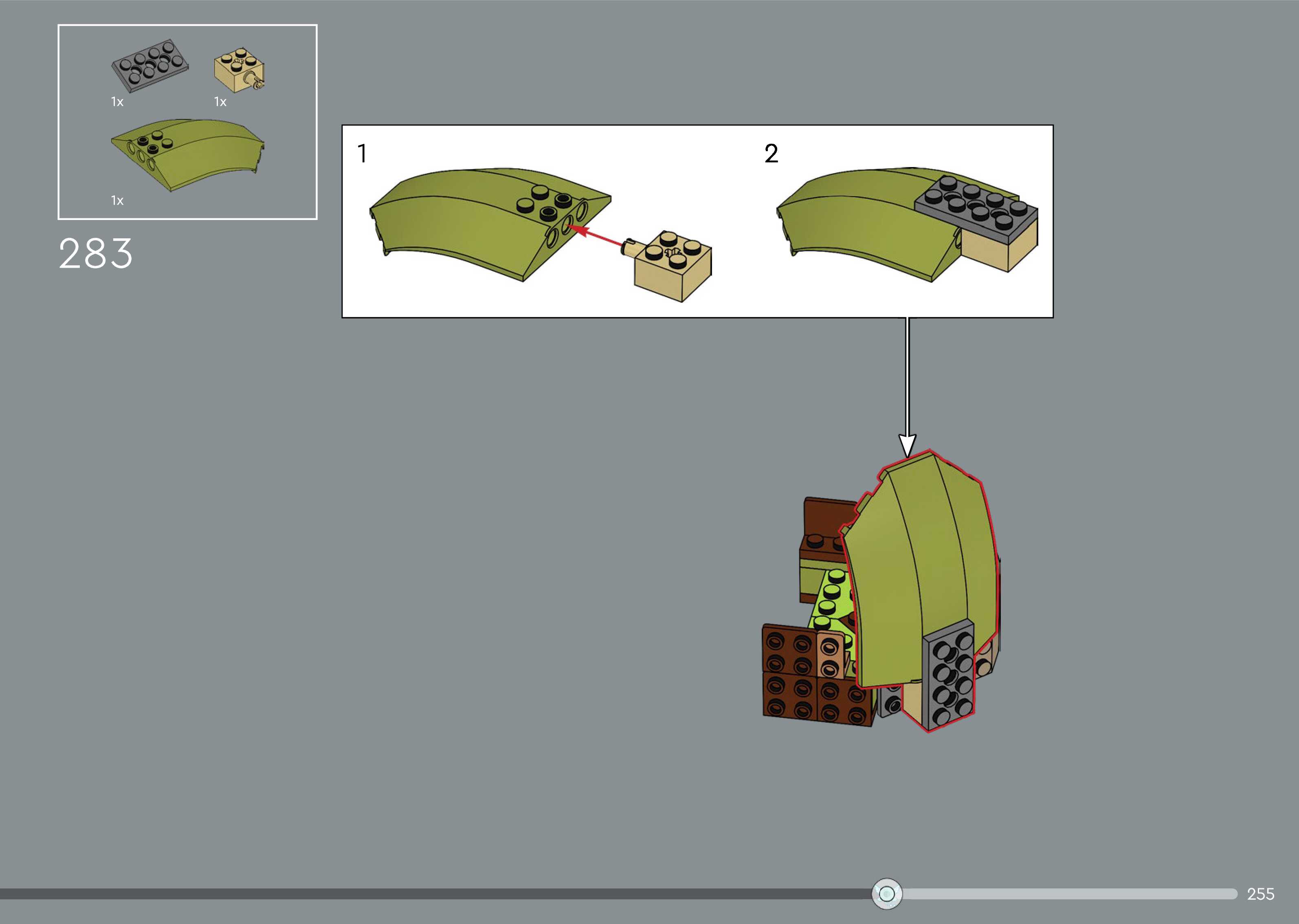 The assembly guide is prepared in a very understandable way for children and adult LEGO enthusiasts. A total of 402 picture galleries are shown, explaining the step-by-step construction stages for 1 different structures.