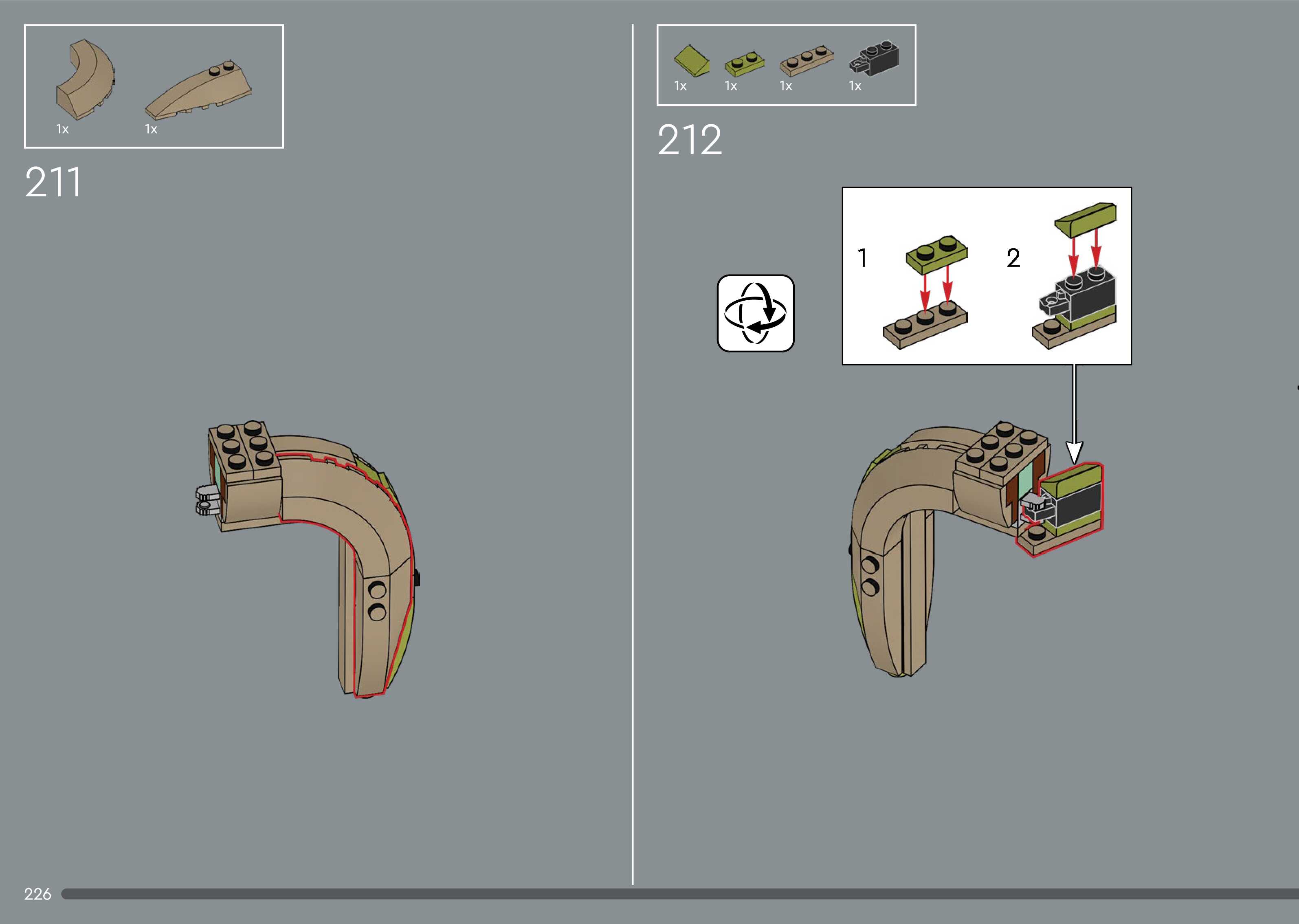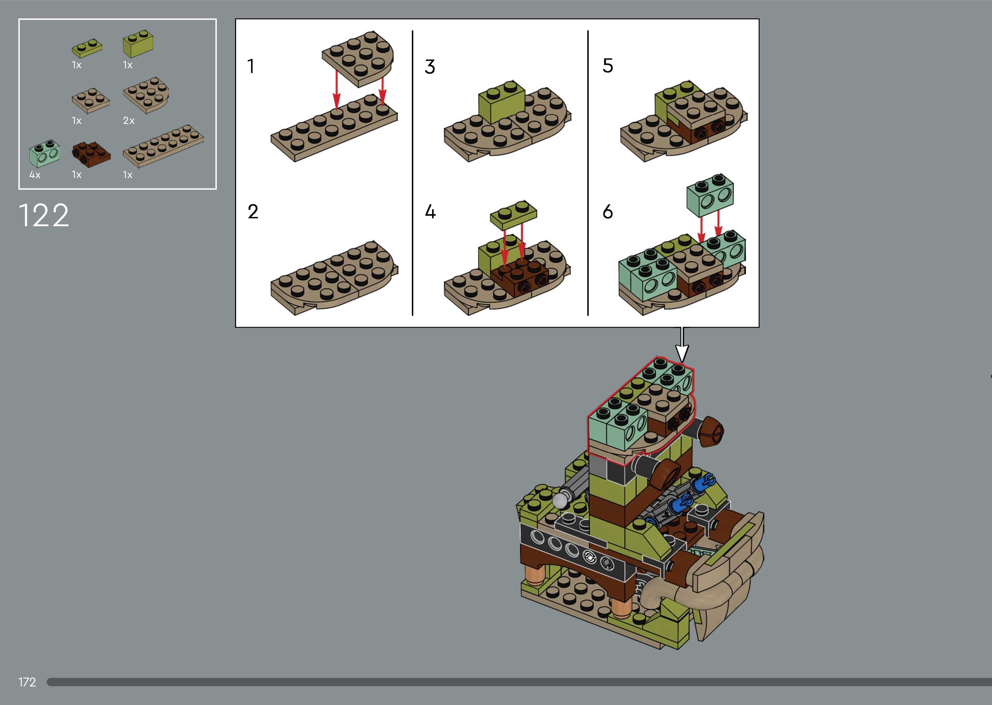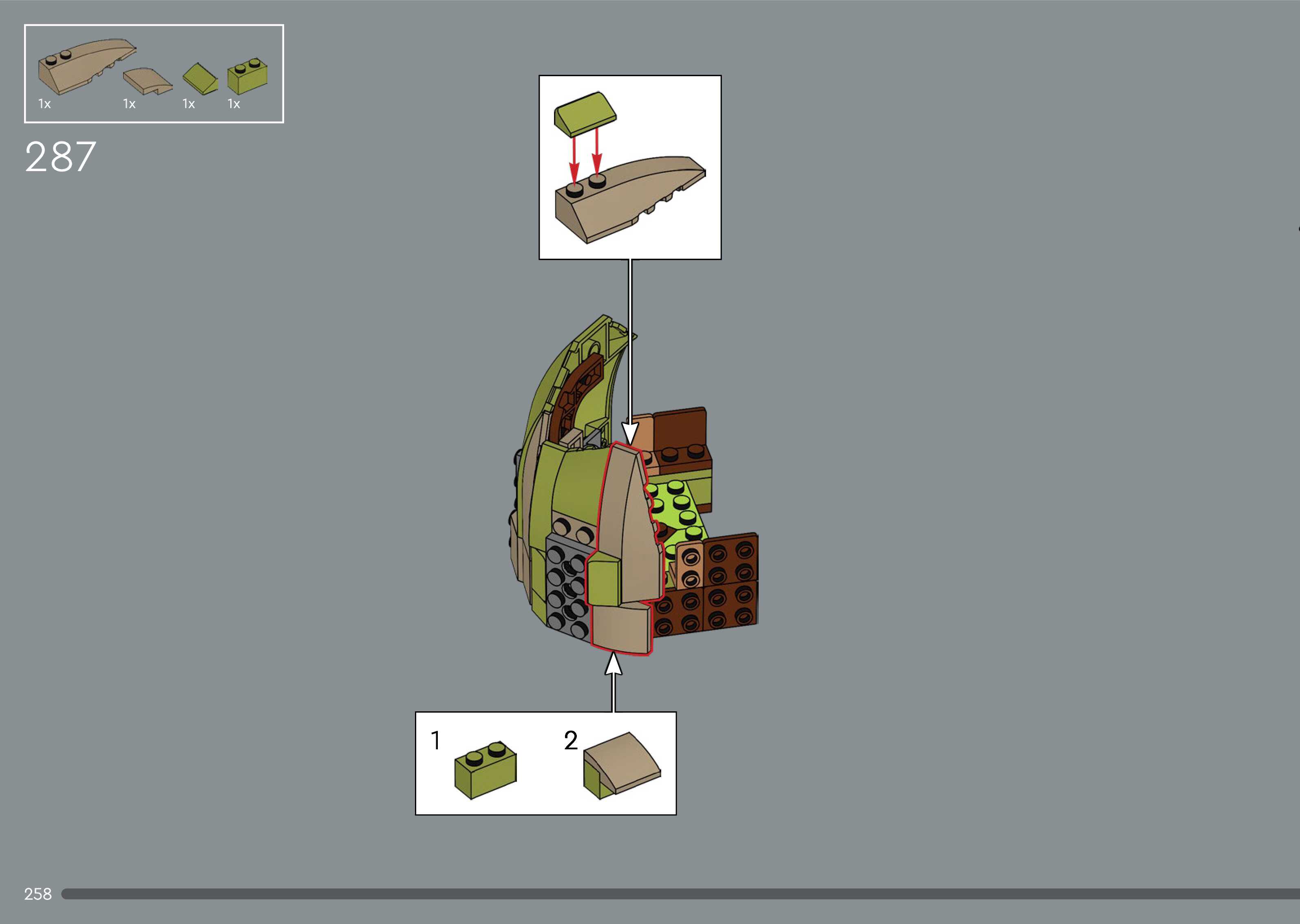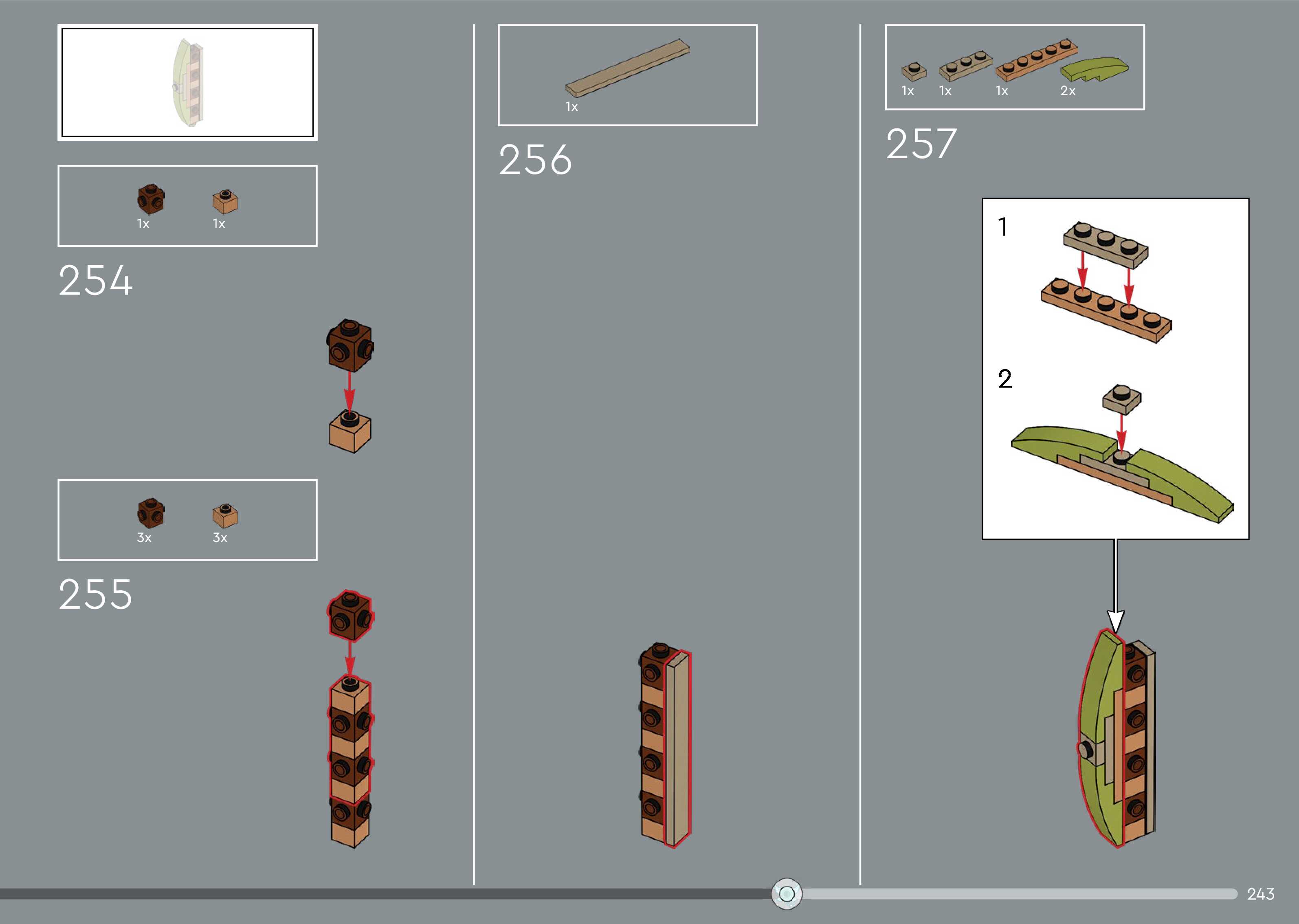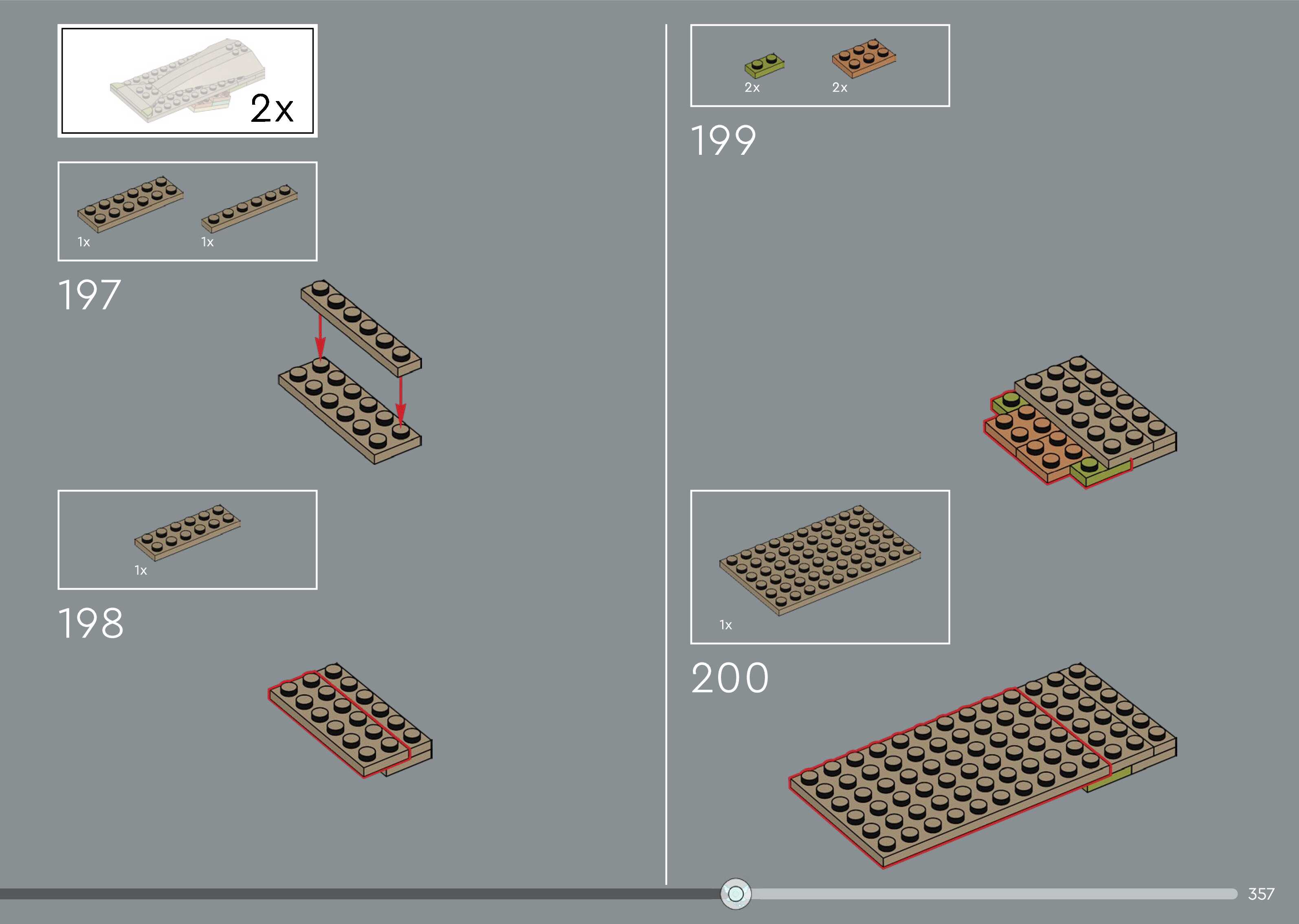 The assembly guide is prepared in a very understandable way for children and adult LEGO enthusiasts. A total of 402 picture galleries are shown, explaining the step-by-step construction stages for 1 different structures.
