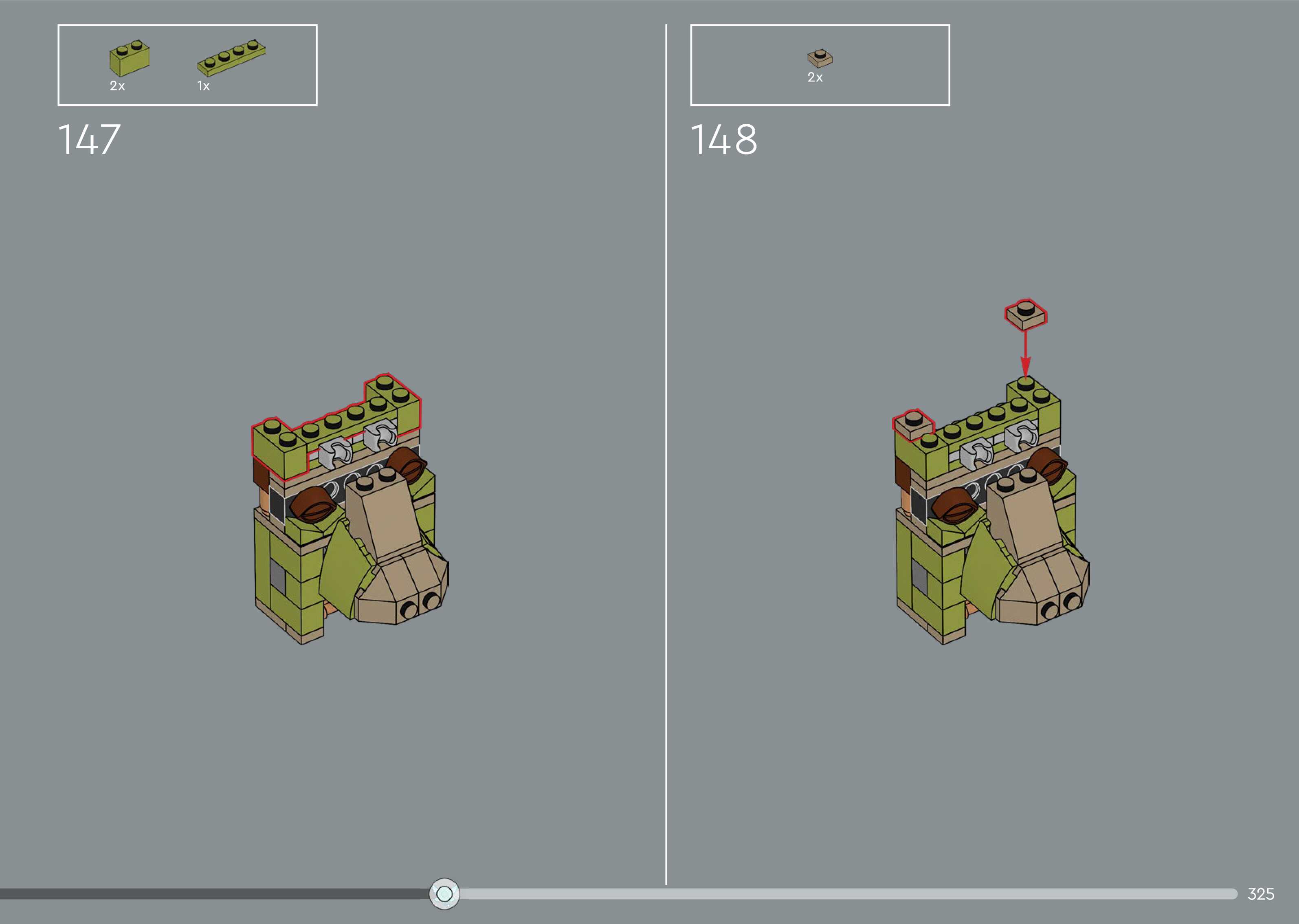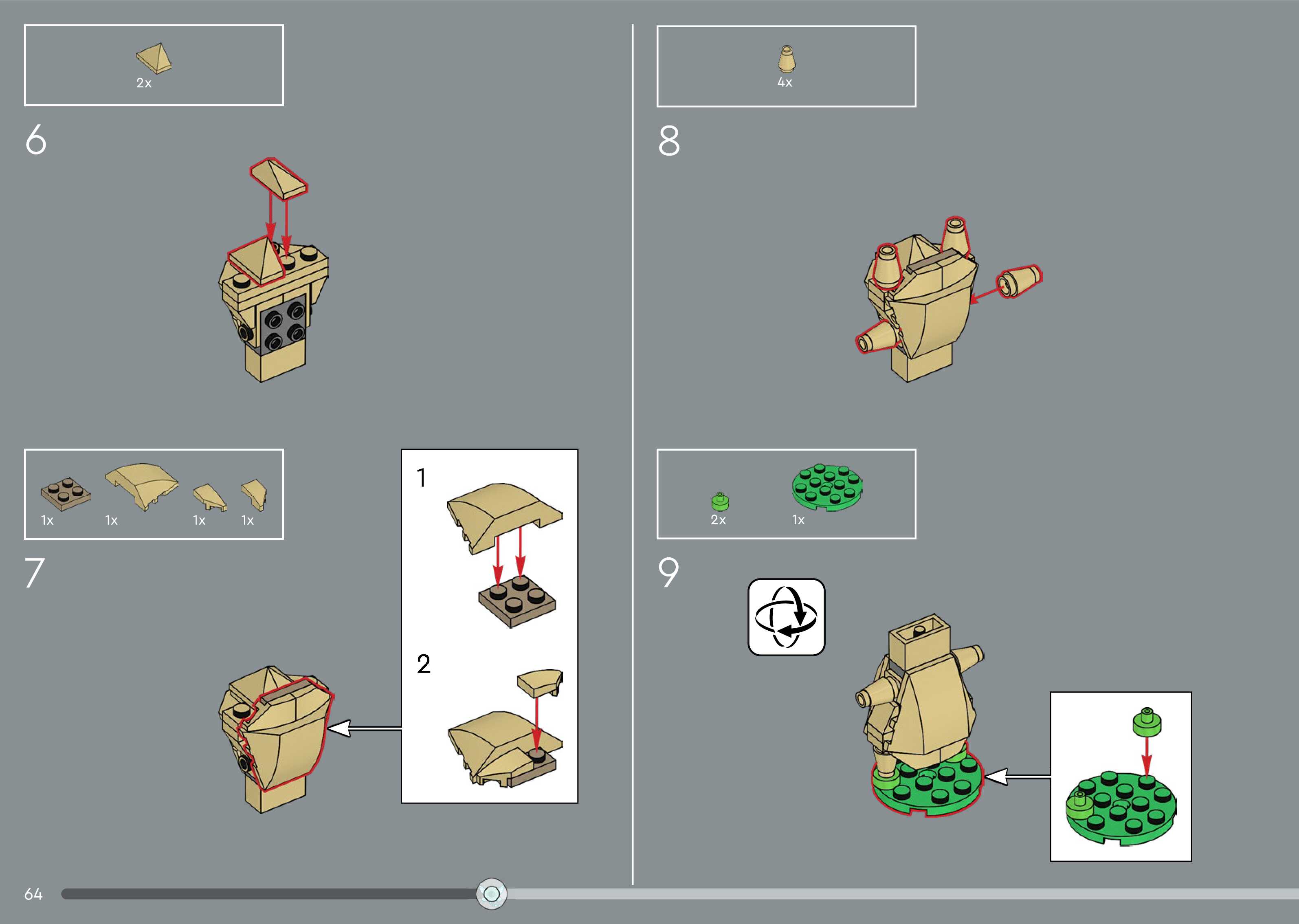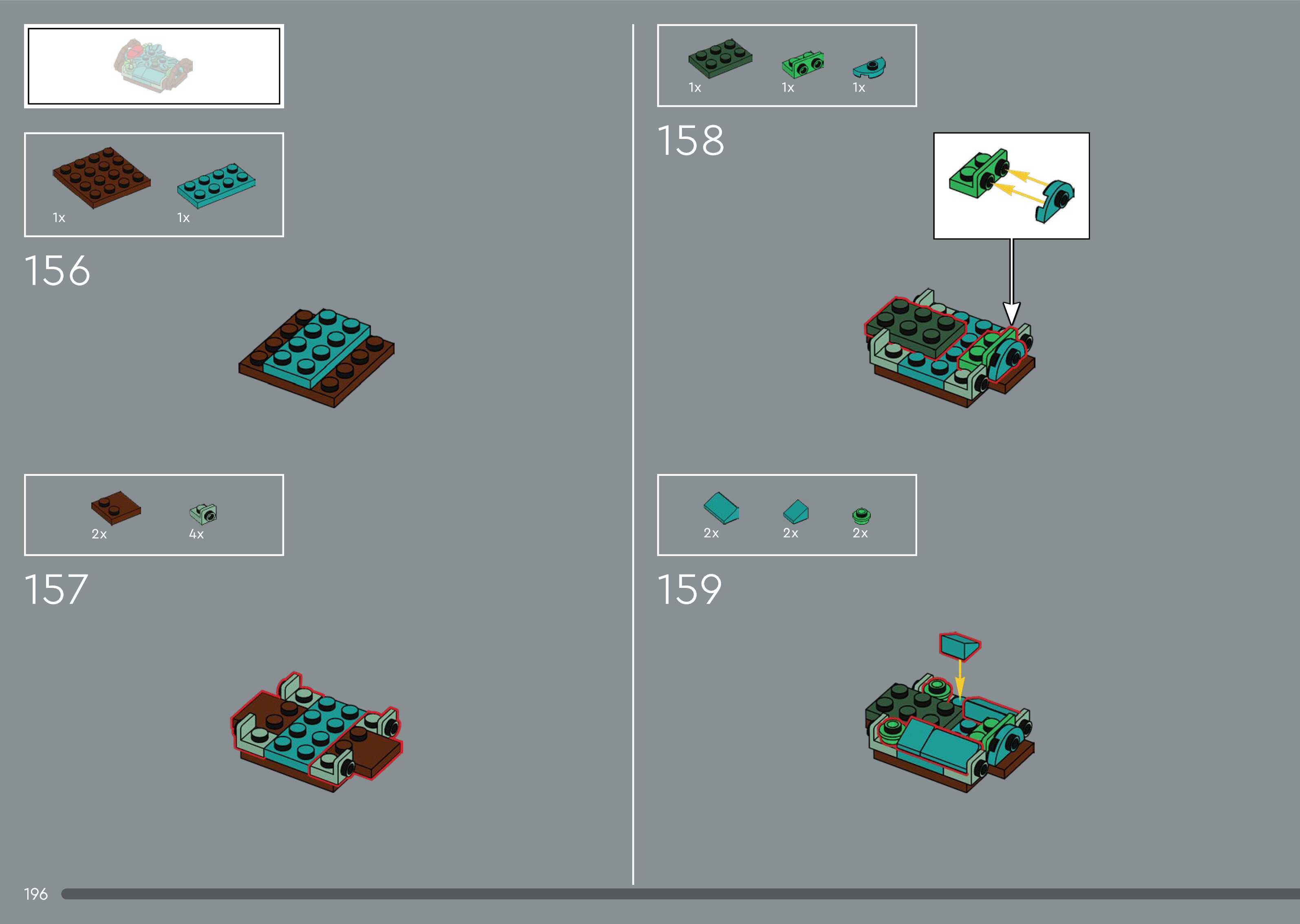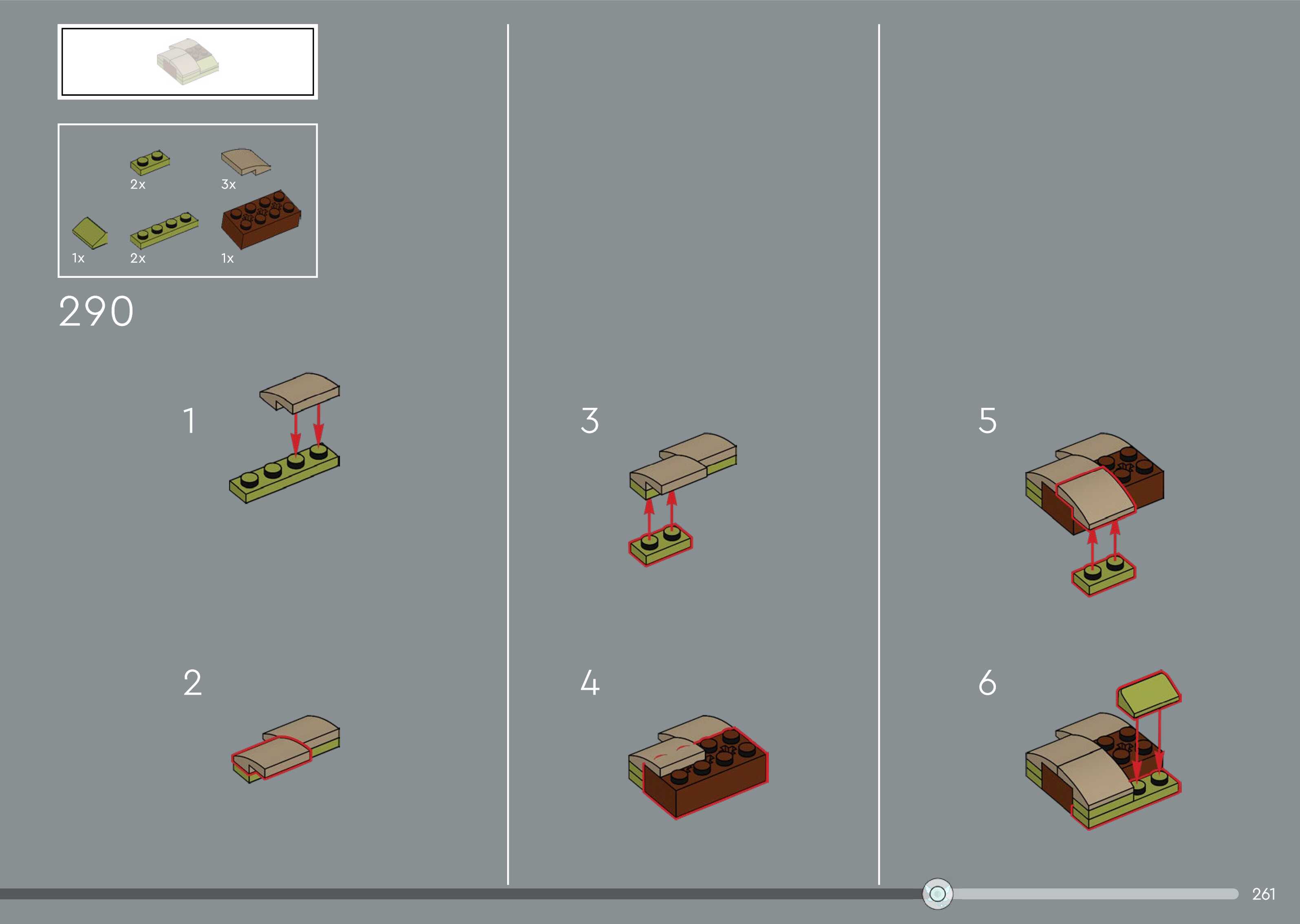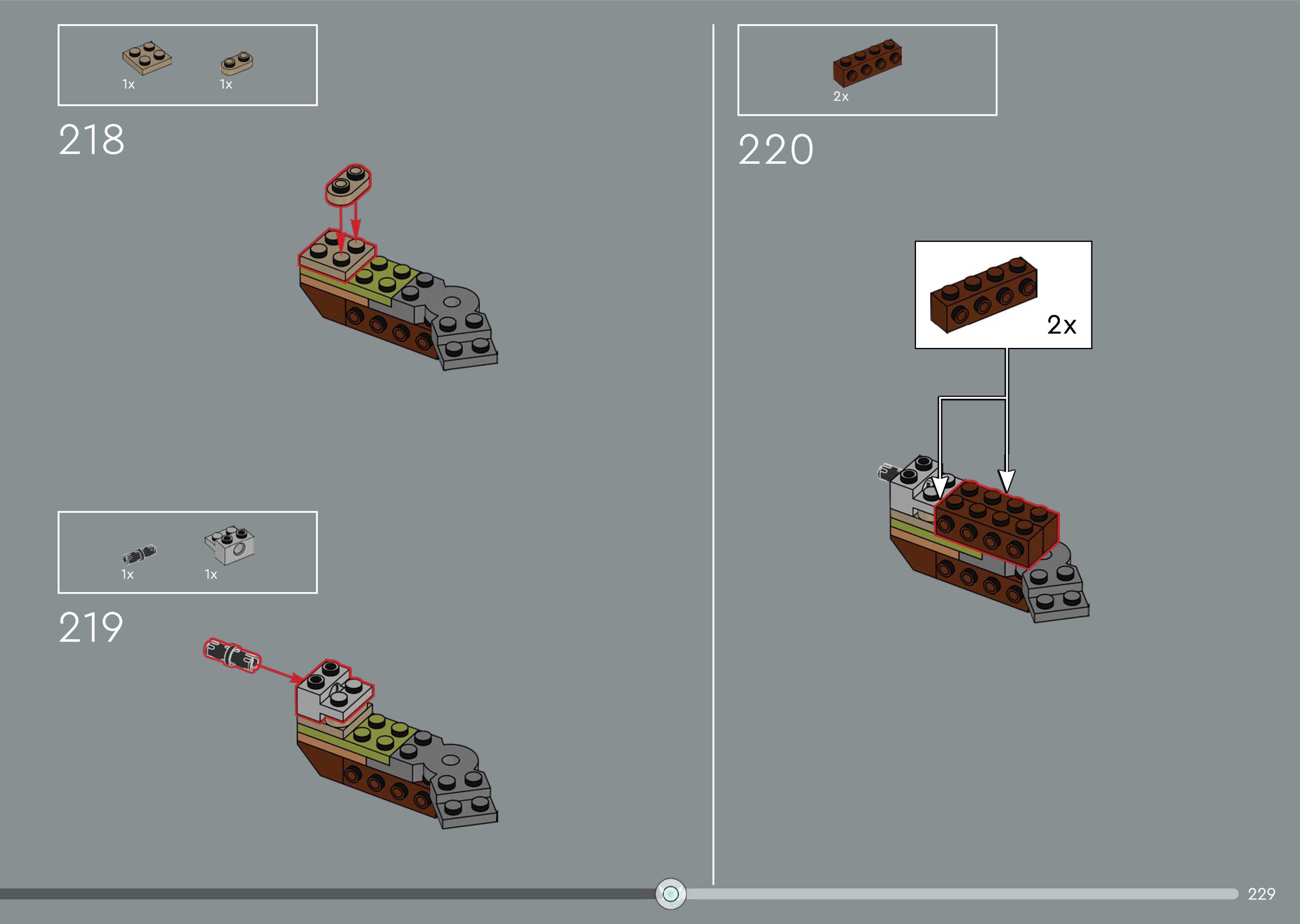 The assembly guide is prepared in a very understandable way for children and adult LEGO enthusiasts. A total of 402 picture galleries are shown, explaining the step-by-step construction stages for 1 different structures.