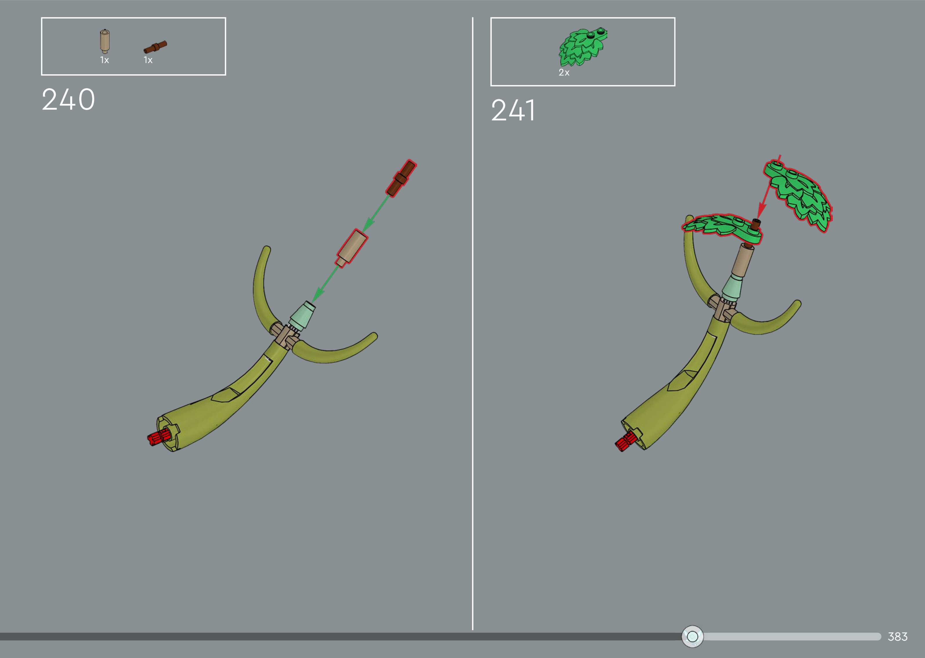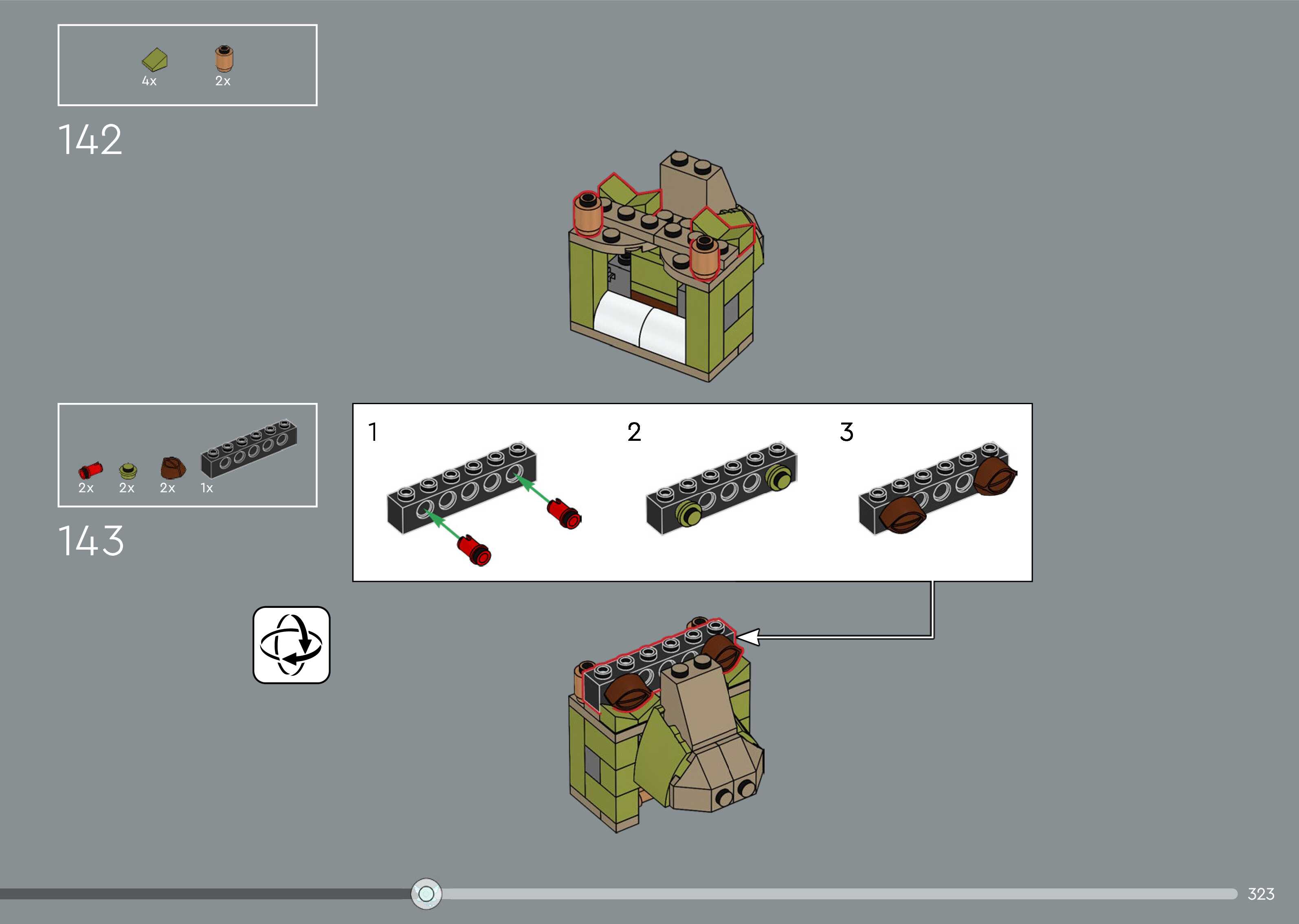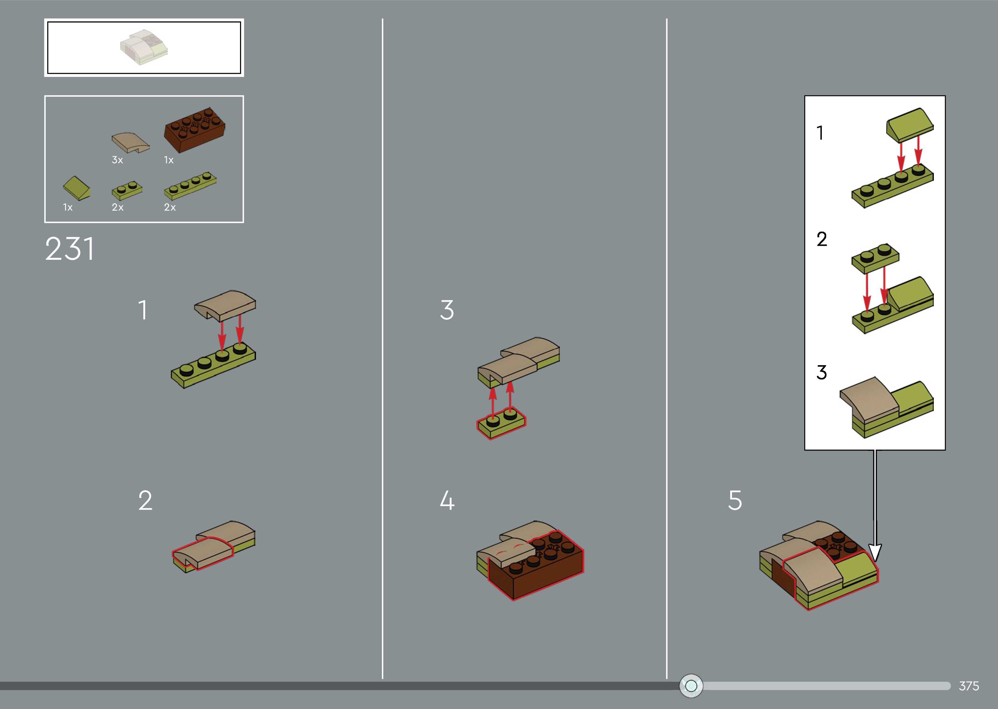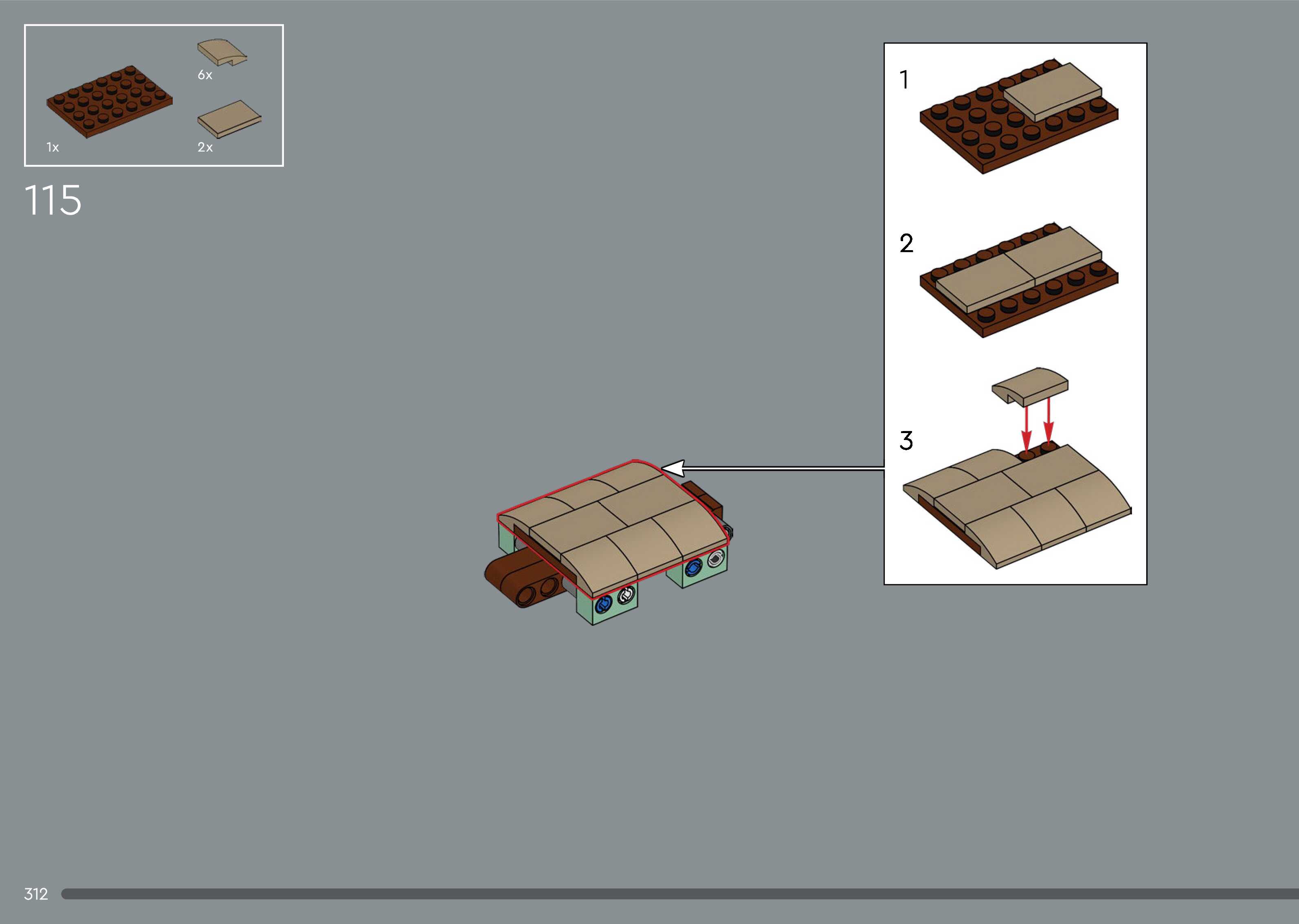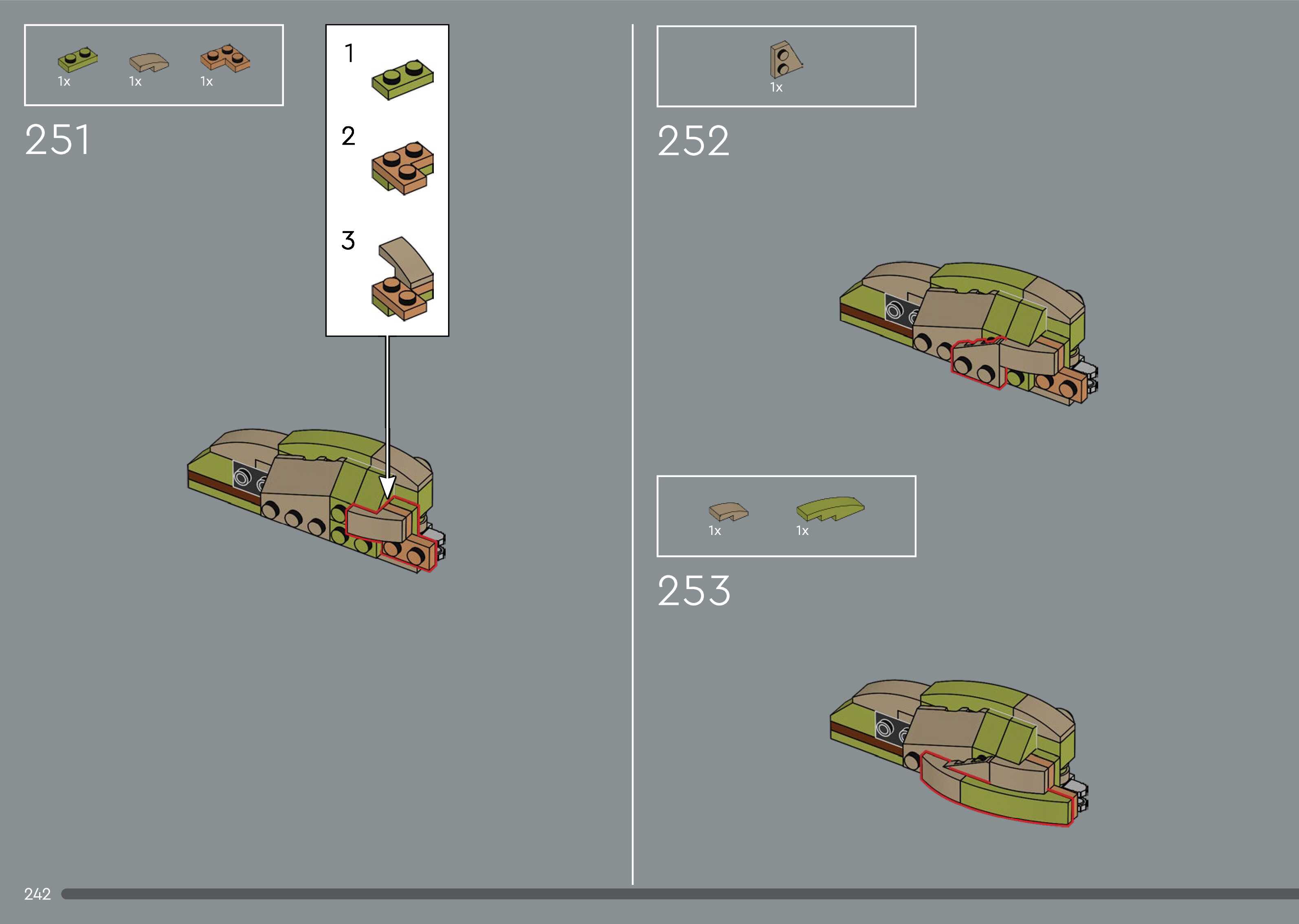The assembly guide is prepared in a very understandable way for children and adult LEGO enthusiasts. A total of 402 picture galleries are shown, explaining the step-by-step construction stages for 1 different structures.